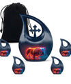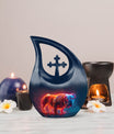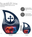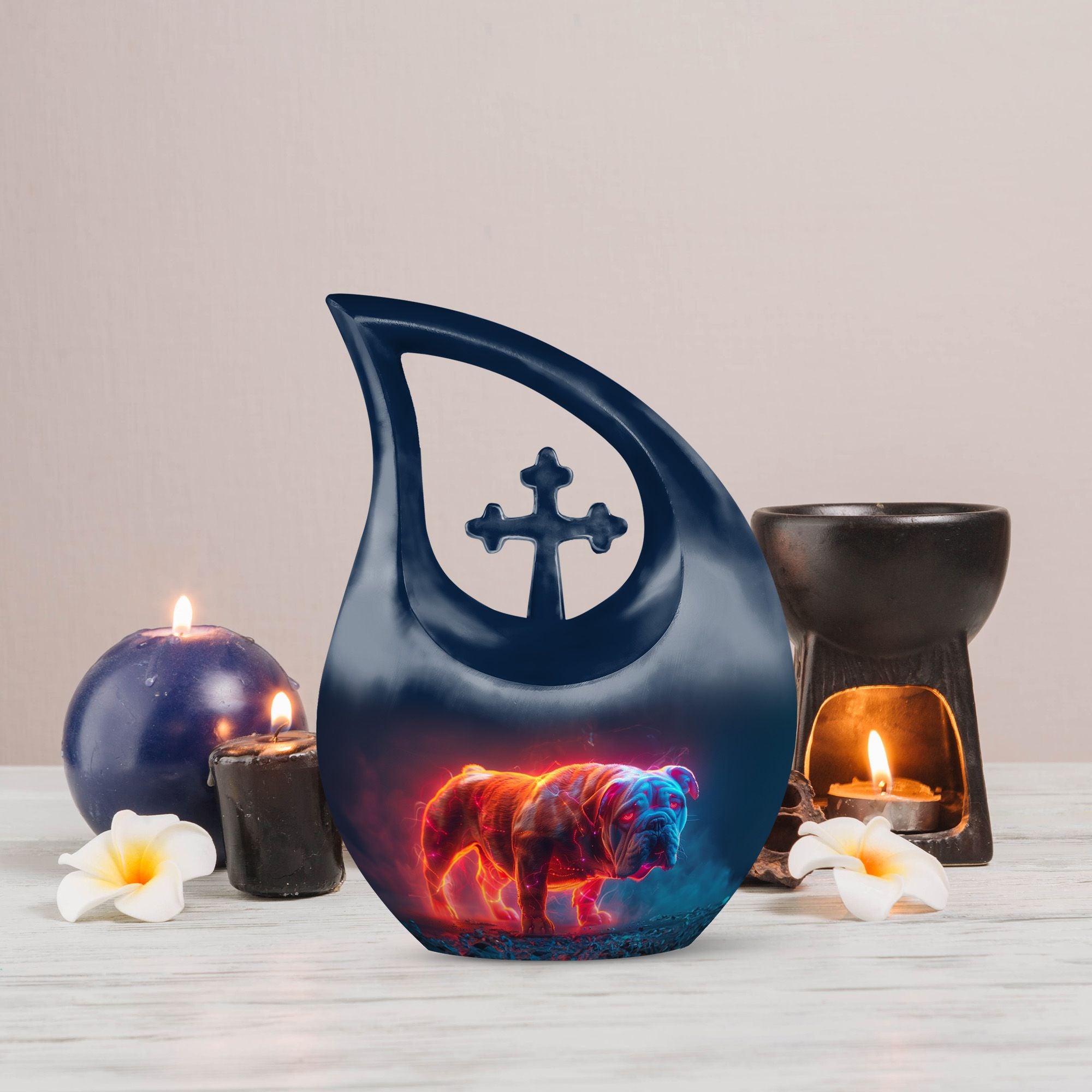 Treasure the memory of your beloved pet with our Canine Combustion Urn. It is one of our large urns, meticulously crafted using high-quality aluminium. Standing at 10 inches, with a weight of just 3.3 pounds, it elegantly displays a distinctive 'Cross Drop' motif which embraces the theme of Canine Combustion. With an impressive capacity of 200 cubic inches, it ensures sufficient space for the containment of ashes. For secure storage, the package includes a velvet pouch. Adding further essence to memorial urns, our customization service allows you to personalize your canine's final resting place by engraving their name. Refrain from settling for the ordinary, rather, select our custom-made urn, which serves as a worthy tribute to your treasured pet. Whether looking for keepsake urns or cremation boxes, our urns bridge the gap between quality craftsmanship and emotional honor.