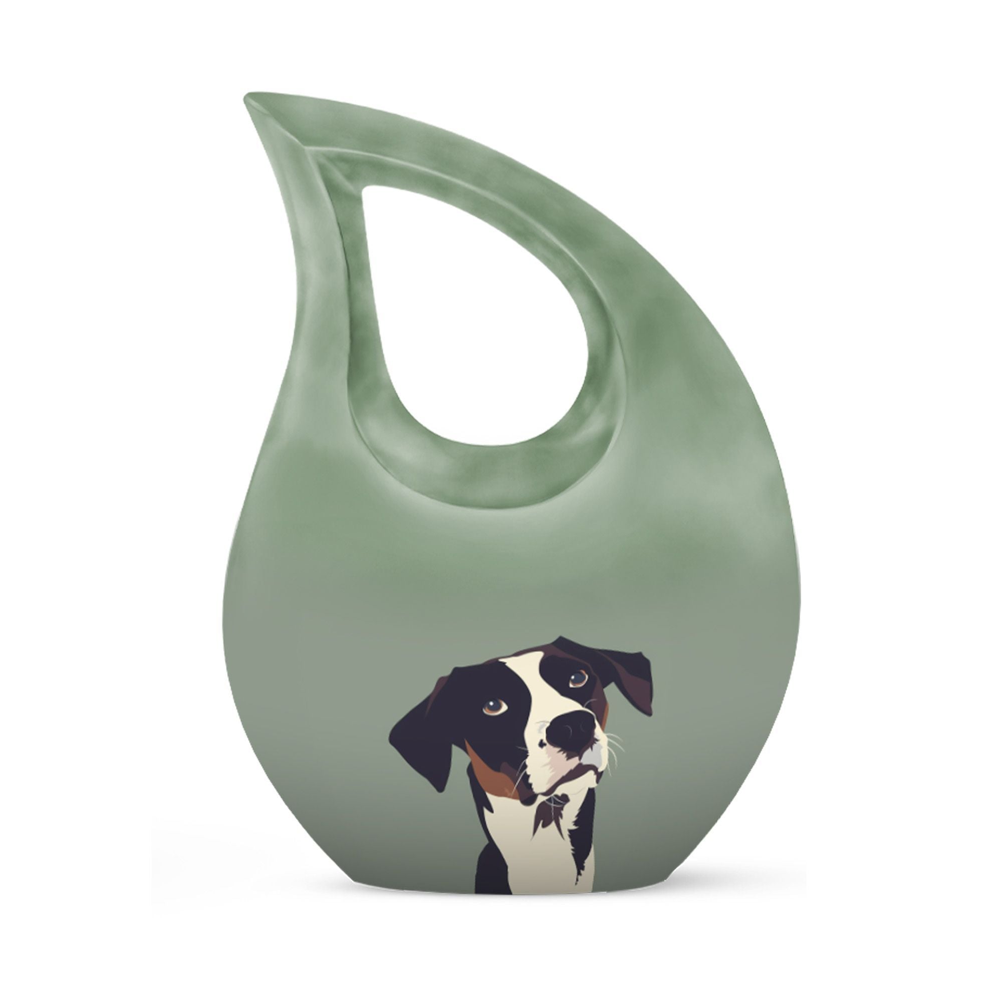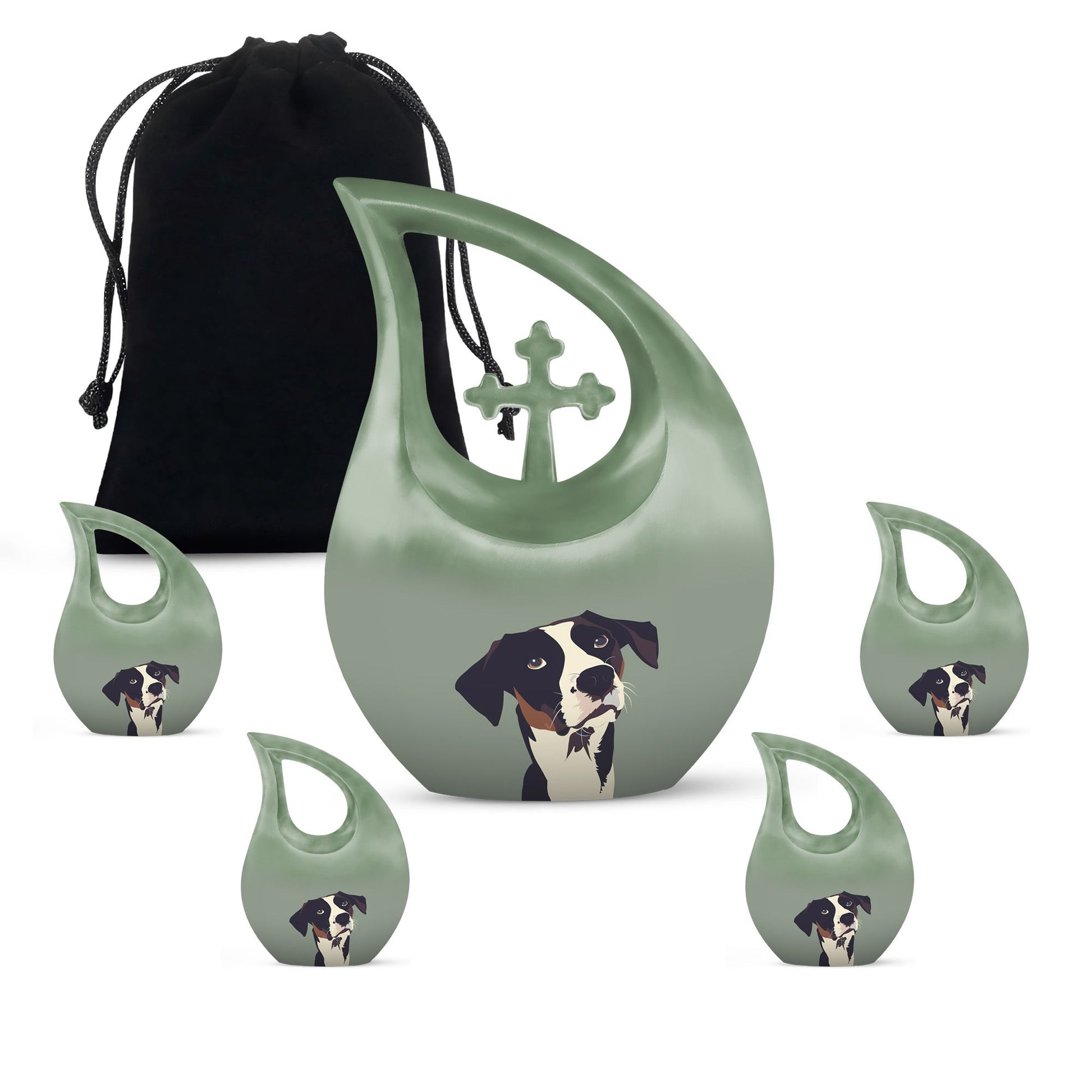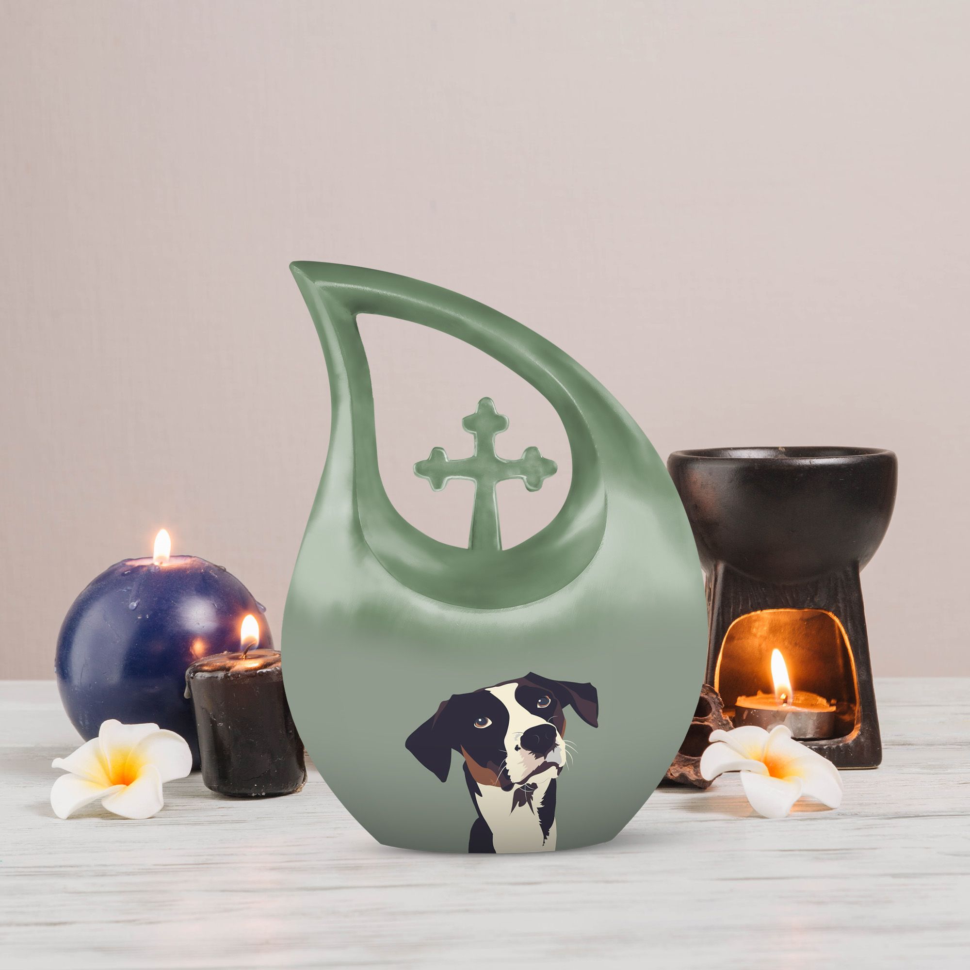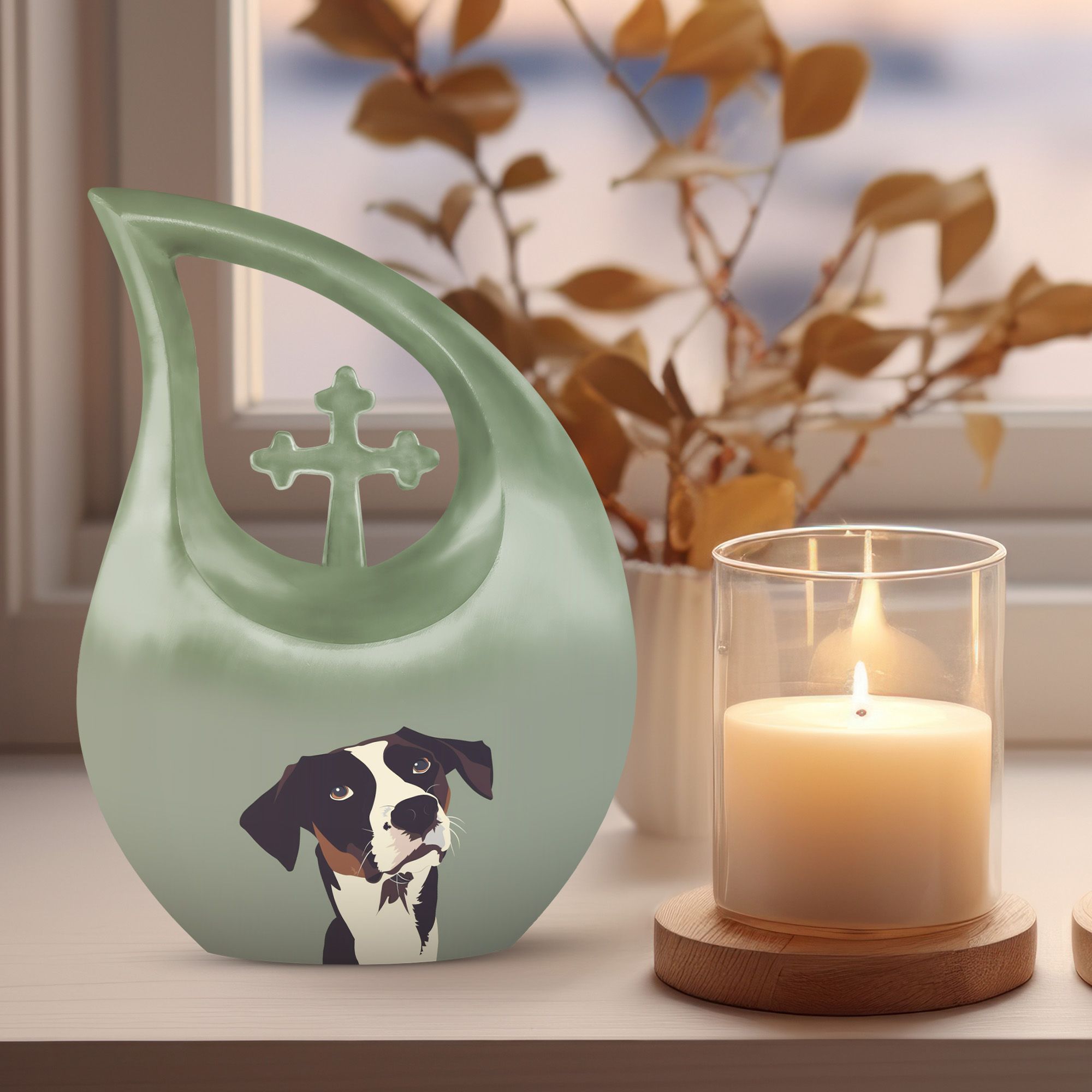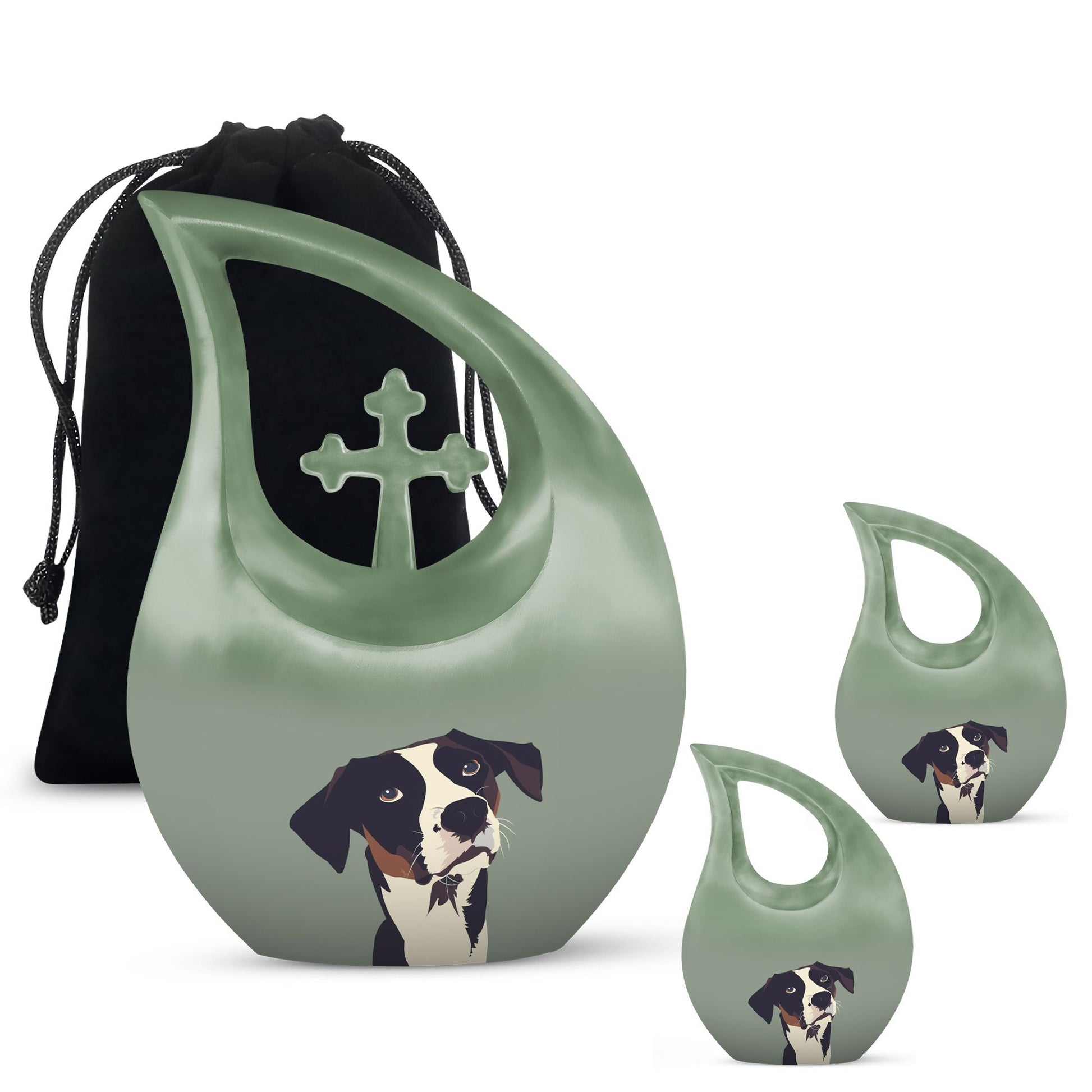Pay tribute to your beloved canine companion with our unique Canine Minimalism Urn. An Extra Large urn conveniently designed for a capacity of 200-cubic inches of ashes. It stands perfectly at 10 inches in height and weighs in at 3.3 pounds, demonstrating sturdy build quality. Made from high-grade Aluminium, it holds firm against the test of time. The fulfilment of custom desires is also acknowledged as one can easily personalize the urn with engraved names. This urn is extra-large in volume and comes with a velvet pouch for safe containment and transport of ashes. Unique keywords associated with such urns include 'Burial Urns For Sale, 'Urns For Mother's Ashes', and 'Small Urns for Dad'. Perfectly sized for use in different ceremonial usages. Note that the urn boasts a 'Cross Drop' envisage, delivering a warm ambiance to the remembrance of your loved one.