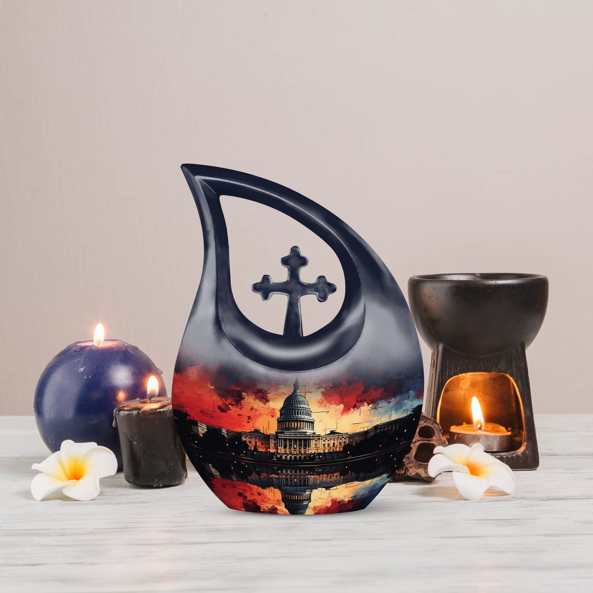 Celebrate a life well-lived with the Capitol Sunset Cremation Urn for Human Ashes, a stunning tribute that captures the warmth and serenity of a setting sun. Perfect as a cremation urn mom or for any loved one, this elegant urn symbolizes peace, light, and the beauty of everlasting memory. Designed as one of the most refined cremation urns adult options, it brings comfort and dignity to your memorial setting.