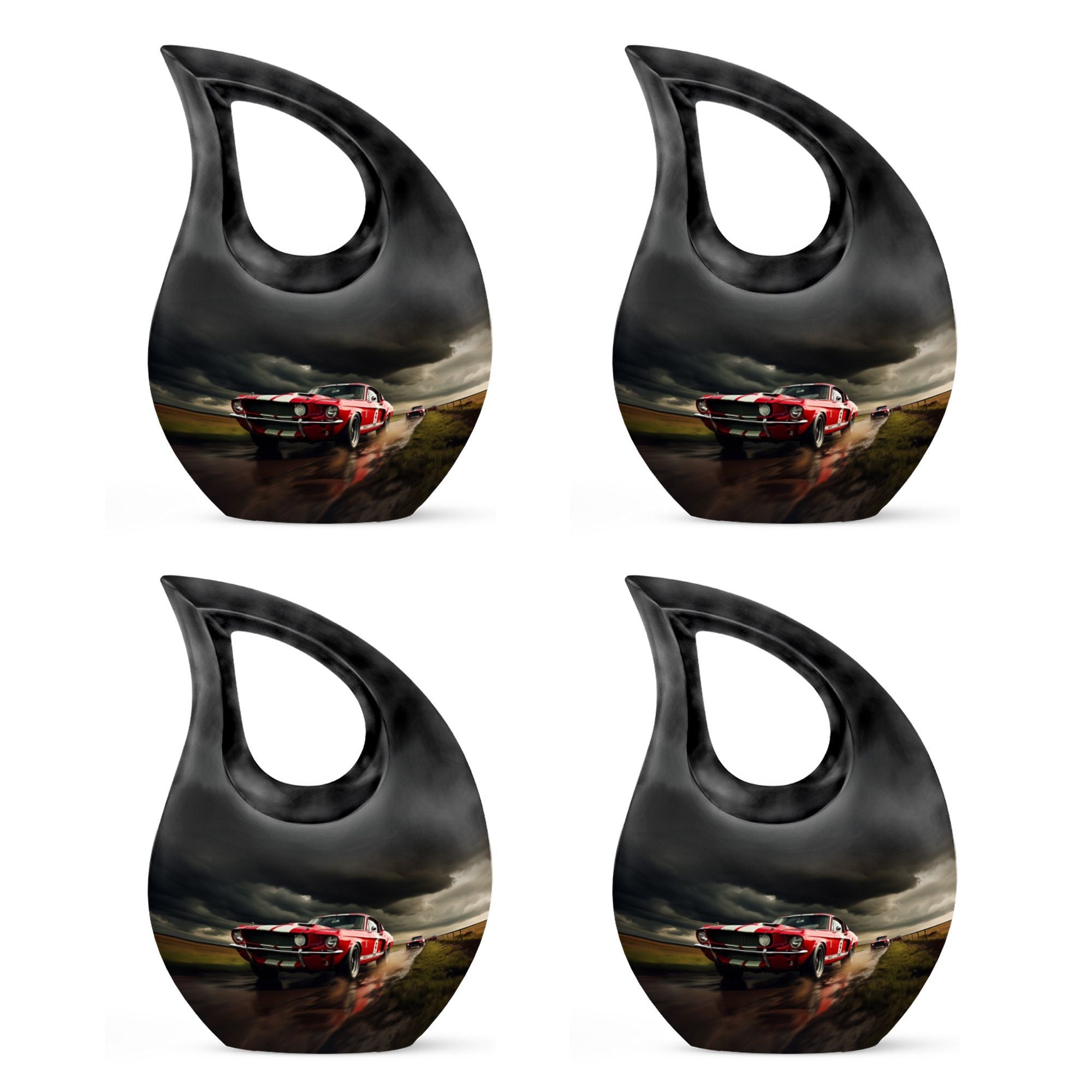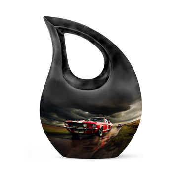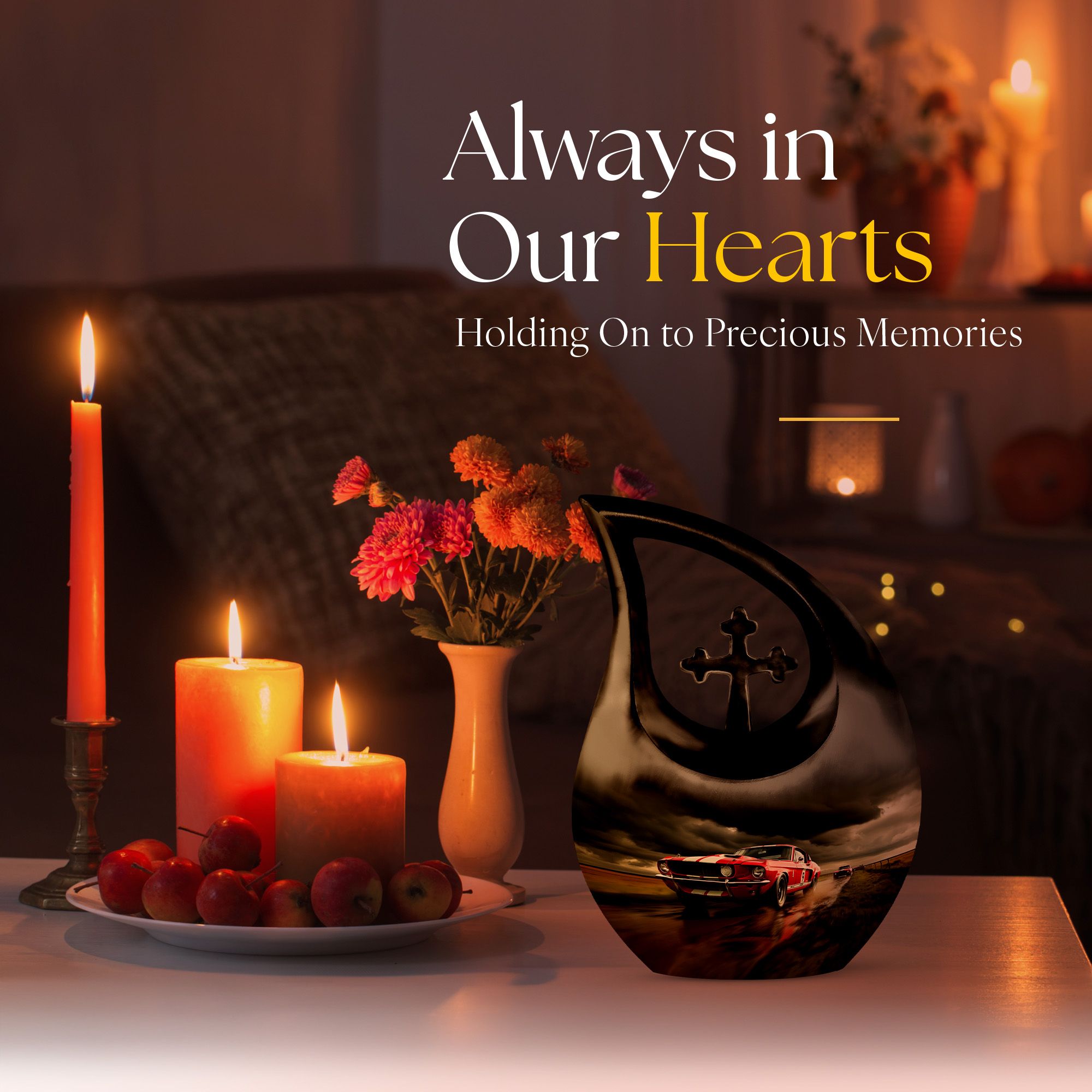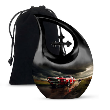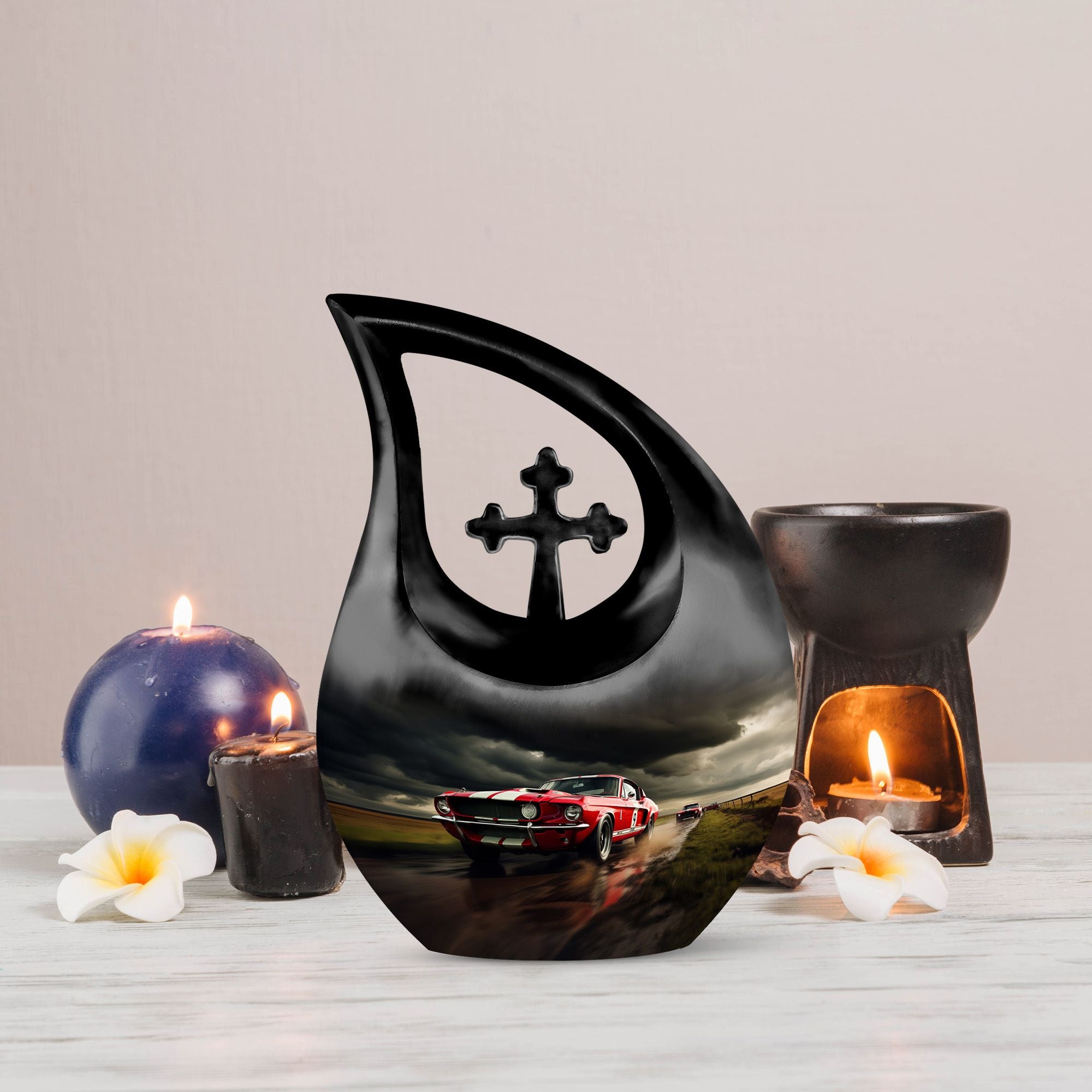 Crafted from durable aluminum, this 10-inch, full-capacity urn features striking red sports car artwork that symbolizes freedom, adventure, and treasured memories on the open road. With its 200-cubic-inch capacity, it is ideal for families looking for cremation urn for adults, adult size cremation urns, or supportive options like cremation urn mom. For those sharing ashes, this urn coordinates beautifully with small urns for cremation ashes, mini cremation urns, and cremation keepsake urns for human ashes adult. A secure screw-top lid ensures ashes remain protected for home display, memorial ceremonies, or future keepsake use.