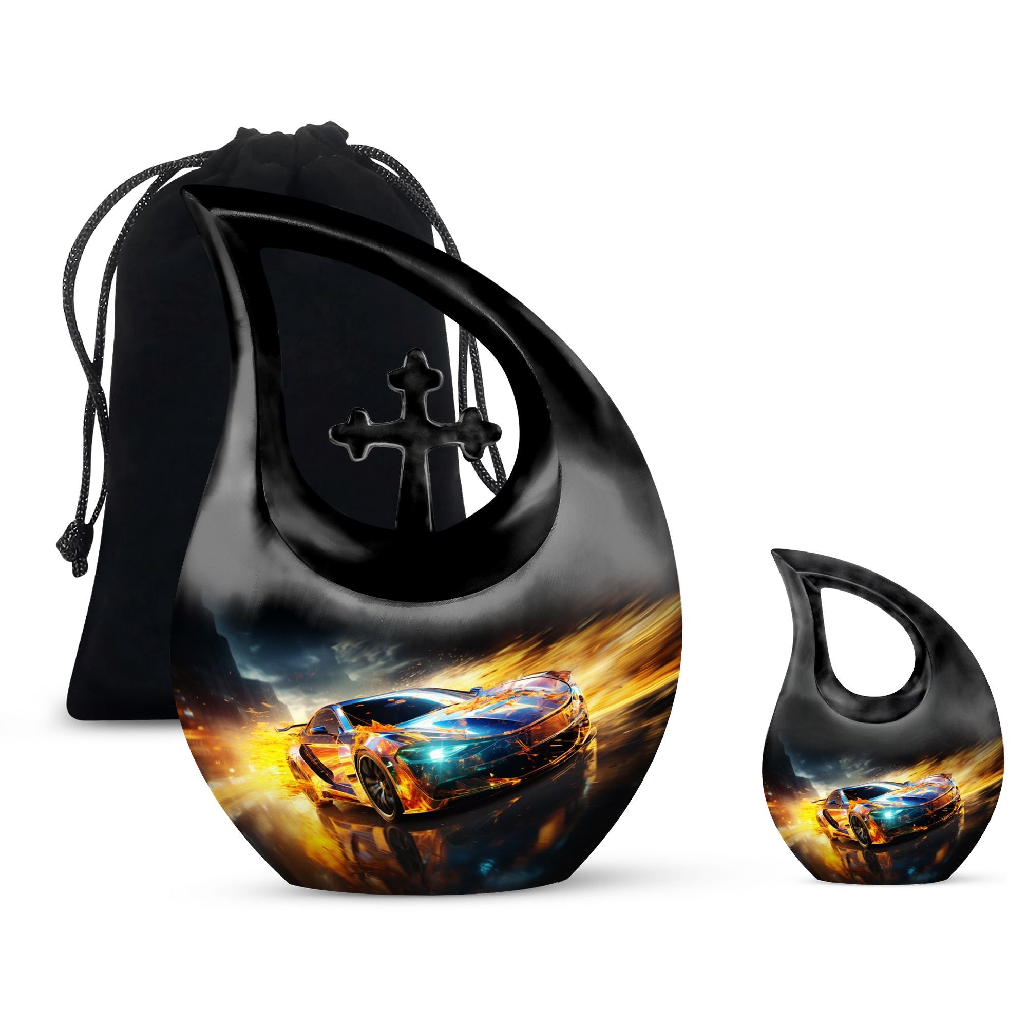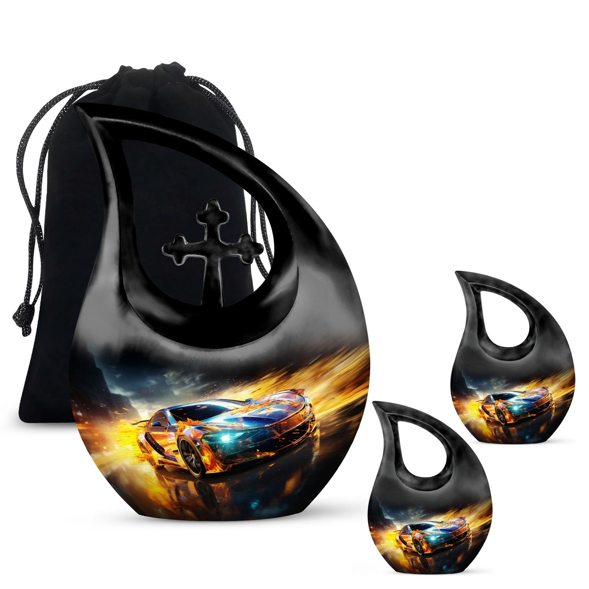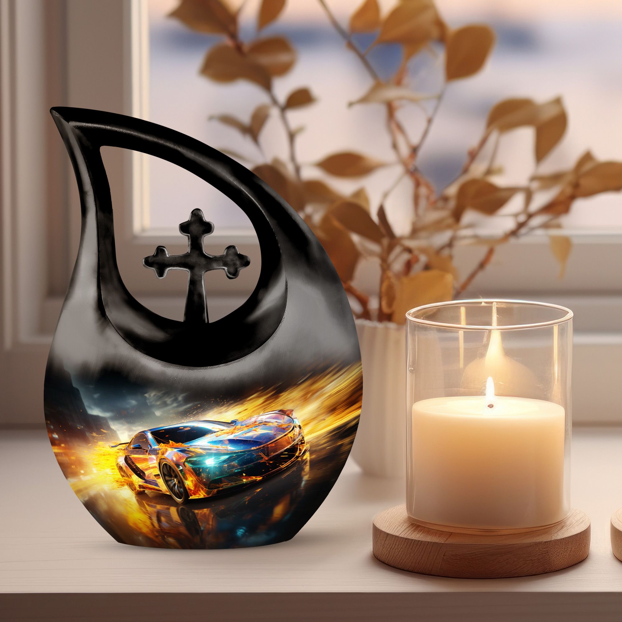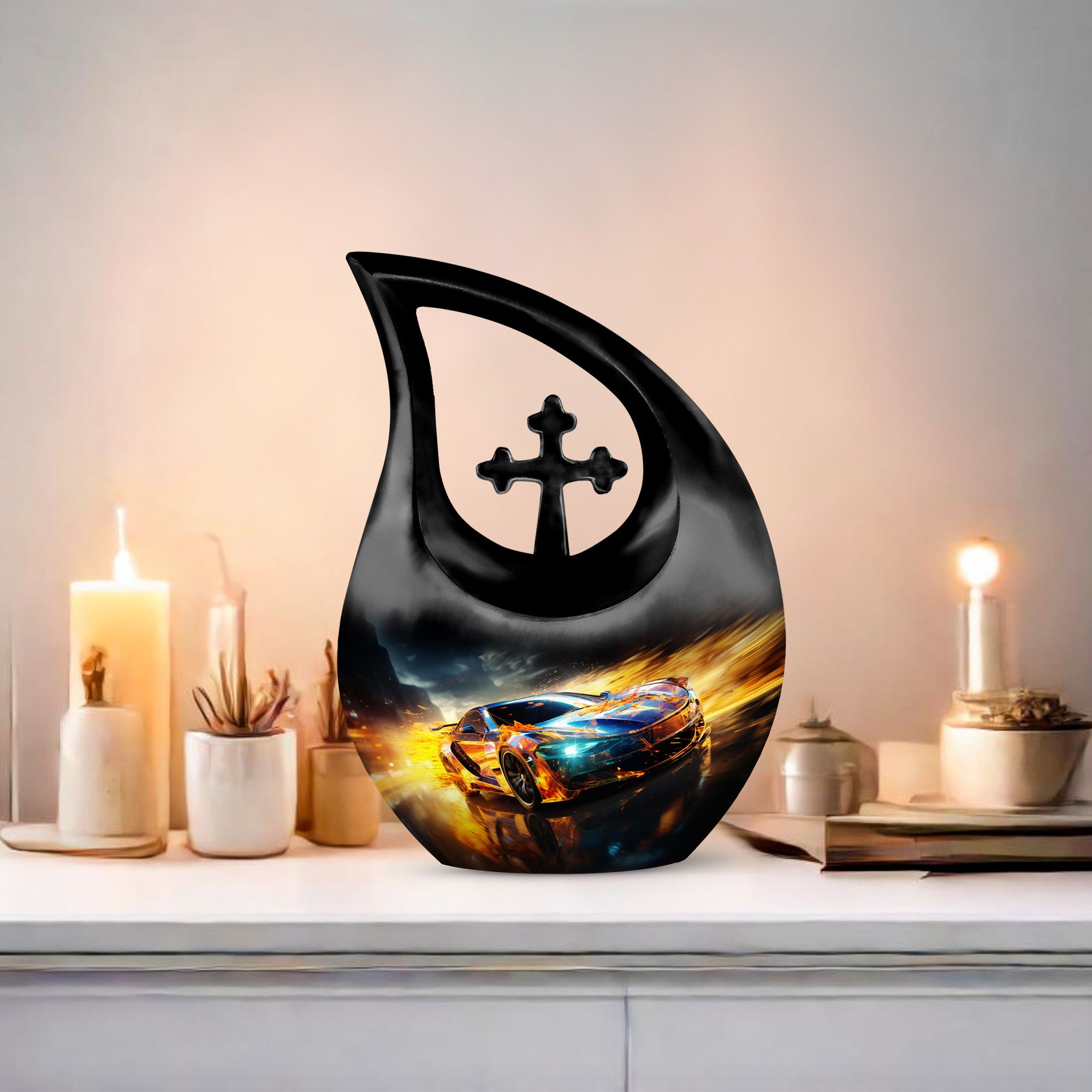 Crafted from durable aluminum, this full-size urn features a vivid sports car design that symbolizes drive, freedom, and motion. Its secure screw-top lid ensures long-term protection, making it suitable for home display, ceremonies, or private remembrance. This urn pairs beautifully with coordinating mini keepsake urns, mini urns for human ashes keepsake, or miniature urns for ashes, allowing families to share cherished memories among loved ones. It also works perfectly with keepsake mini urns, mini urn set for ashes, and decorative small pieces for display or personal comfort.
