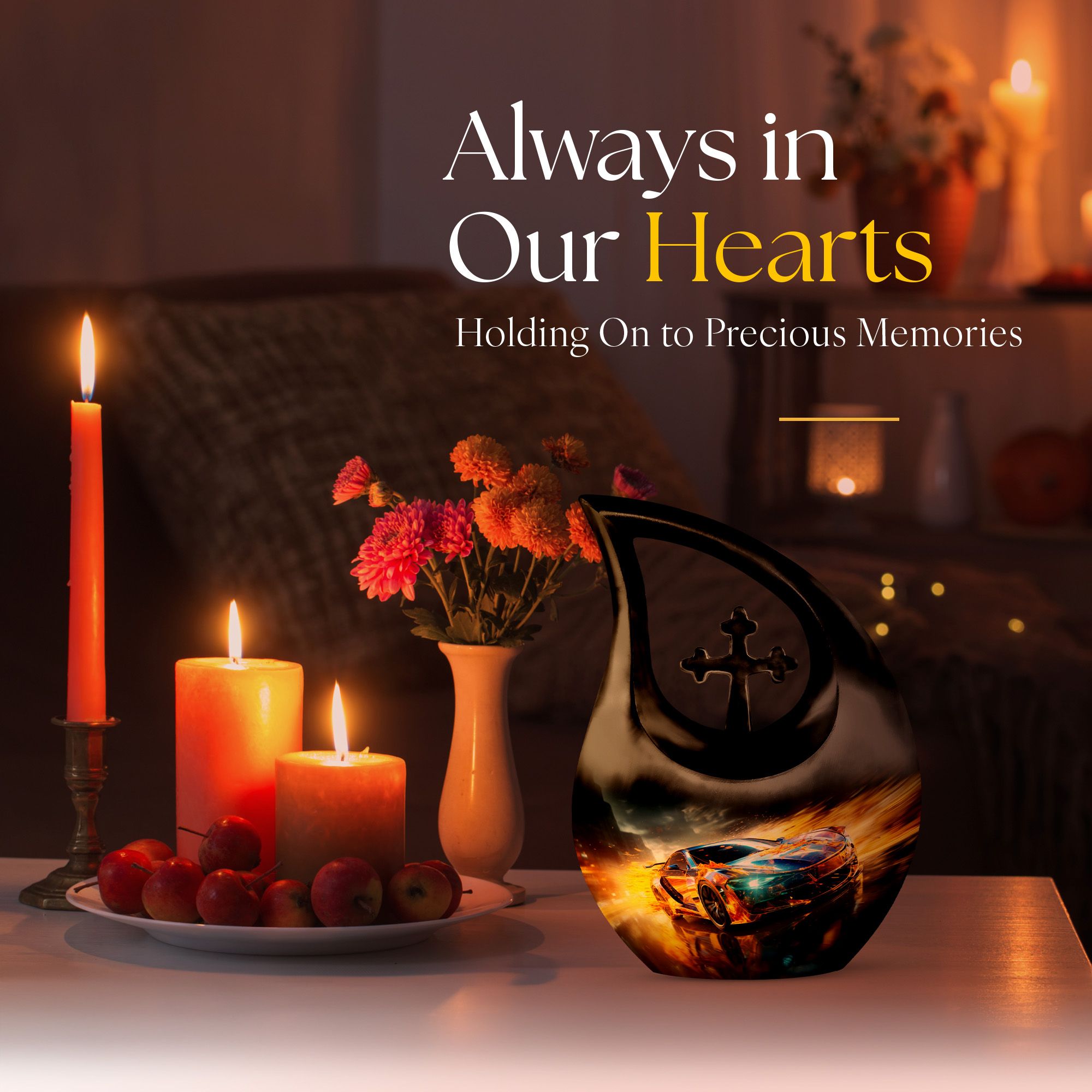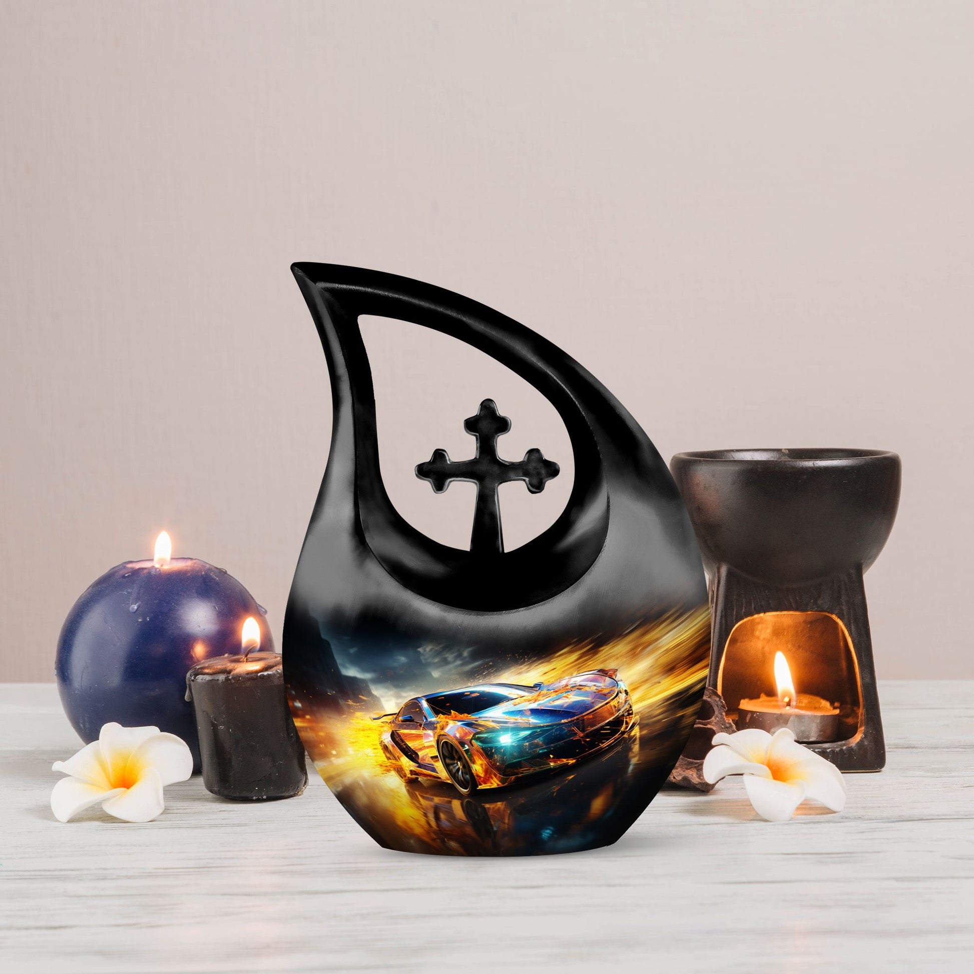 A tribute full of passion, energy, and unforgettable memories, this Sports Car Memorial Urn for Funeral celebrates the spirit of someone who lived life in the fast lane. Designed with striking detail, it offers a meaningful resting place for families seeking a unique car cremation urn for men that reflects personality, adventure, and legacy.