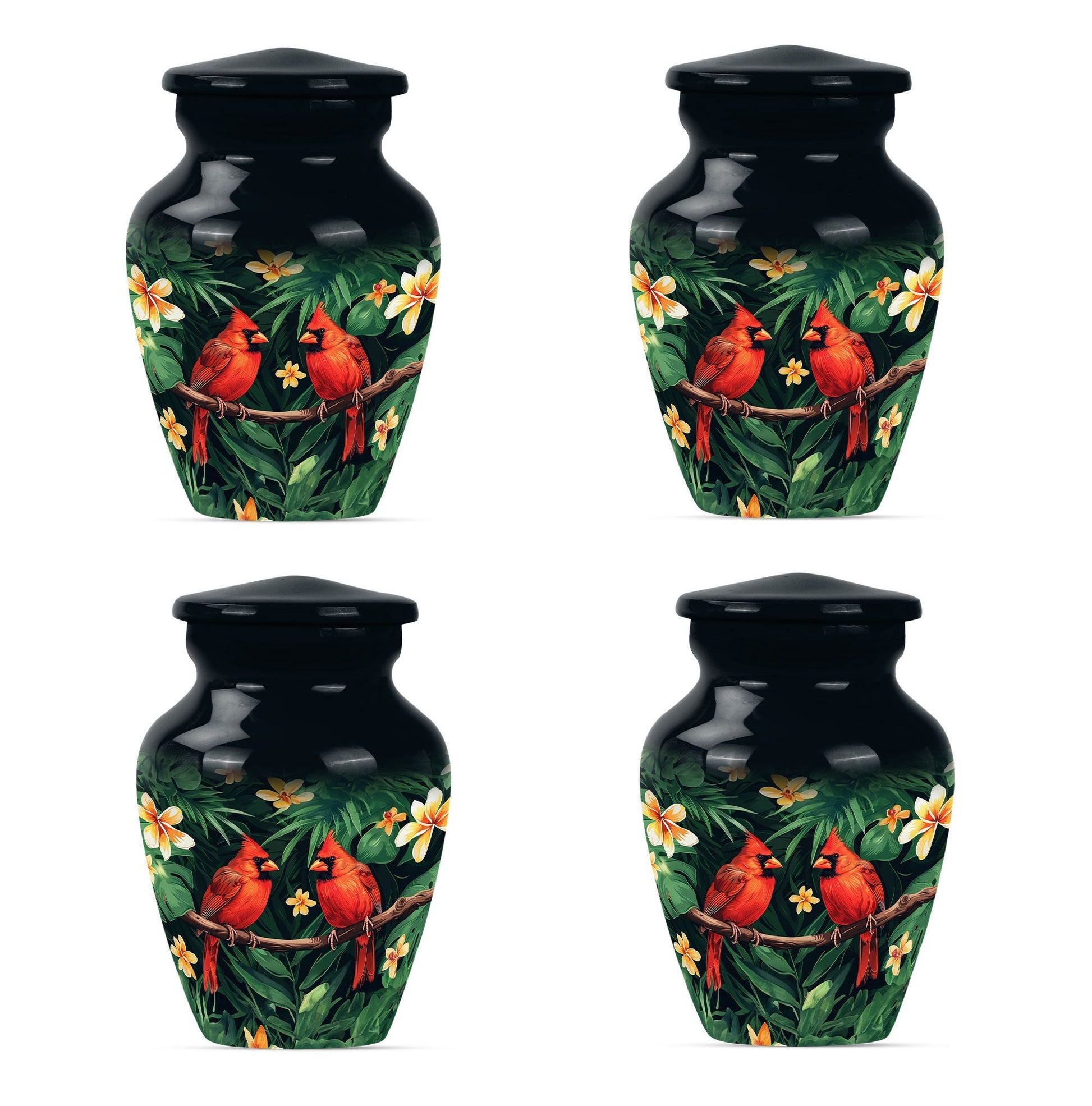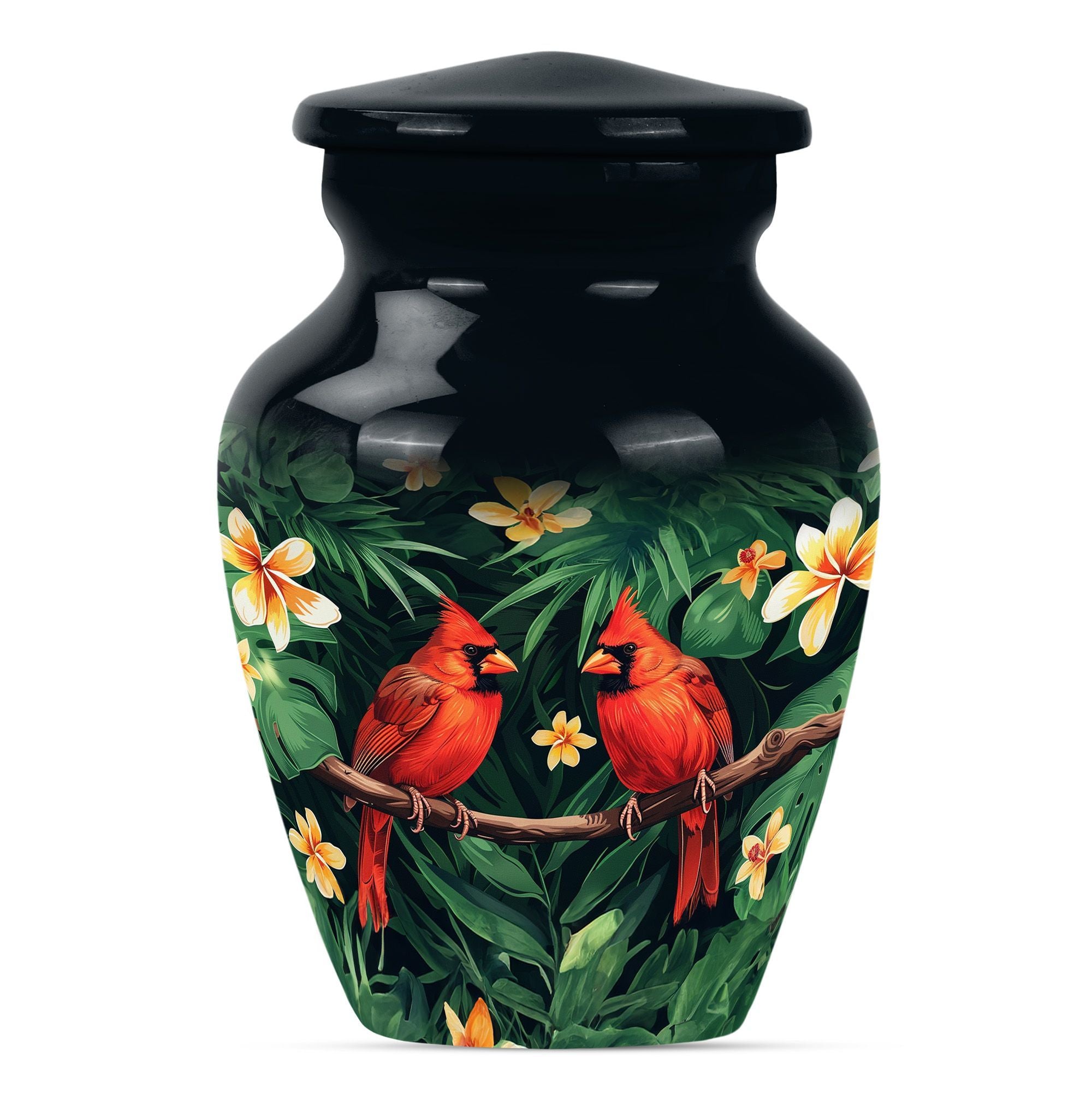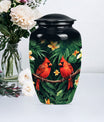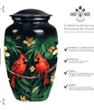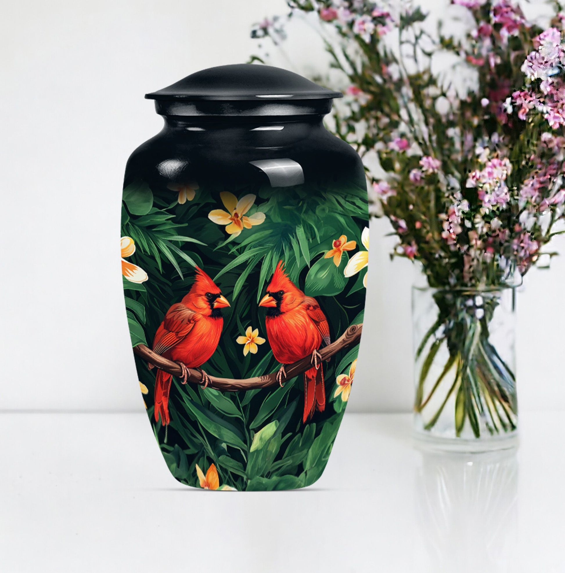 Honor the memory of your loved ones with the 10-inch 'Cardinal bird Urn.' Tailored from superior quality Aluminium, the urn embodies the narrative of life and death in its 'Wolf Howling' theme. With its classic style, this urn holds a significant amount of ashes up to 200 cubic inches. Measuring 10 inches in height and weighing 3.3 pounds, its substantial size accommodates a respectable place in your heart and home. The 'burial ash urns for humans' serves as a shrine for the departed soul, honoring them equally like the 'cremation urn for adult female ashes' or the 'urn human ash adult male.' We provide a velvet pouch, ensuring secure containment of the treasured ashes. With our personalization option, engrave the names to etch the memory forever. A symbol of appreciation for the life lived, the 'cremation urn', is a heartfelt tribute to your dear one's journey. Meet the perfect choice with our 'Large Urns,' designed to express love, respect and cherish the beloved departed soul.
