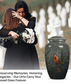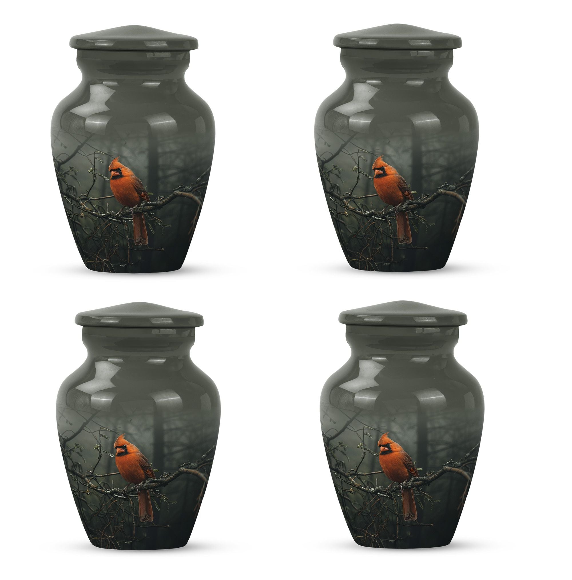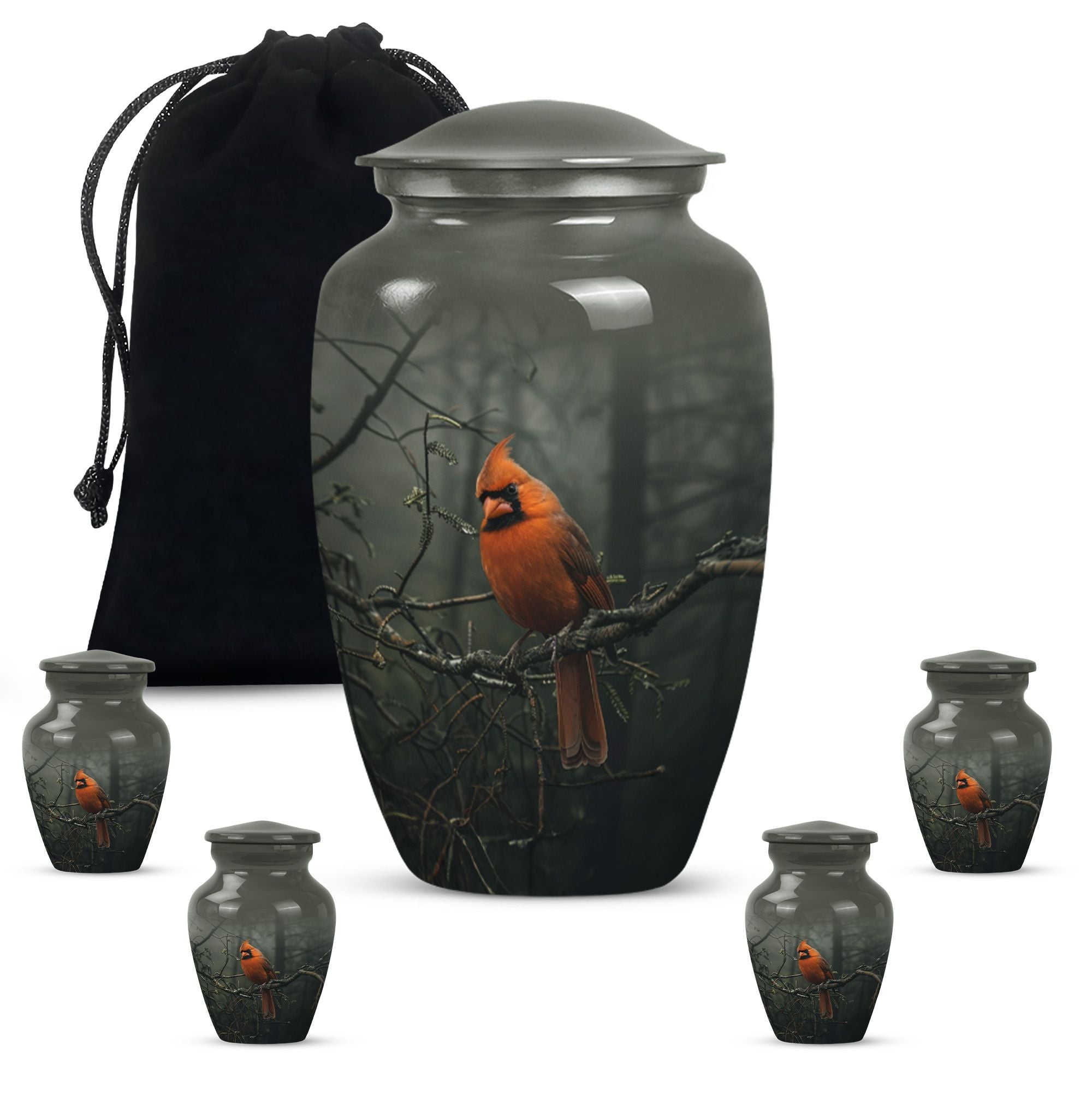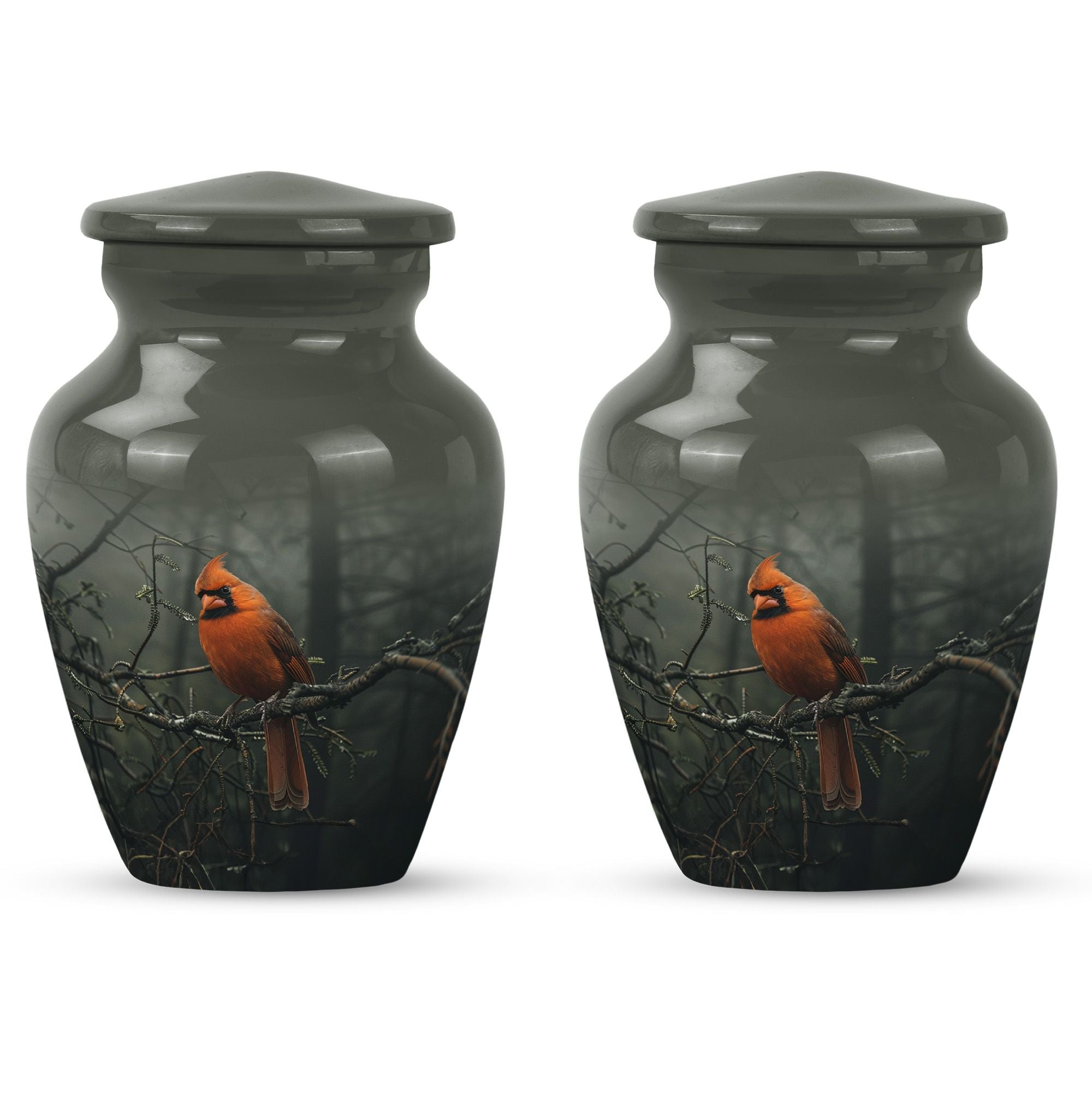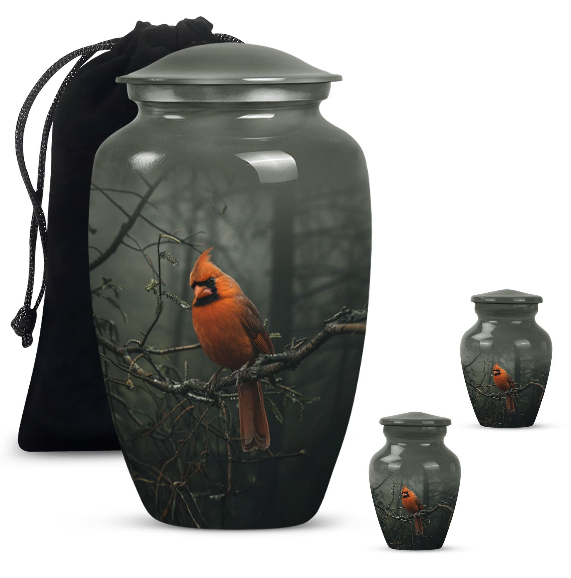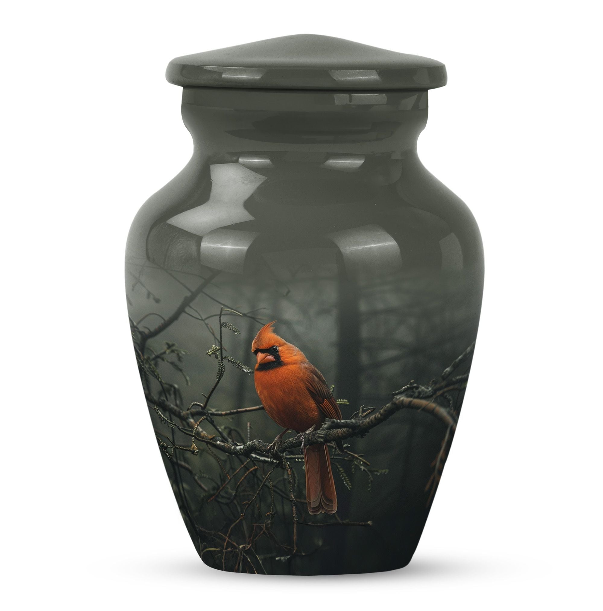 Cherish the memories of your loved ones with our Cardinal Bird Urn, a heartfelt piece in the assortment of memorial urns. Crafted carefully from sturdy Aluminum, this urn sets a tranquil town with its abstract theme. It spans an adequate 10 inches in height, offering an ample capacity of 200 cubic inches to carefully hold the ashes. This Large Urn is cloaked in a classic disposition, an affirmation of its purpose - a respectful and dedicated ceremony. The package includes a soft velvet pouch, providing containment and protection for the ashes. Furthermore, you get the scope of personalizing this urn with an engraved name, offering a unique touch to your tribute. As a cremation adult urn for human ashes, it's ideal, seemingly embracing its weight of 3.3 pounds, as if acknowledging the weight of your memories and emotions. Whether you're looking for burial urns for cremation ashes or just a deliberate ash urn, this product adapts to your intent, extending its use to both men and women.