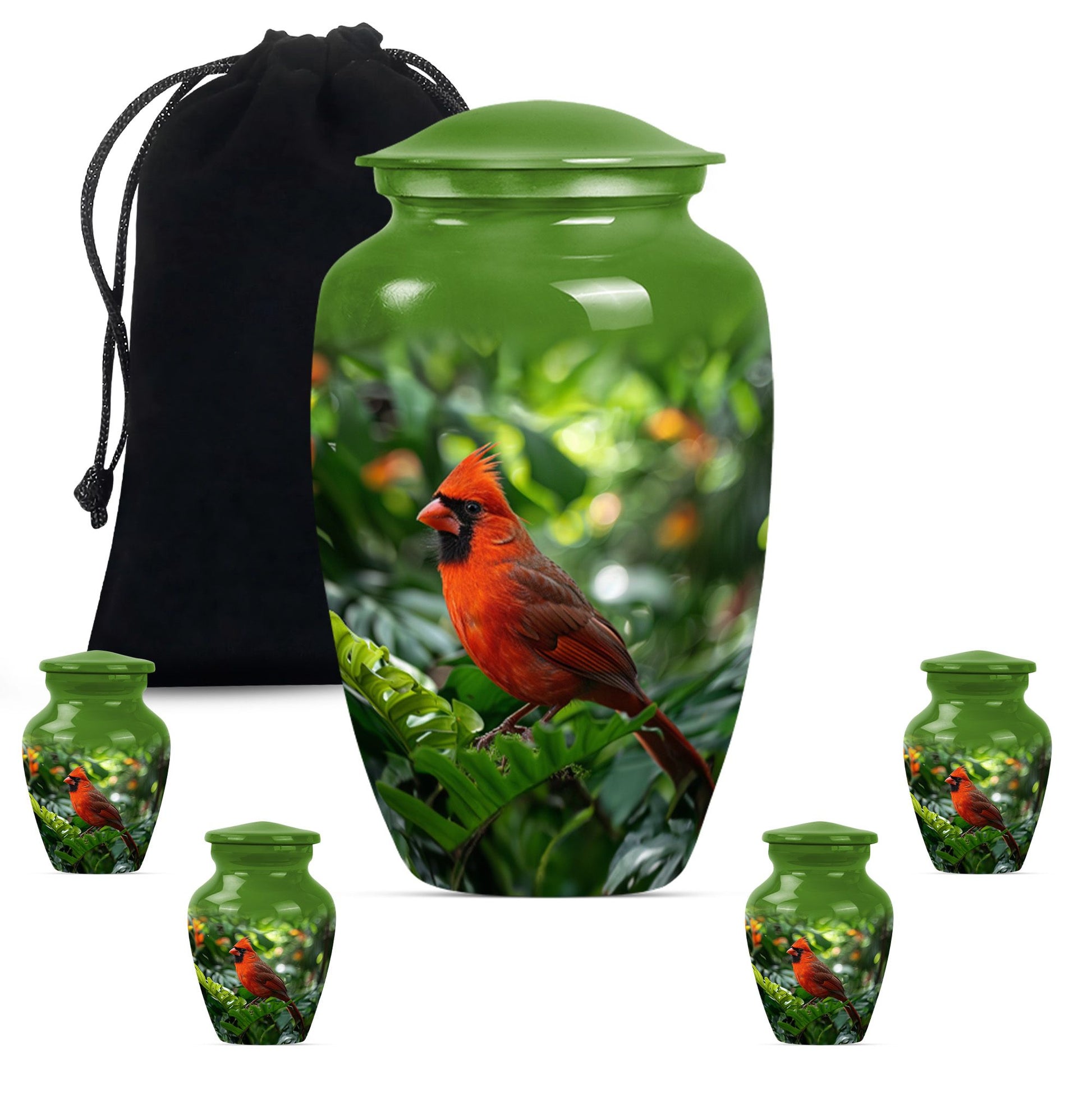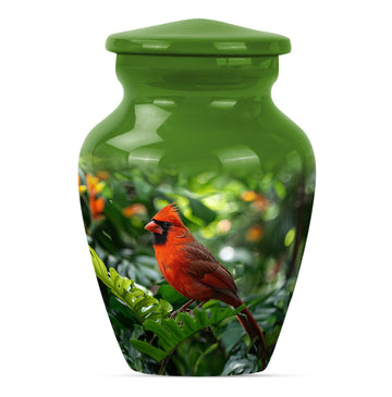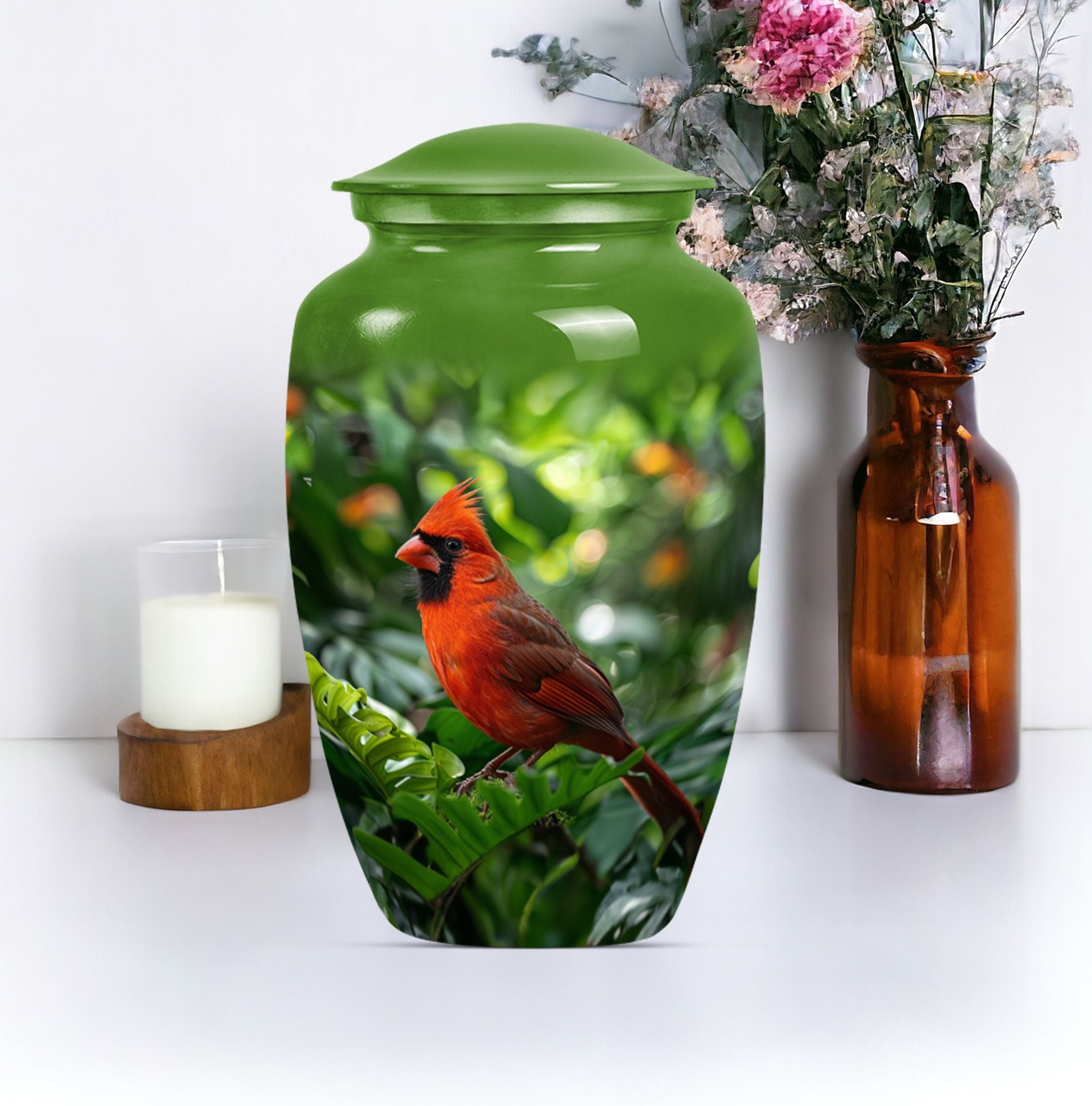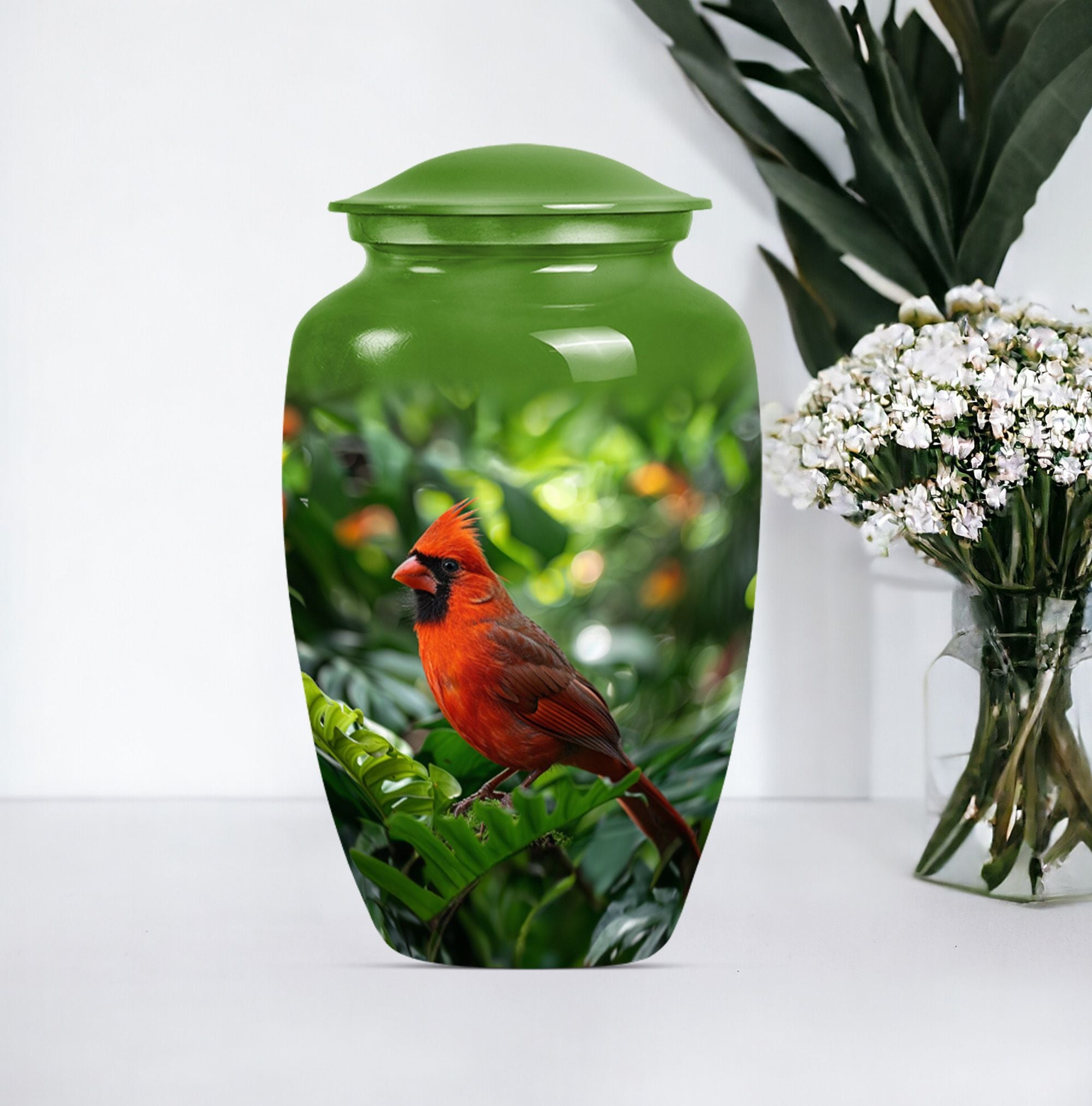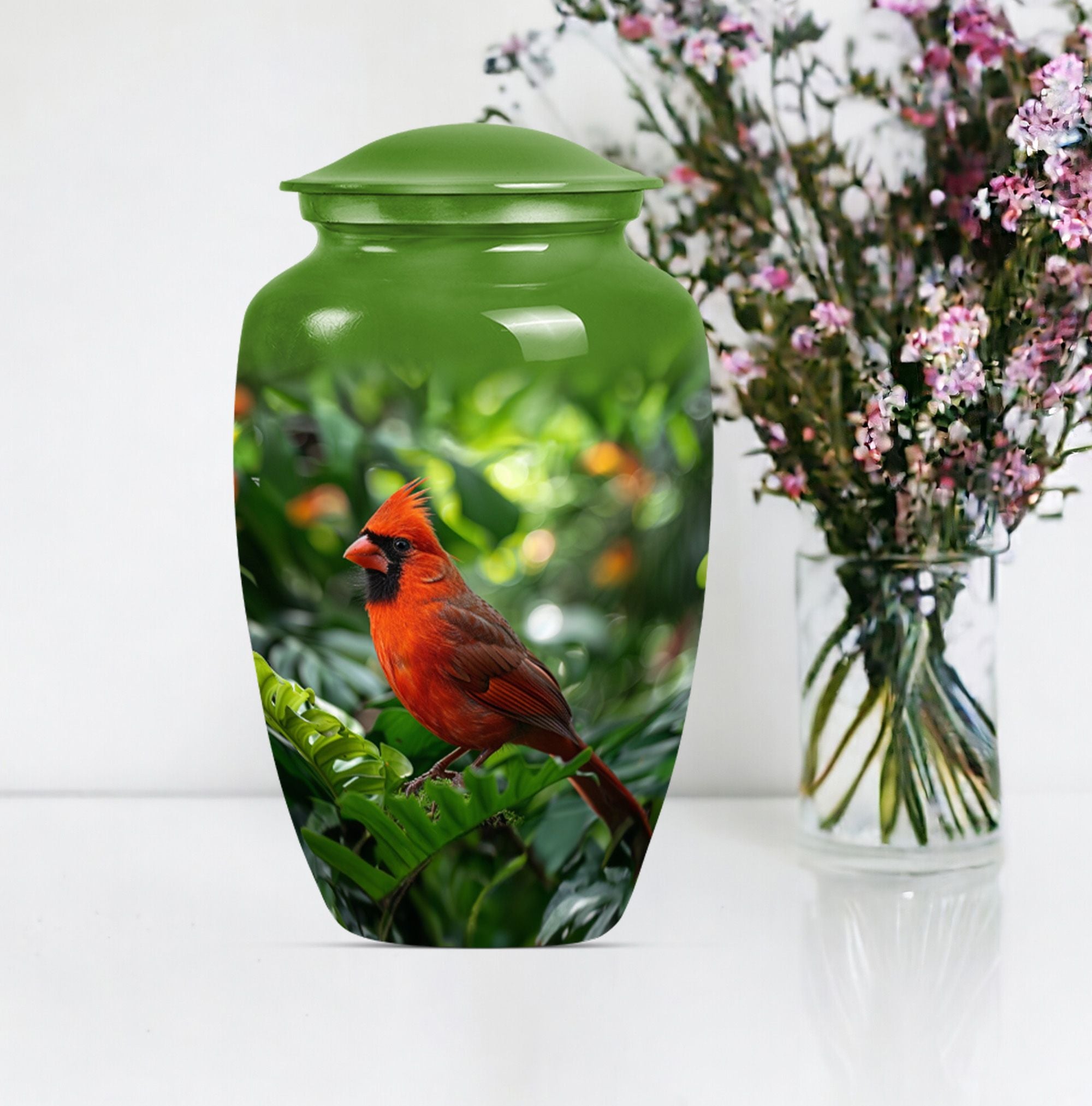 Honor your beloved's journey to eternity with our striking Cardinal bird urn, the perfect selection in our category of Memorial Ceremony Supplies designed for adults and seniors. This burial urn for human ashes is a beautiful tribute to your loved one's life. Crafted from high-quality aluminium, the Cardinal bird urn showcases a magnificent 'Wolf Howling' Theme that transcends time. Measuring 10 inches in height and weighing around 3.3 pounds, the urn offers a substantial capacity of 200 cubic inches, designed to respectfully hold your loved ones' remains. You can further personalize this urn with engraved names, adding a special touch to this resting place. The urn is also accompanied by a sumptuous velvet pouch for containment of ashes, ensuring dignity and respect. Ideal for memorial urns' searchers, its heart-warming presence connects visually to sentiments of remembrance, peace, and forever love. Its 'Classic Urn' style fuses tradition with timeless magnificence, making it a thoughtful and lasting homage.