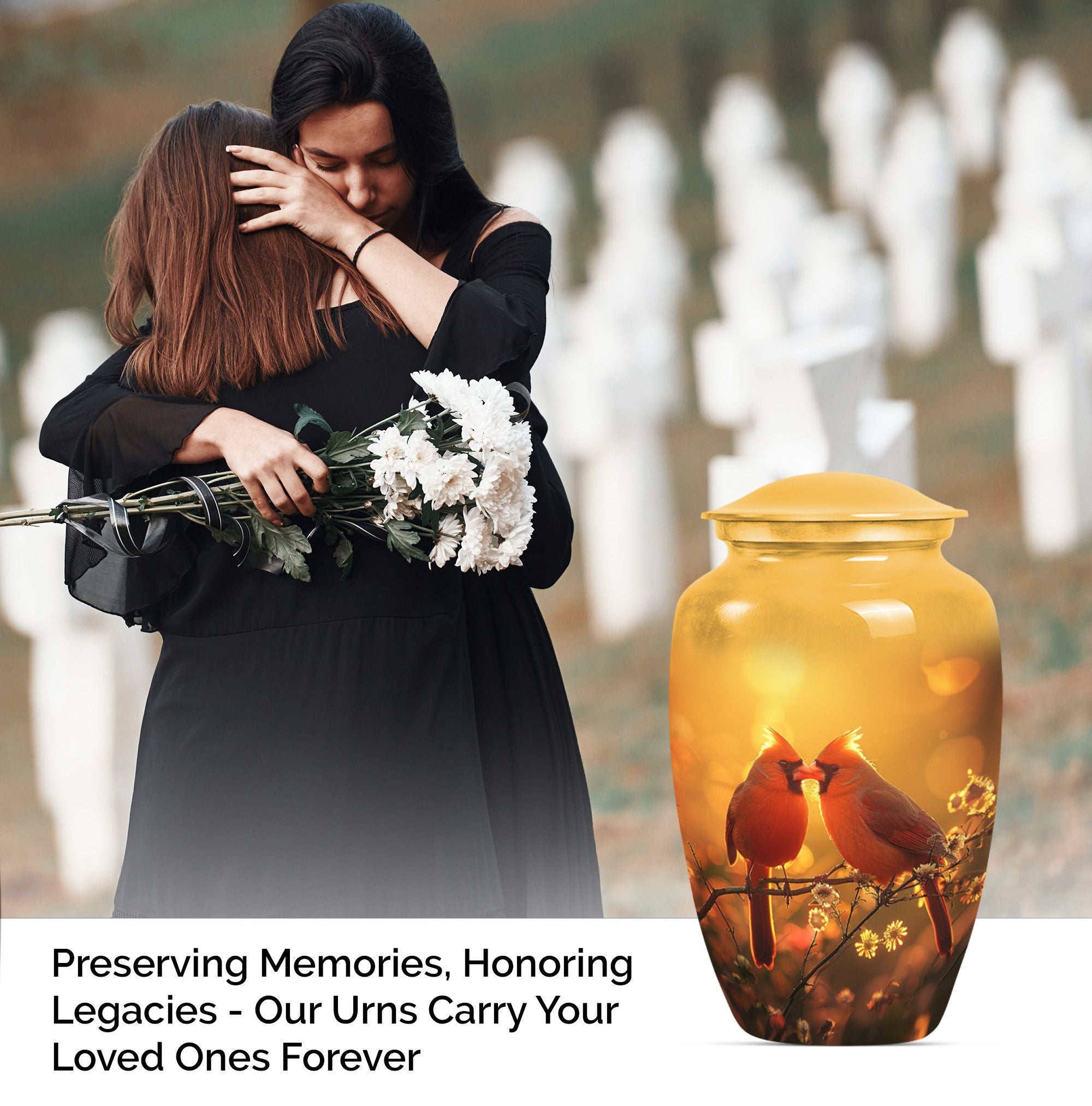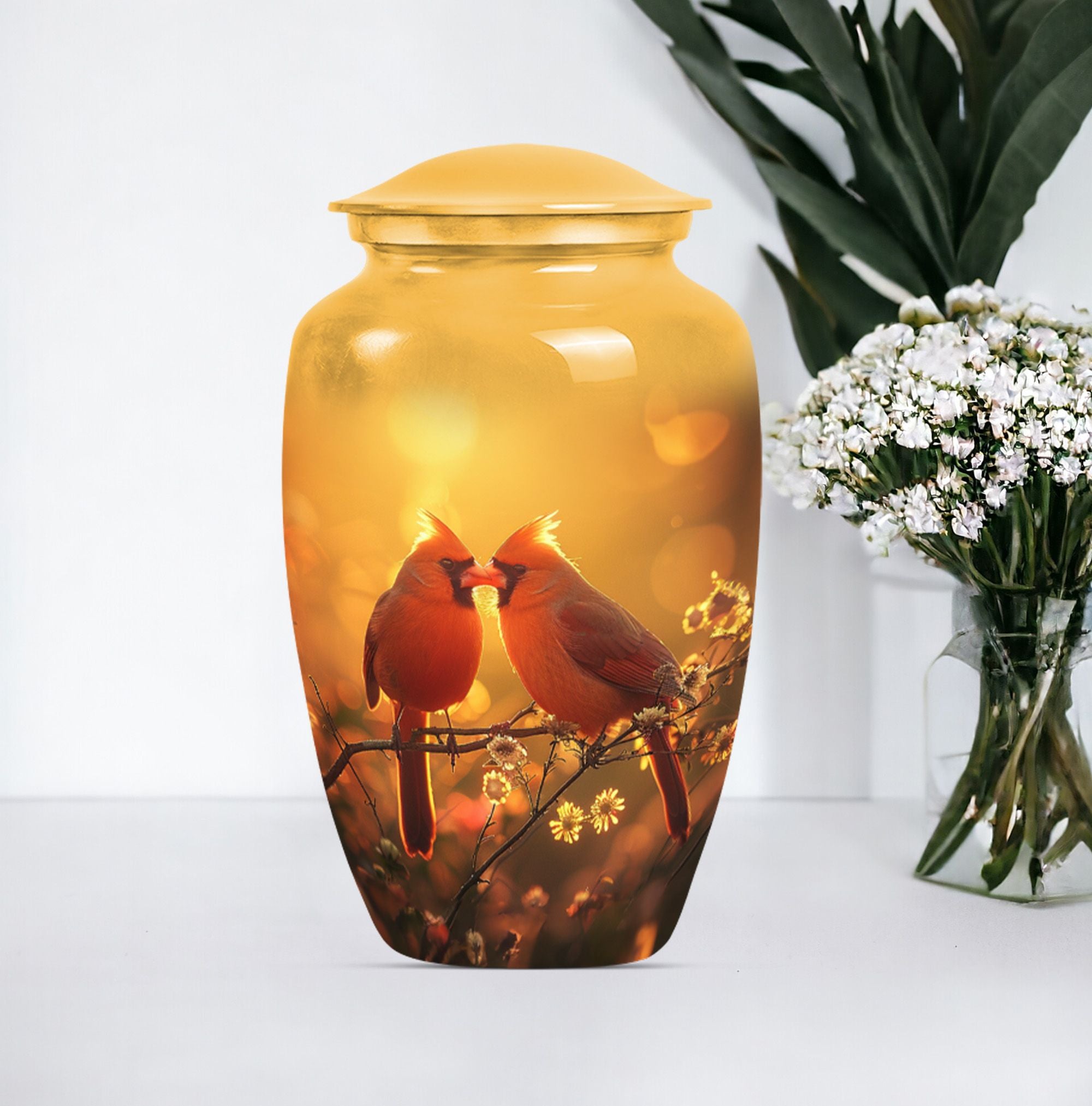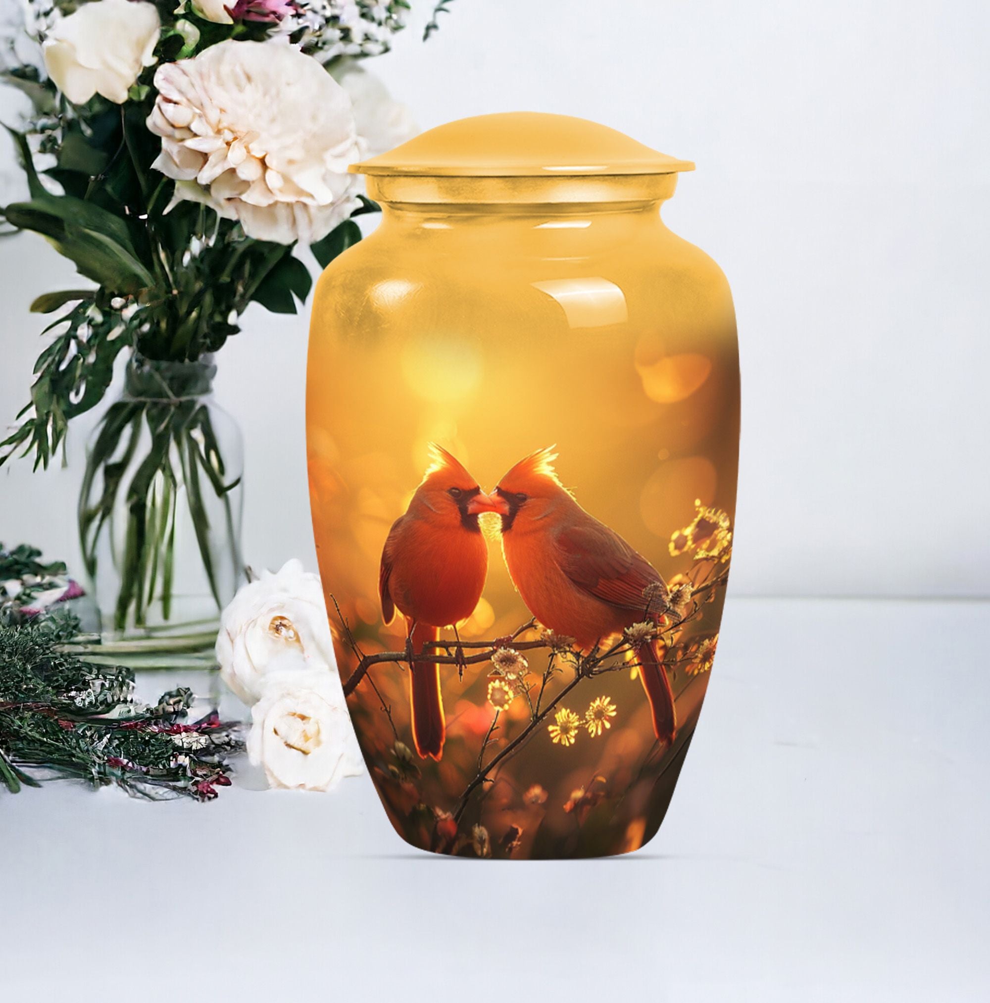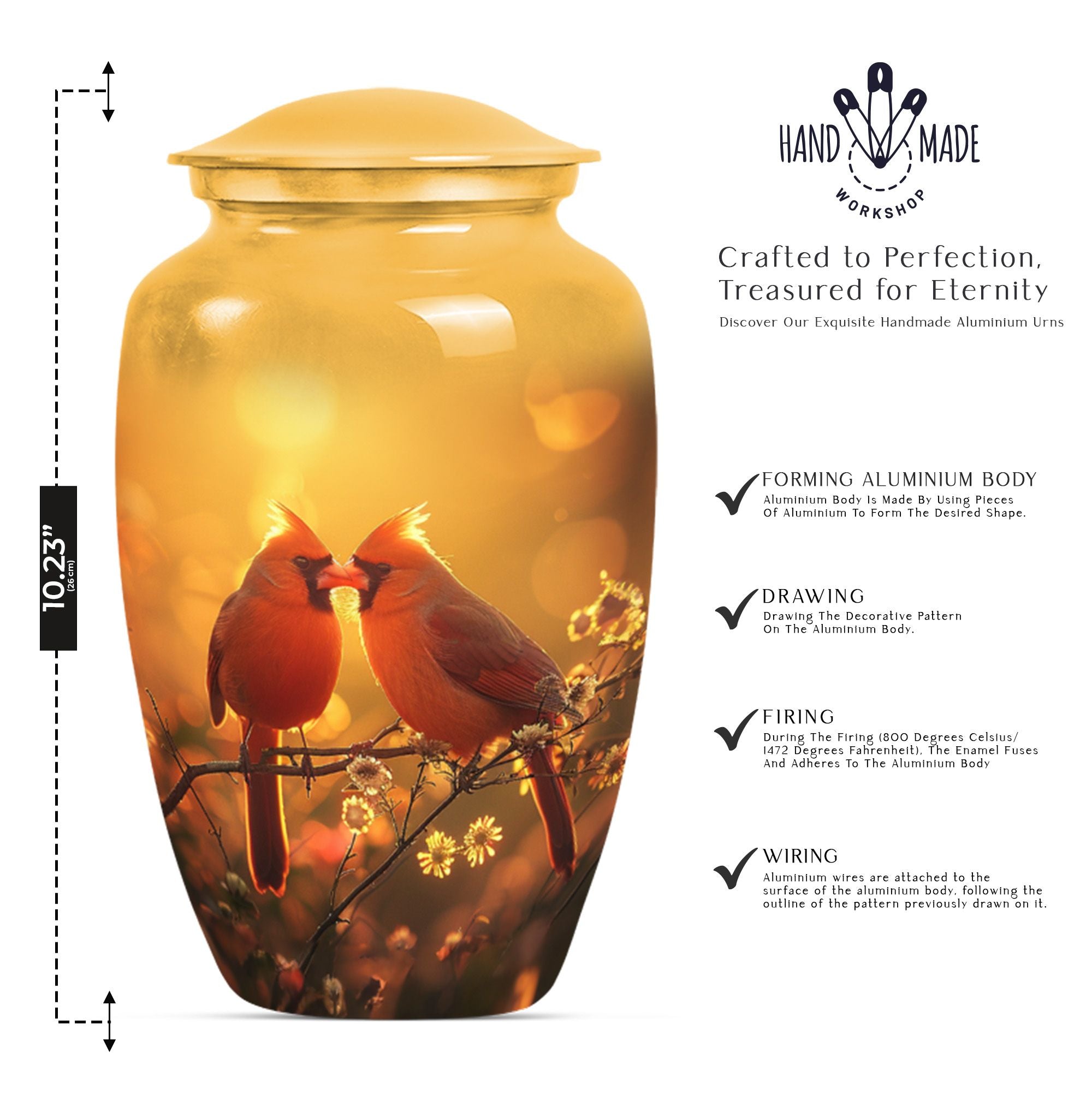 Discover serenity and memorialize the memory of your beloved with our 10-inch Cardinal Bird urn. This cremation large urn strikes an impressive balance between sophistication and subtle grandeur. Crafted entirely from durable aluminium, it promises longevity with a weight of 3.3 pounds, and a capacity to gracefully hold 200 cubic inches of ashes. Reflecting the heart-wrenching theme of 'Wolf Howling', it serves as a poignant reminder of the eternal spirit. To add a personal touch, this classic urn allows the option of customization, allowing you to engrave the names of your departed loved ones. Each urn comes with a velvet pouch, providing a respectful containment for the ashes. If you're searching for funeral urns, or specially cremation urns for human ashes, this beautiful Cardinal Bird Urn can help bring solace during your time of mourning. It's not just another burial ashes urn; it's a tribute to life and endless love.