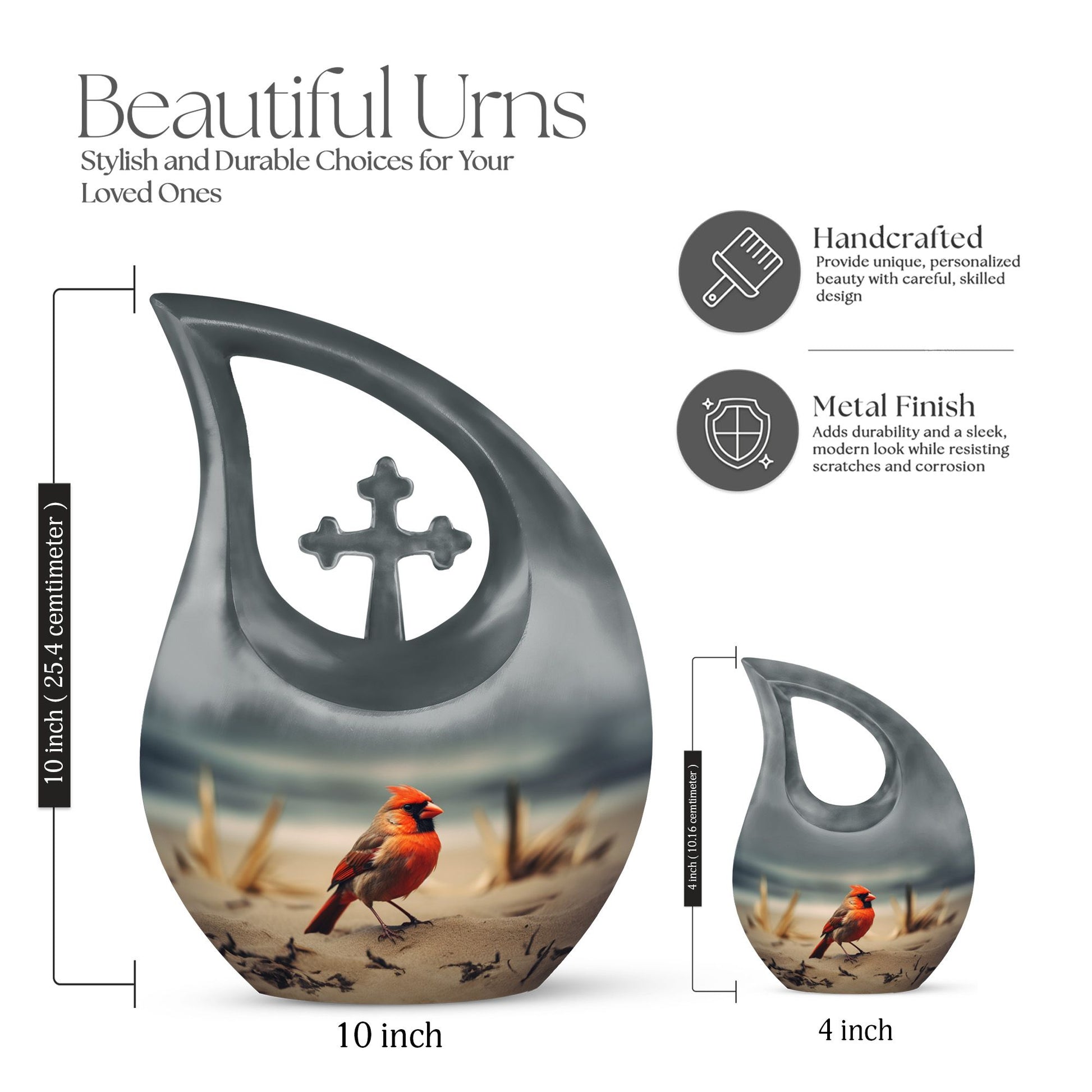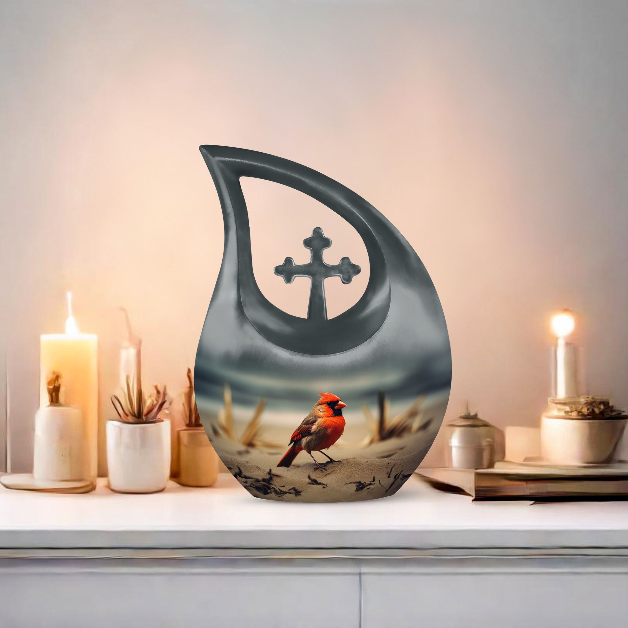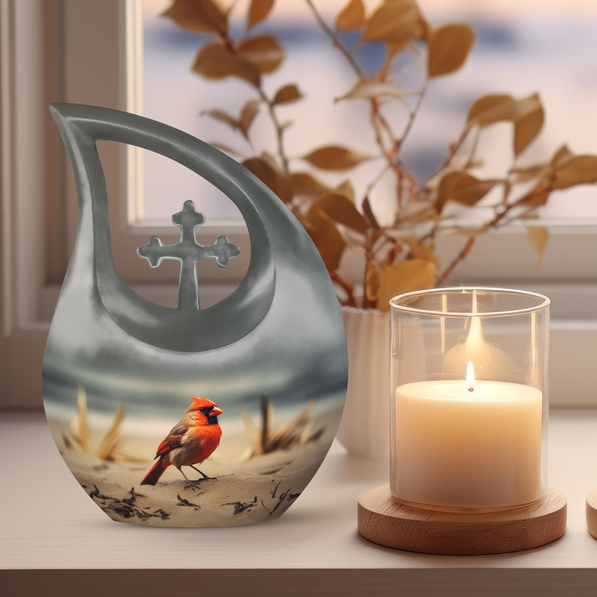 This Cardinal Bird Memorial Ashes Urn brings gentle comfort and serenity, blending symbolic cardinal artwork with a soothing beach-inspired design. It offers a heartfelt tribute for families seeking urns for adult female, urns for human ashes adult male, or a meaningful way to honor a beloved parent, partner, or friend.
