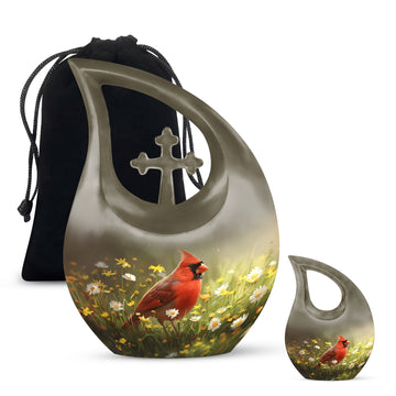 A tribute becomes truly meaningful when it offers comfort, beauty, and the opportunity to keep a loved one close. This Cardinal Bird Memorial Urn, paired with a small keepsake urn combo, creates a heartfelt remembrance set for families wishing to share ashes among relatives through small keepsake urns, small urn for ashes keepsake options, or decorative keepsake pieces.