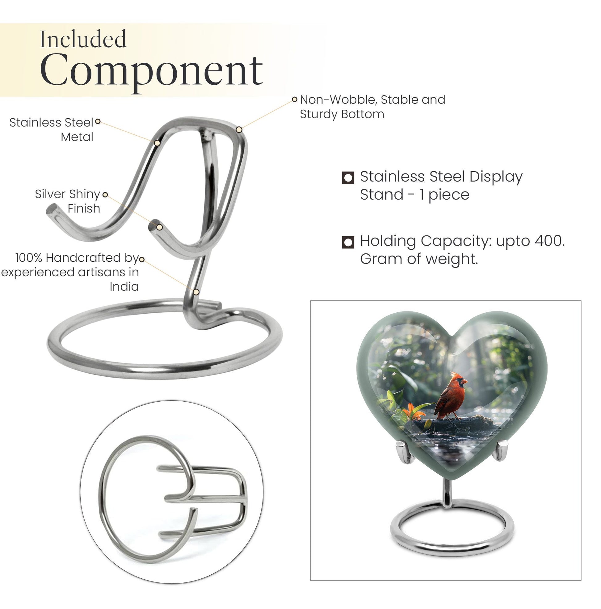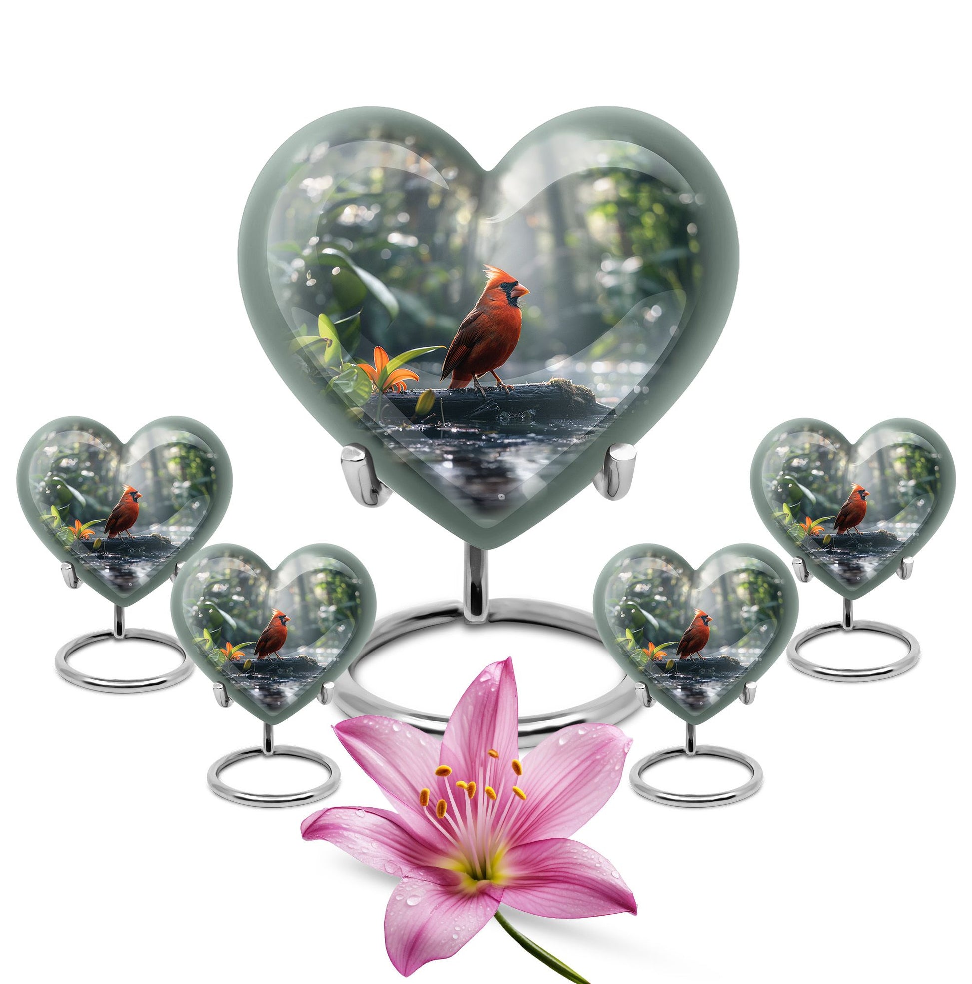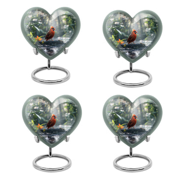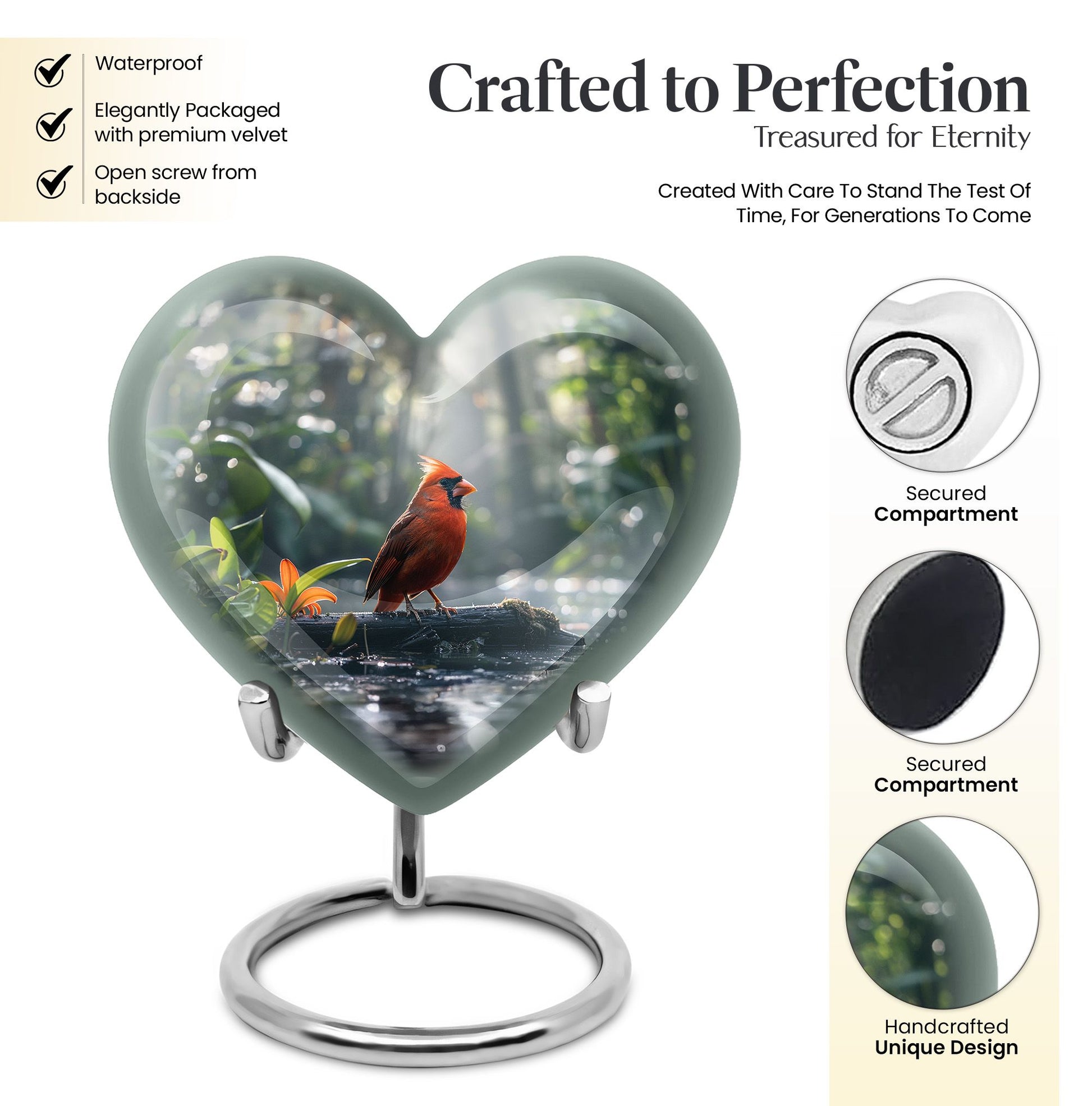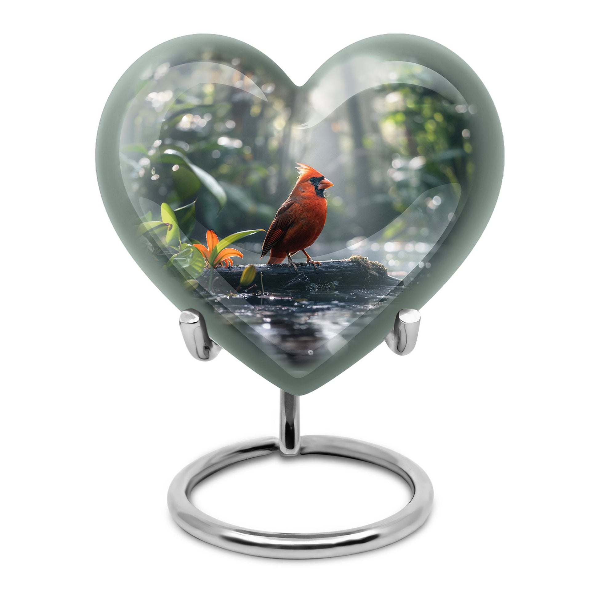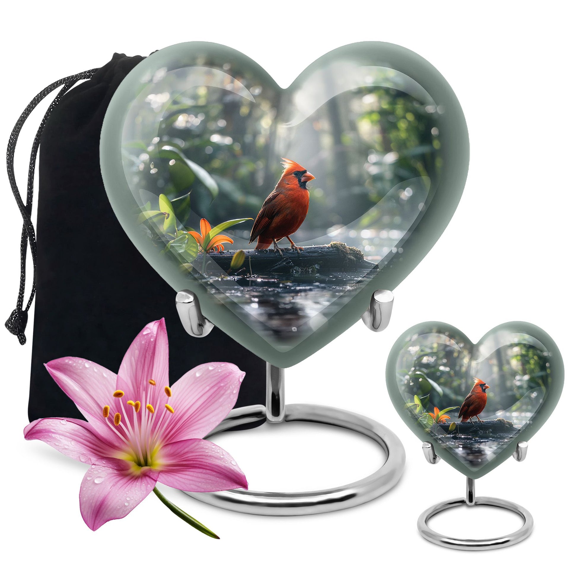 Presenting a majestic piece, the 10-inch Cardinal Bird Urn, an abstract-themed cremation companion meant for memorialization that transcends the ordinary. Crafted finely with lightweight yet durable aluminum, it weighs merely 3.3 pounds, rendering it portable yet steady. This large urn is ideal for human ashes from adults, regardless of gender. Brimming with a capacity of 200 cubic inches, it can safely hold the ashes of your loved ones with respect and grace. Moreover, our Cardinal Bird Urn comes in a heart-shaped design, linking directly to the essence of love and remembrance. We also provide an elegant velvet pouch for the containment of ashes, ensuring the dignity in handling is retained. Moreover, our funeral urn permits customization, allowing the engraved names to make it more personal and attached to your dear departed. Perfect for those searching for 'cremation urns' or 'memorial urns', this unique artefact is not only a vessel for ashes but also a tribute of enduring love.
