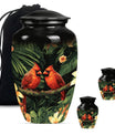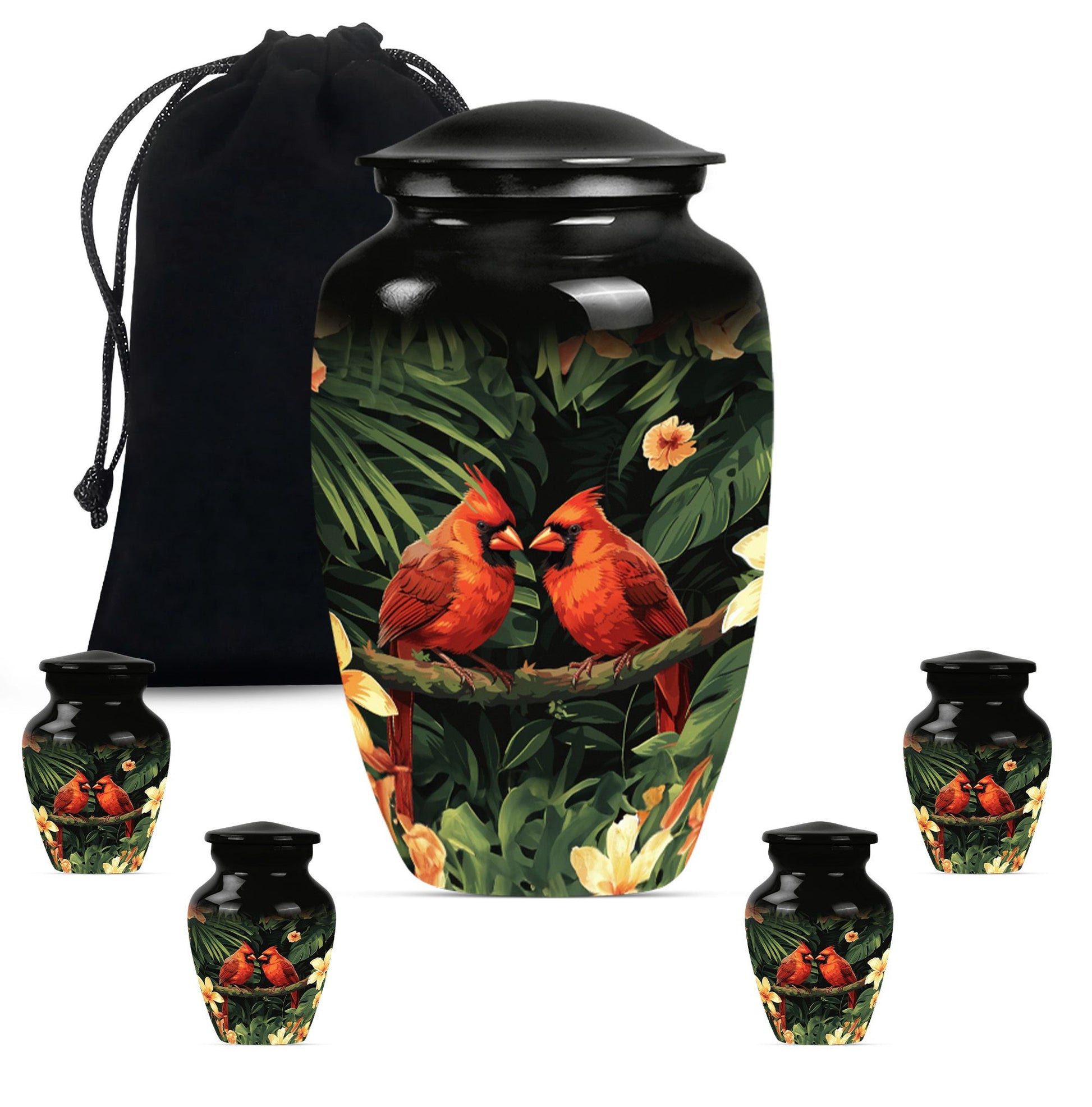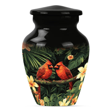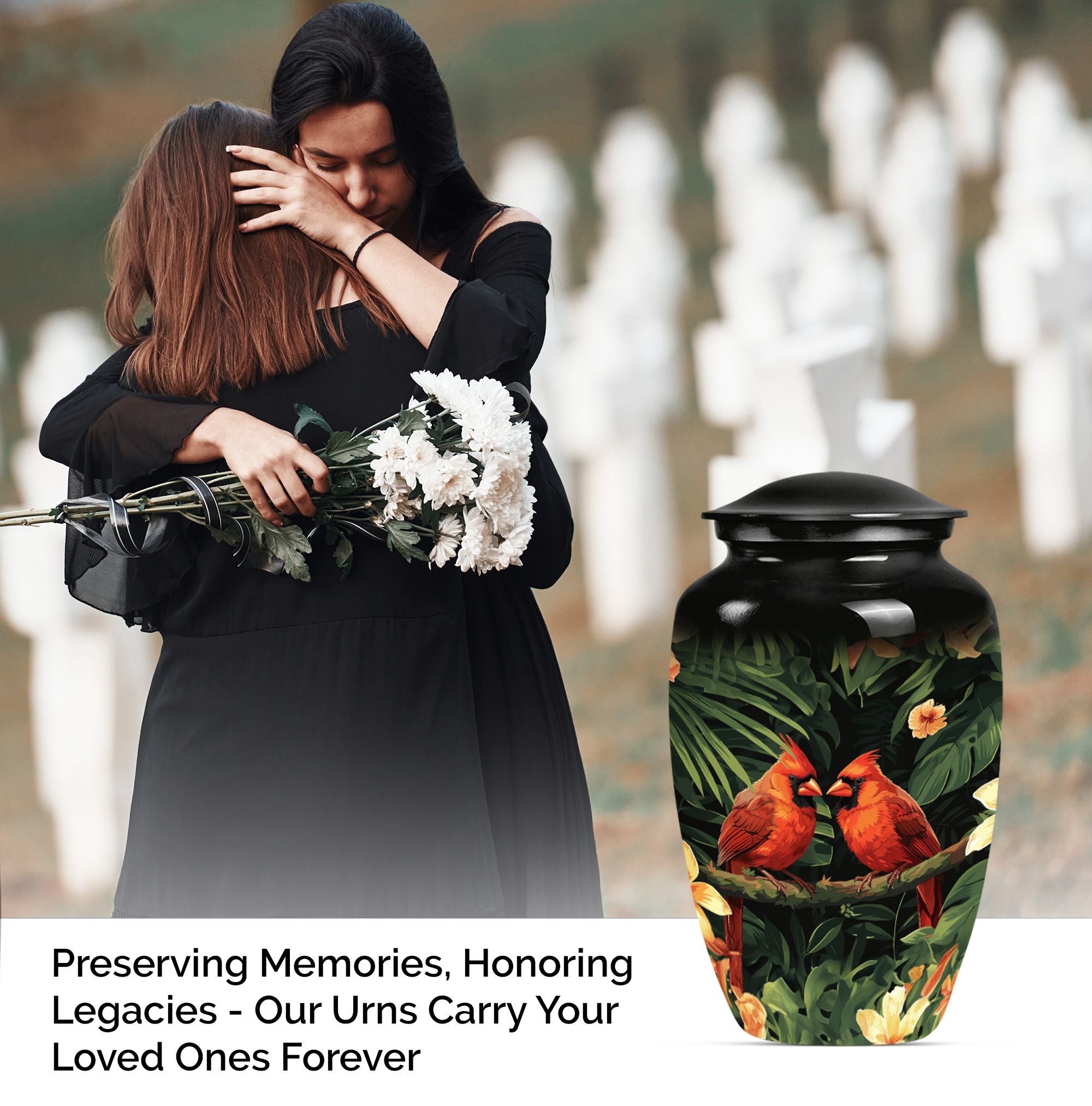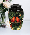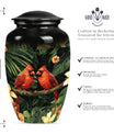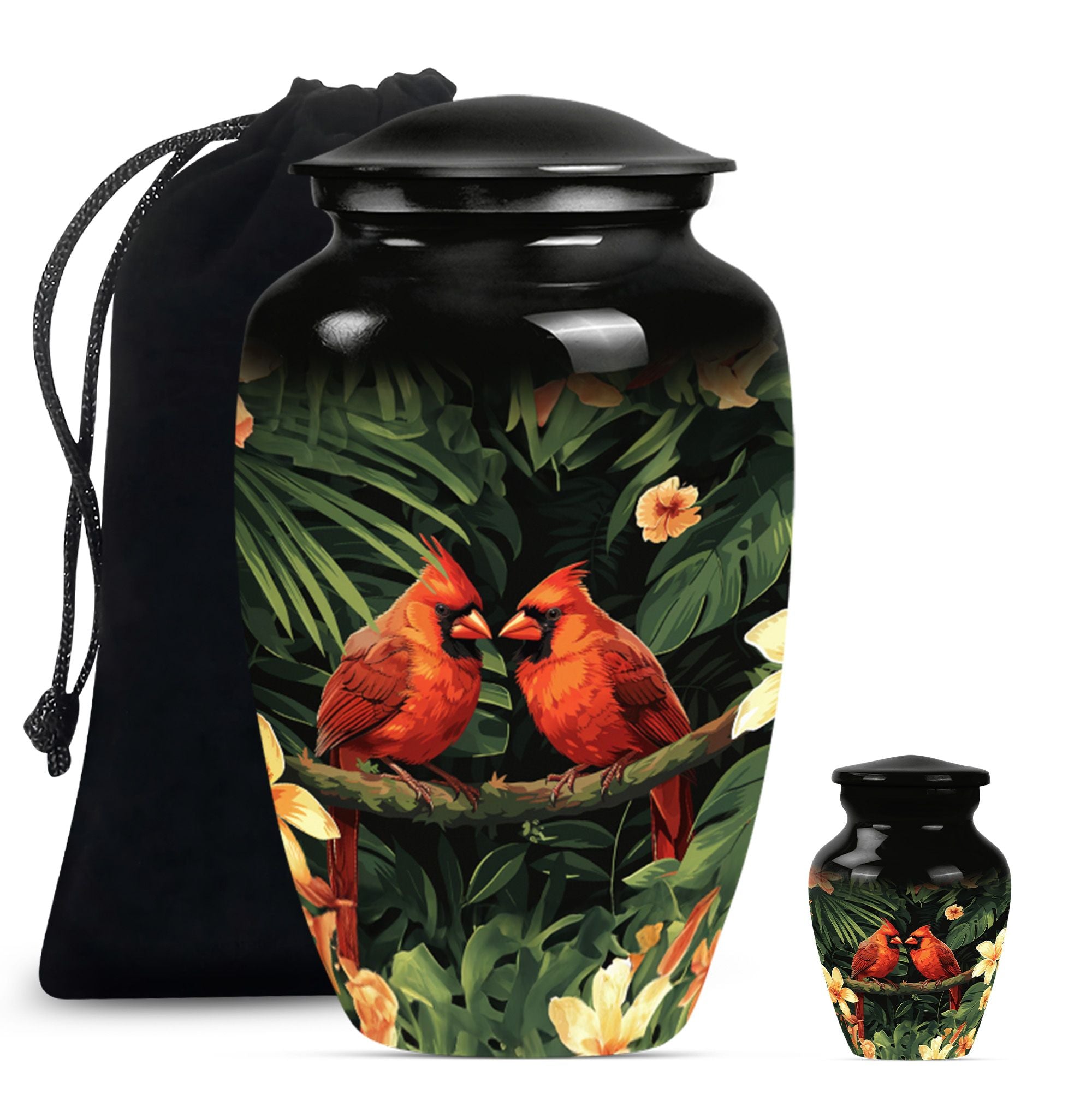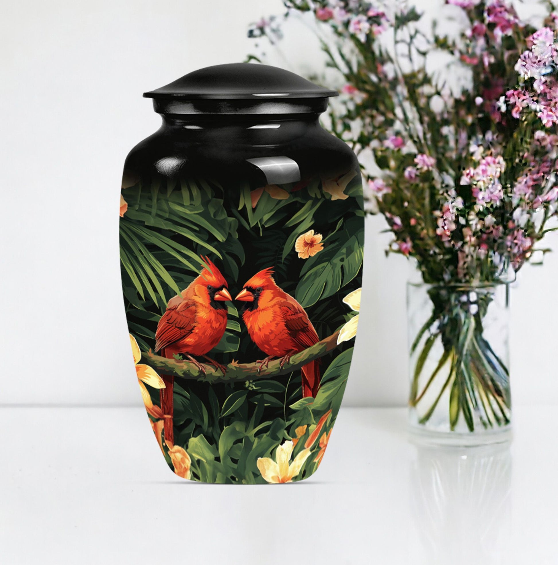 Honour your departed loved ones with our distinctly fashioned Cardinal bird urn. This adult memorial urn presents a remarkable craftsmanship, hailing from premium quality aluminium and standing tall at 10 inches. It's a large urn, constructed to accommodate up to 200 cubic inches of ash and weighing a solid 3.3 pounds. With a theme representing a Wolf Howling - this crestor of the wild brings about a unique sense of respect and remembrance. The cremation urn comes complete with a velvet pouch to safely contain the ashes of your loved one. Plus, you have the option to enhance its sentimentality through further personalization by engraving names. This 'Cardinal bird Urn' is not just a cremation container for human ashes, but also an elegant piece of art that sincerely venerates the memory of the departed. Whether for funeral burial urns or human ash urns needs, this gracefully designed urn stands out with its aesthetic appeal. Envelop the ashes of your cherished one in this cardinal bird urn, and let their spirit forever resonate in your heart.