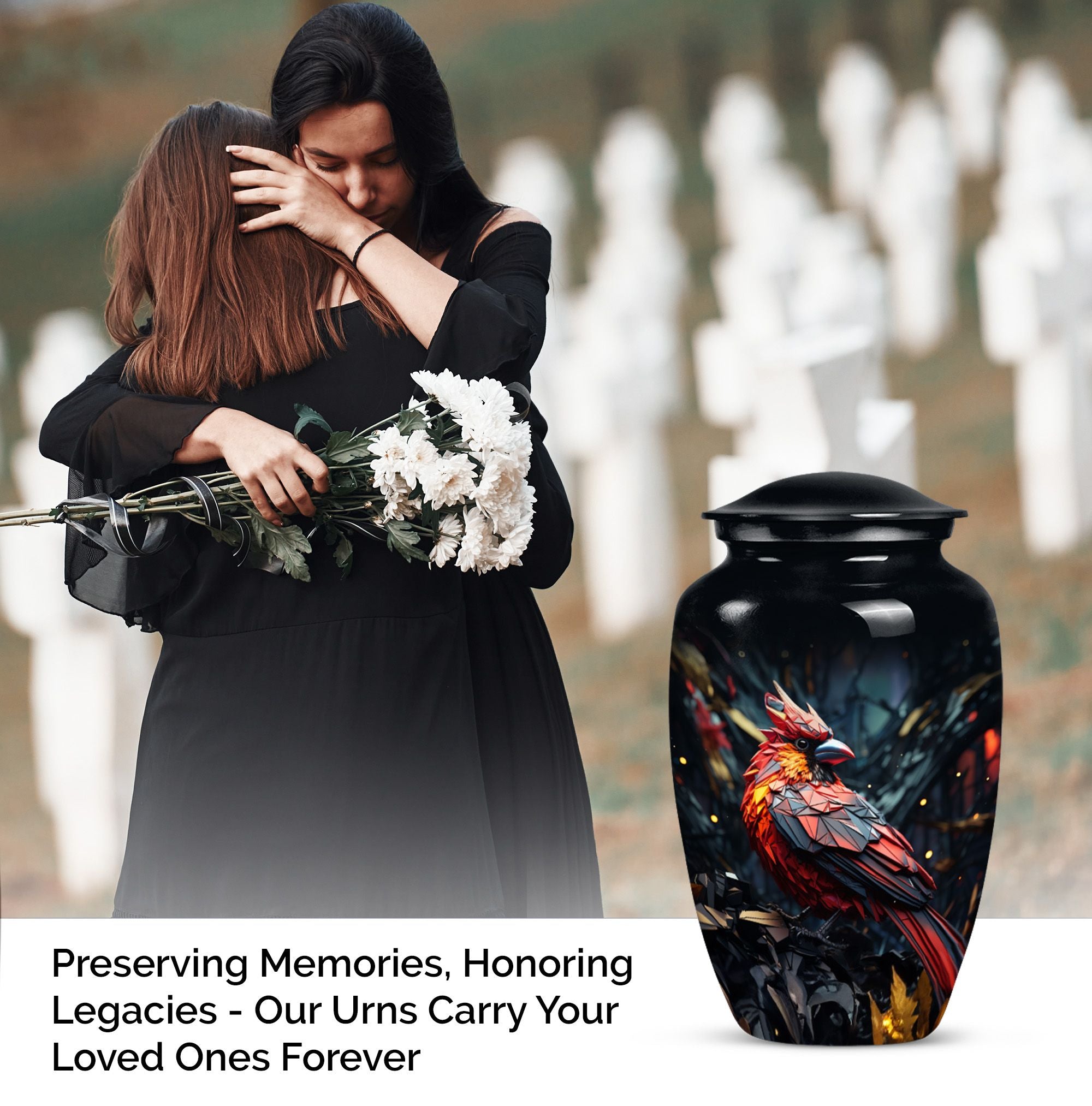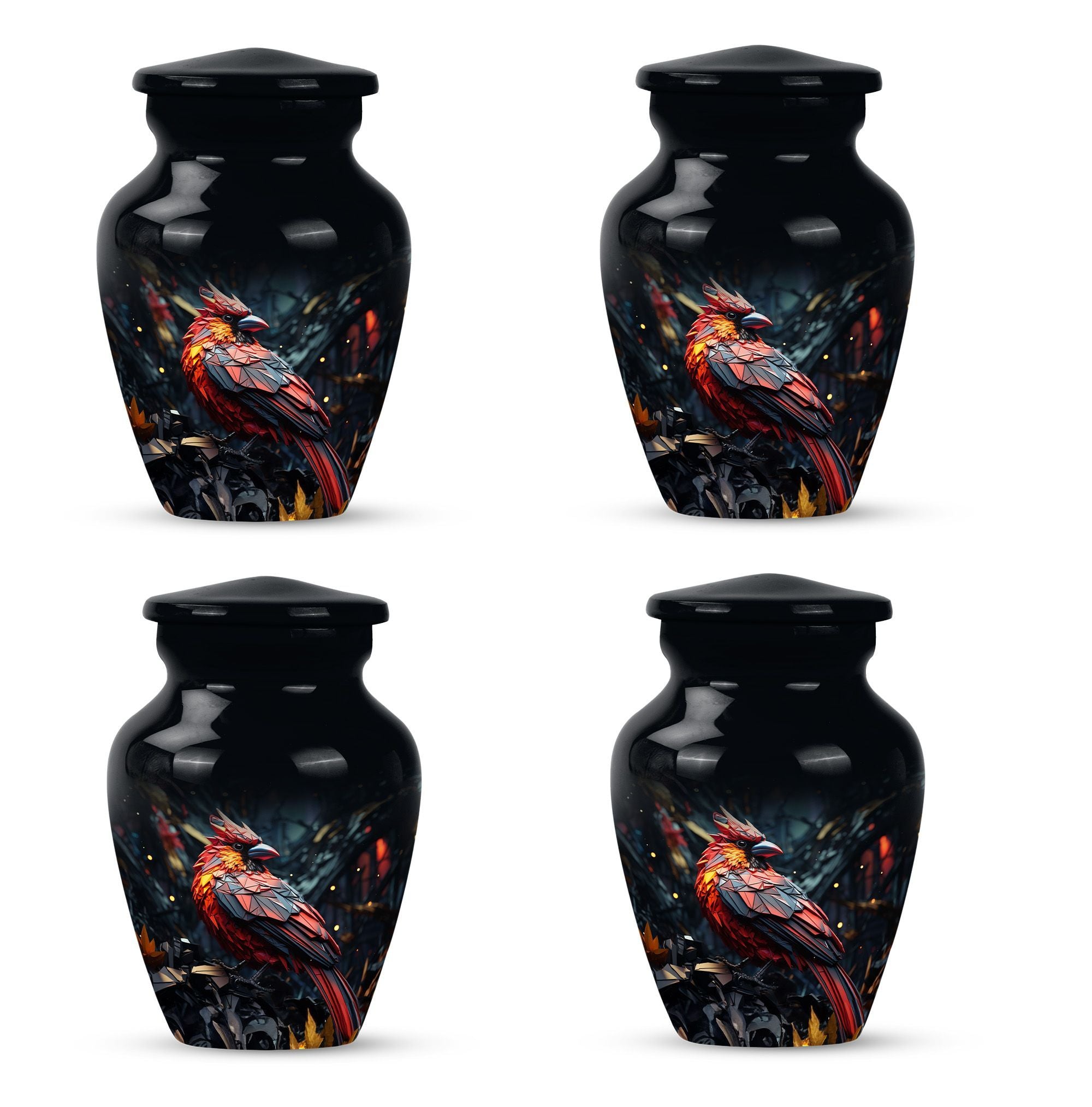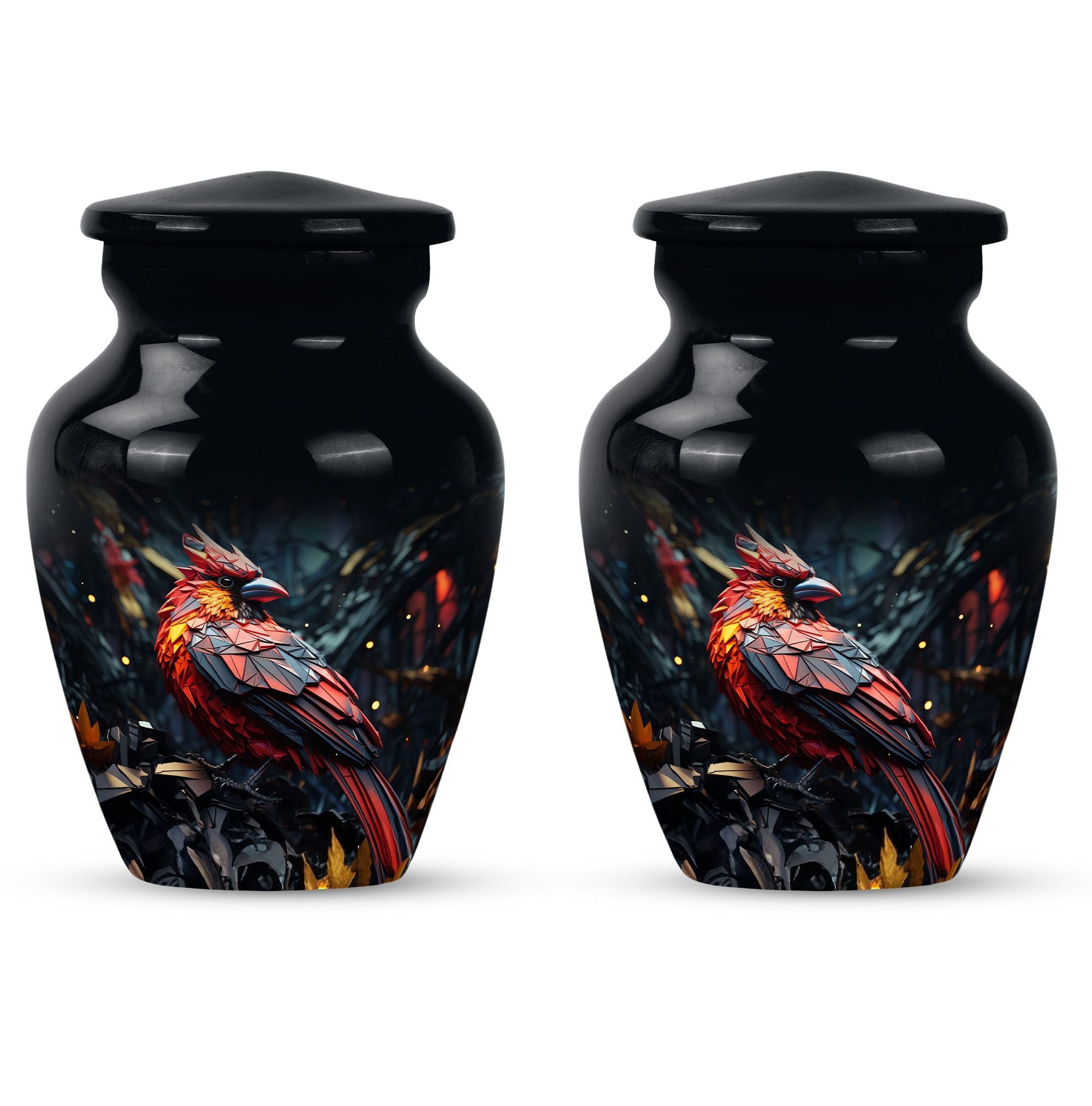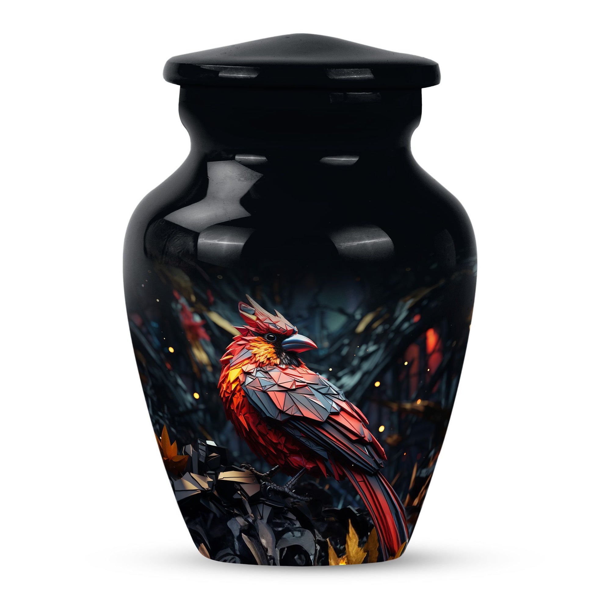 Embrace a beautiful tribute to your loved one with our 10-inch Cardinal Bird Urn, a timeless solution to honor their legacy. This tier-one funeral burial urn is designed to store adult human ashes, serving as a heartfelt memorial. Its classic urn design, paired with an abstract theme handcrafted in high-quality aluminium, accentuates its simple elegance. The sizeable capacity of 200 cubic inches ensures it can effortlessly contain your precious memories. Weighing a comfortable 3.3 pounds, and measuring 10 inches in height, this large urn can seamlessly fit into any designated space or shaped shelf. It comes with a cosy velvet pouch for tasteful containment of ashes, adding an essential touch of privacy and respect. To make this piece even more special, it offers customization options, letting you personalize it with engraved names. This unique, cardinal bird urn, often searched as 'memorial urns' or 'burial large urn' brings a sense of calm and closure in difficult times. Please note, this product does not include design-related attributes.