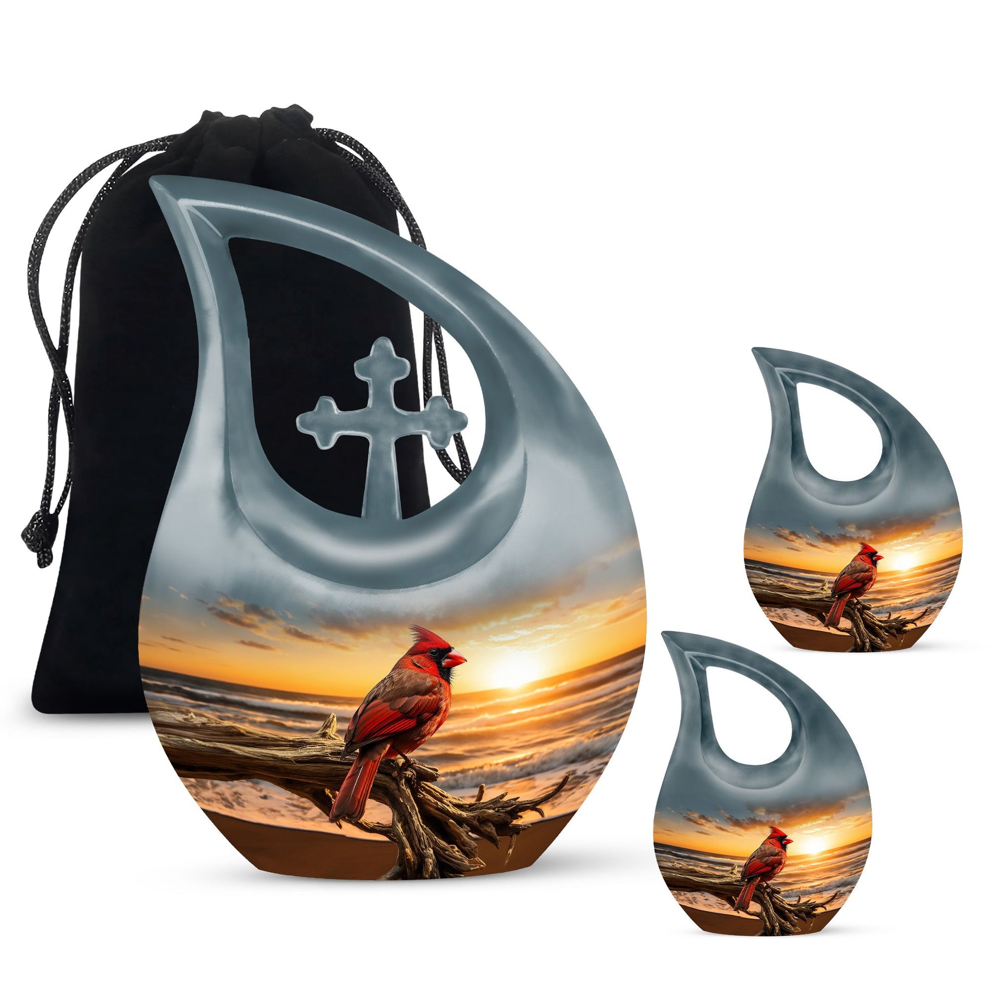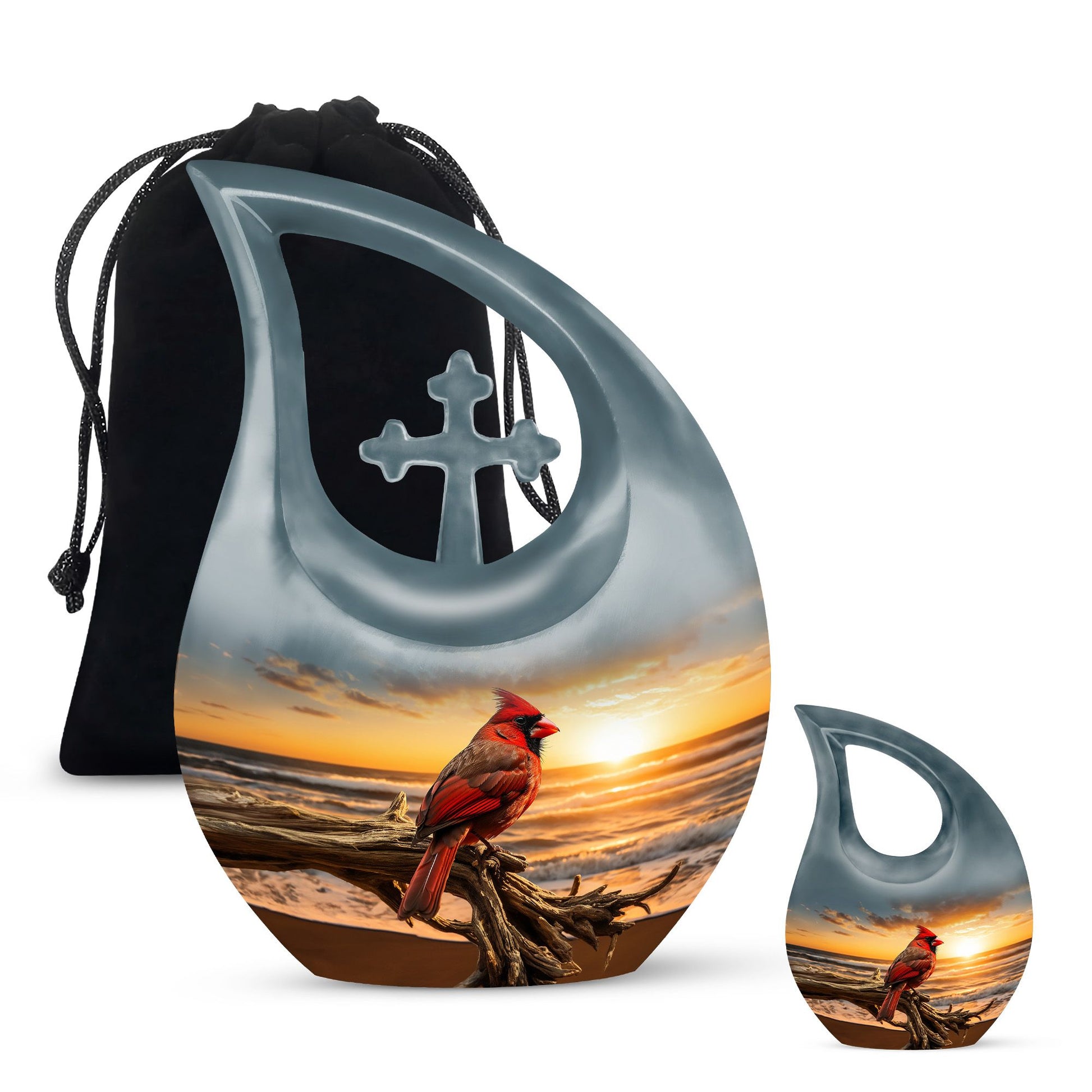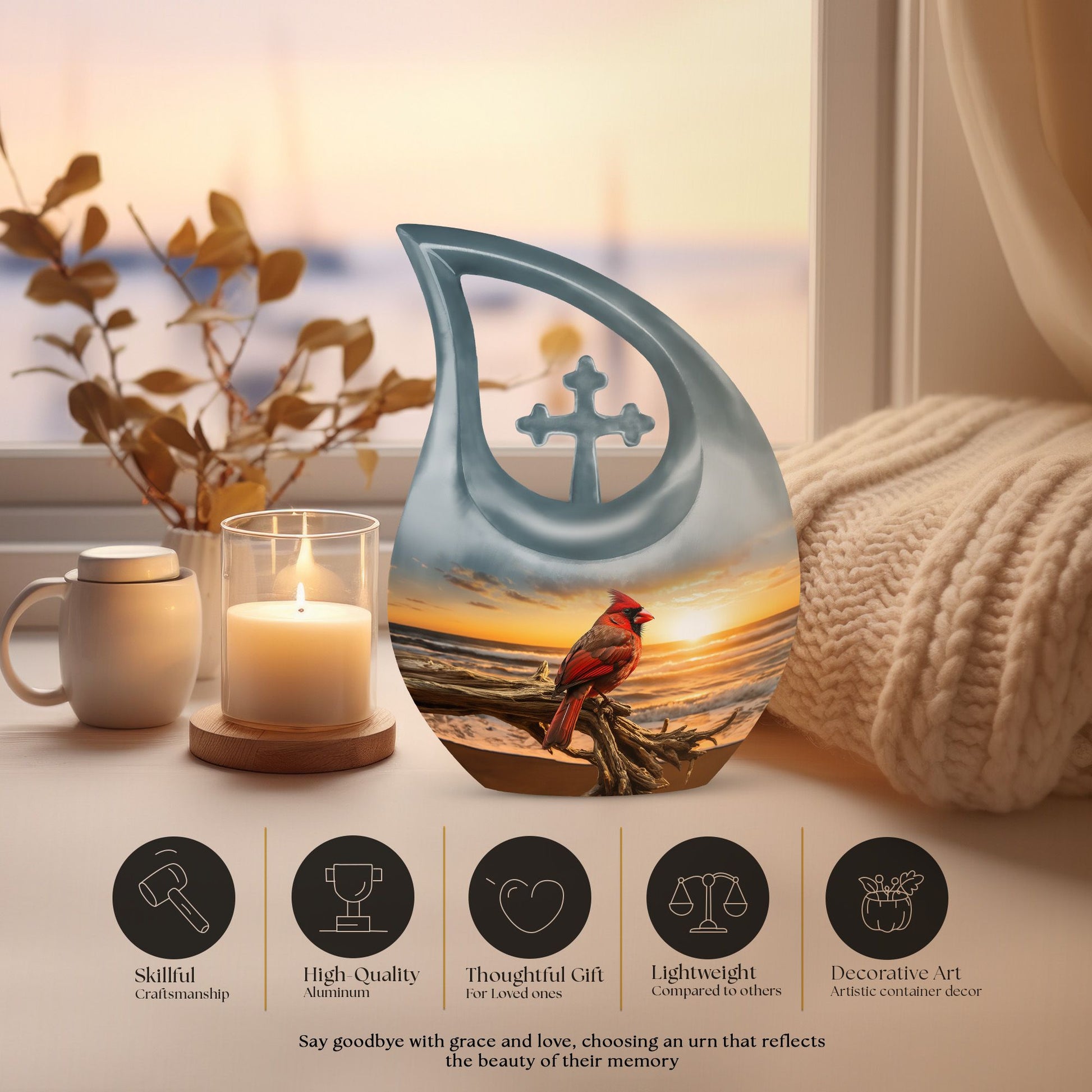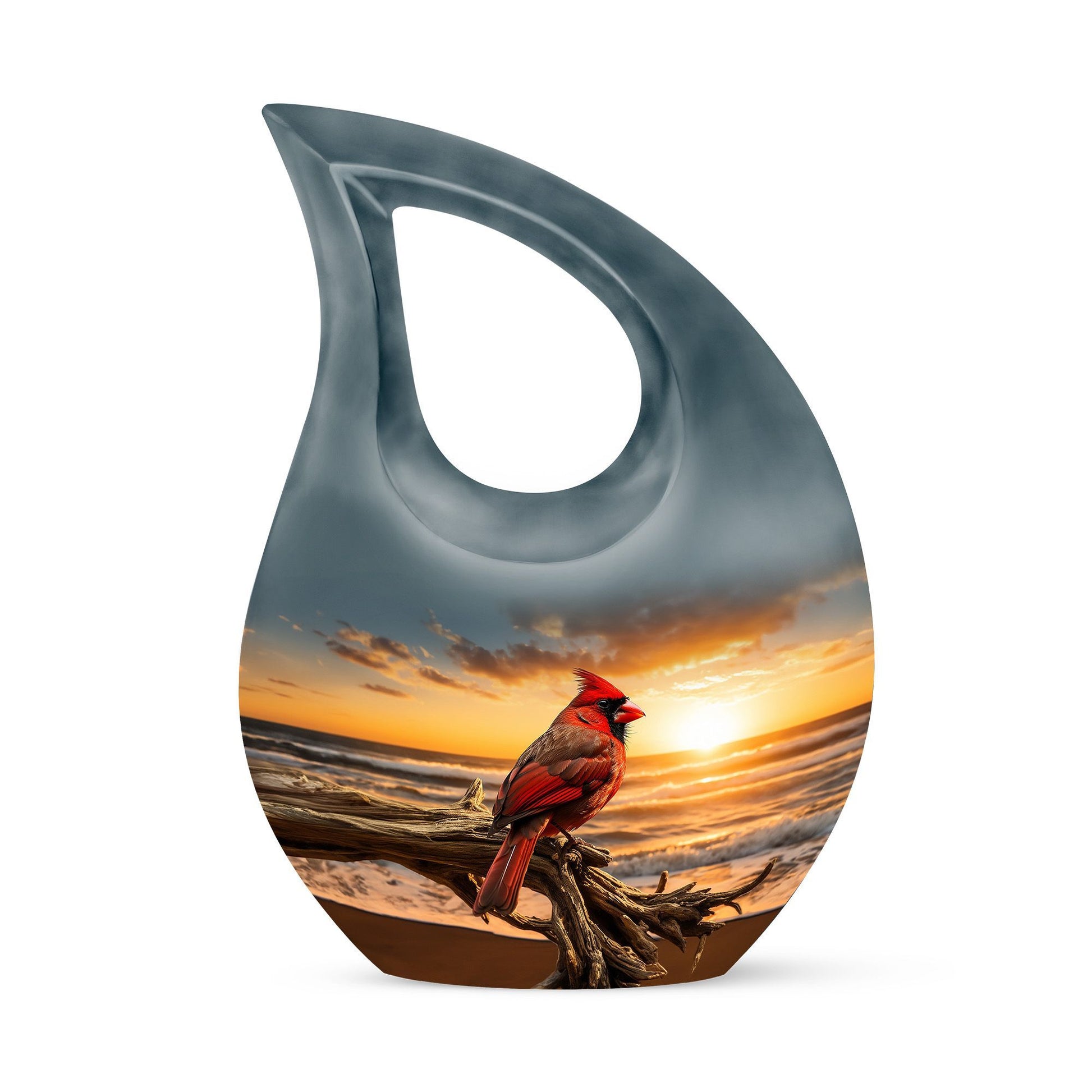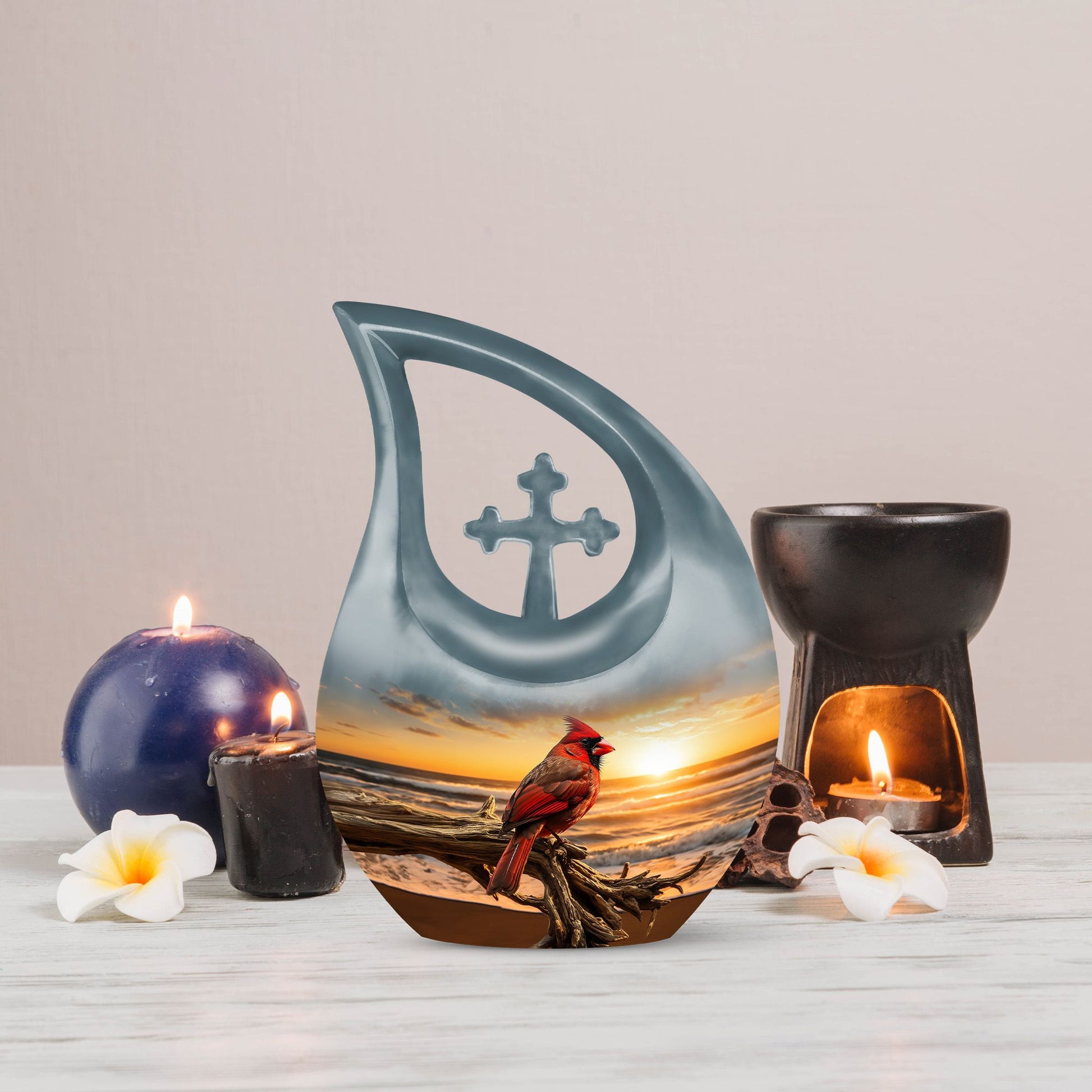 The sunset backdrop symbolizes transition and eternal rest, while the red cardinal—often viewed as a messenger of remembrance—makes this urn a meaningful choice for those seeking urns for adult male dad or urns for human ashes adult male dad. Its artistic detail and compassionate design ensure a tribute that truly honors a life well lived.
