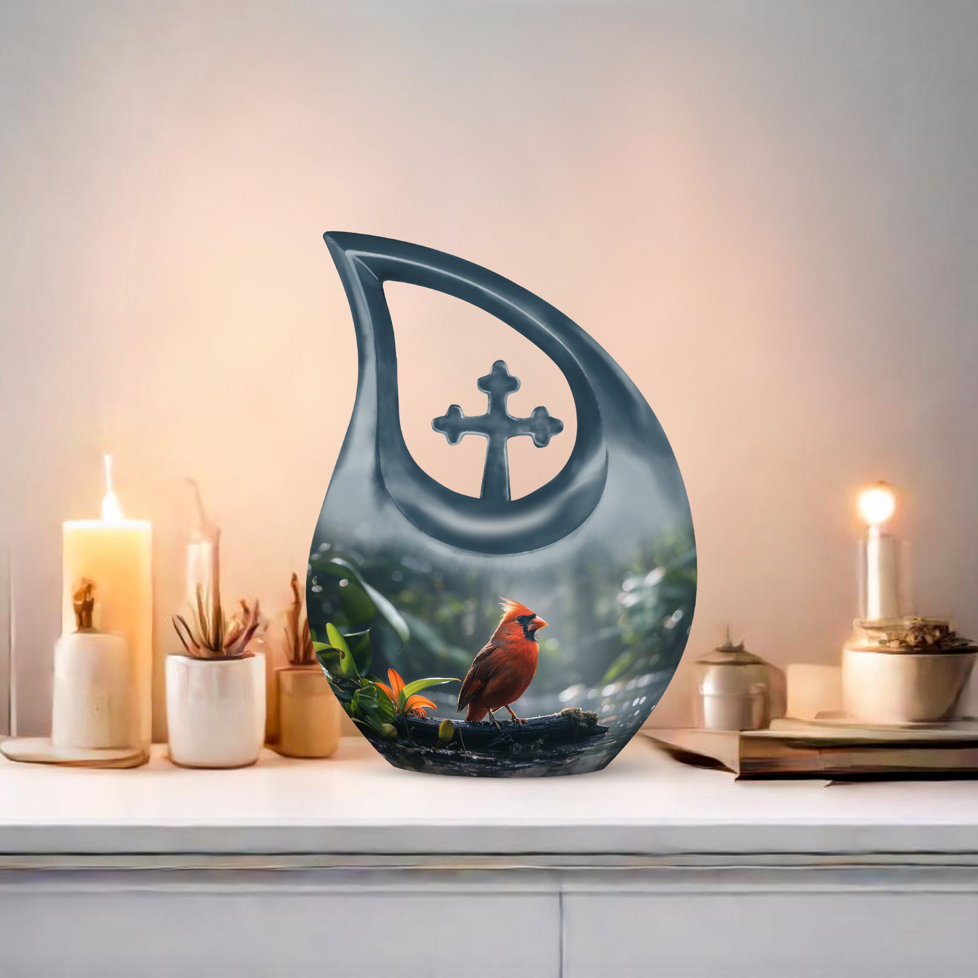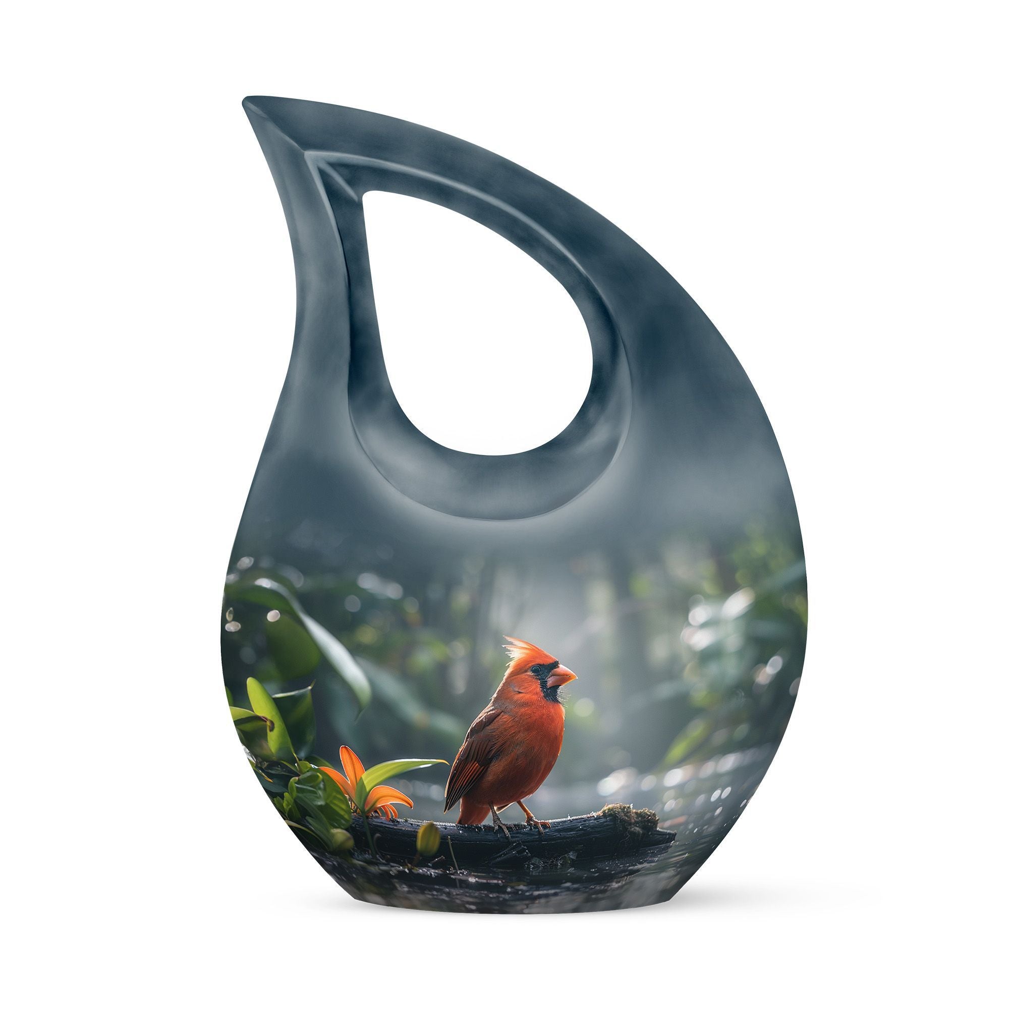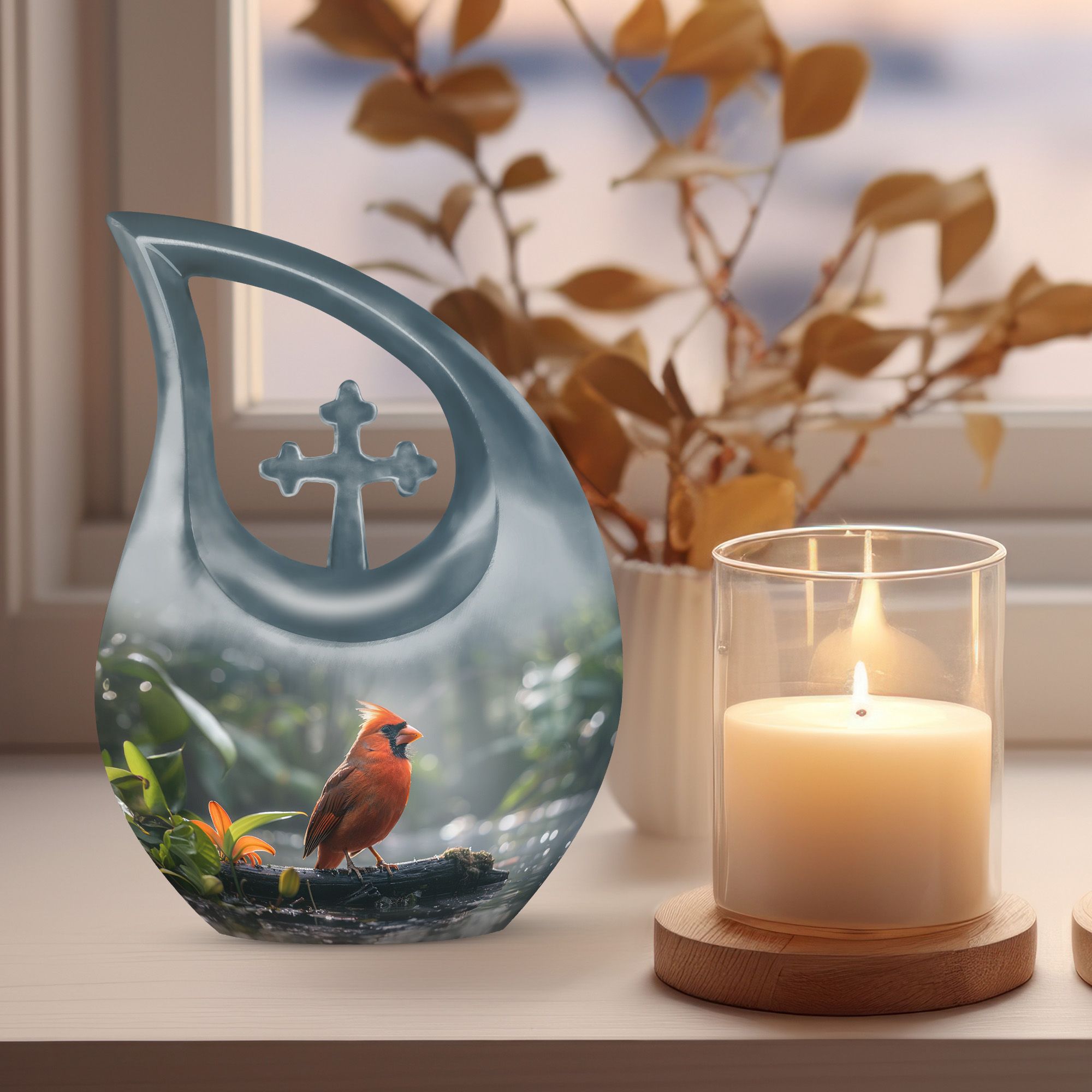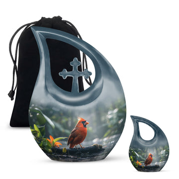 Handcrafted from durable aluminium, this urn blends lasting strength with elegant artistry. The vivid cardinal bird design gives it a timeless presence, suitable as one of the keepsake urns human ashes families choose for remembrance. Designed to function both as a keepsake and a burial option, it serves beautifully as an ash urns for humans keepsake, an urn ashes keepsake, or part of a thoughtfully arranged keepsake urn set or urn keepsake set. The secure screw-top lid ensures peace of mind for long-term memorial use.