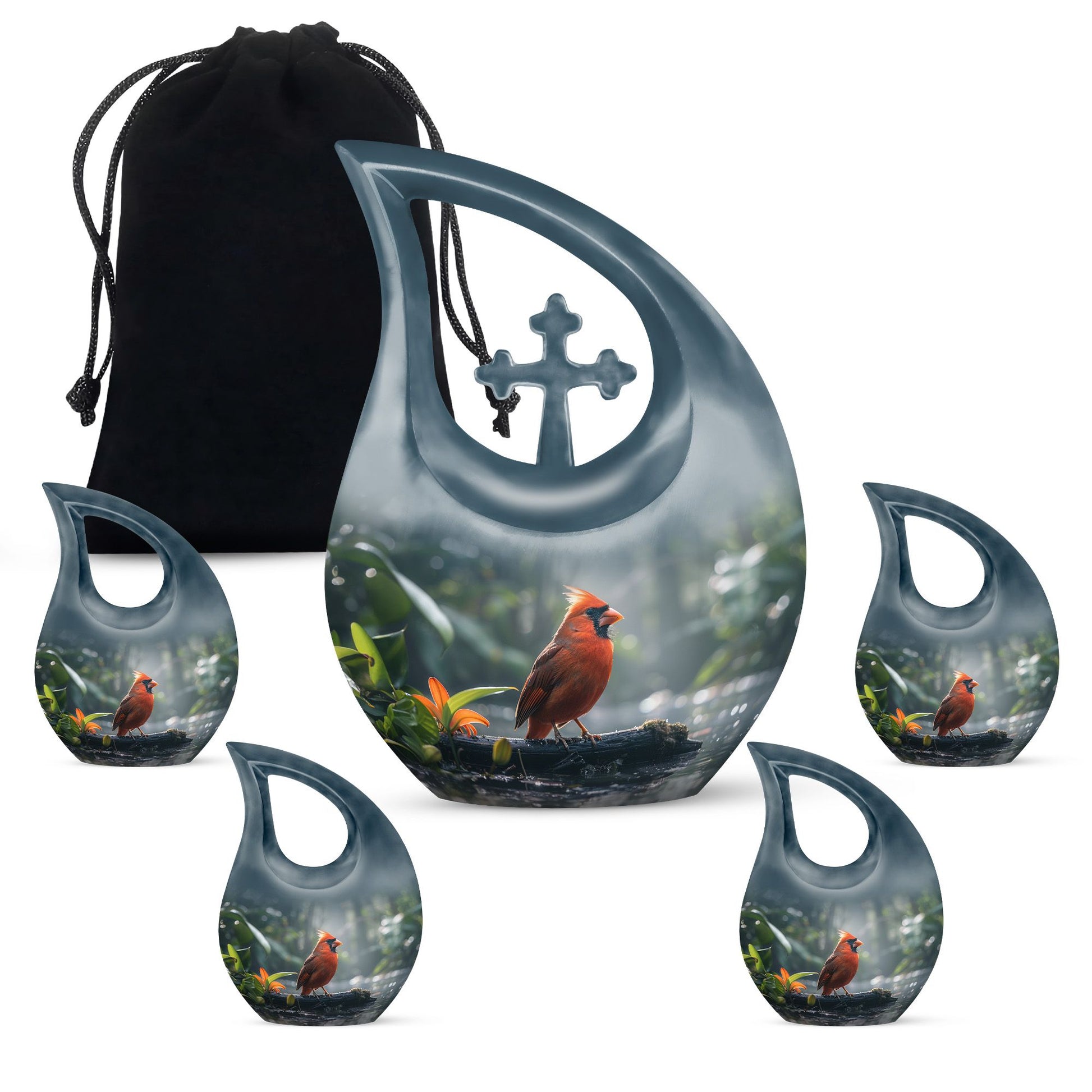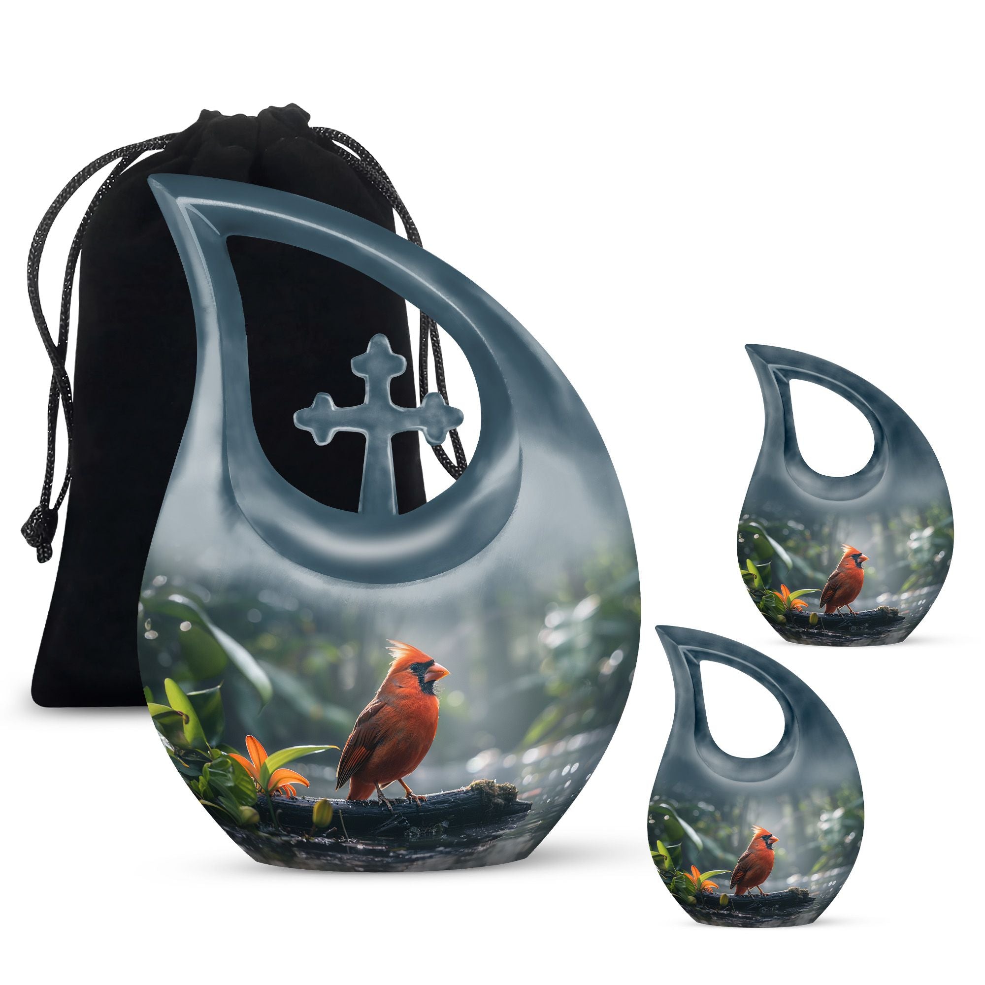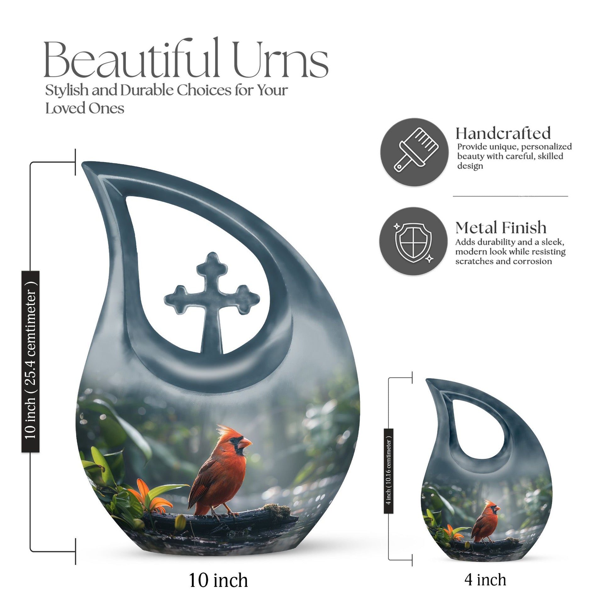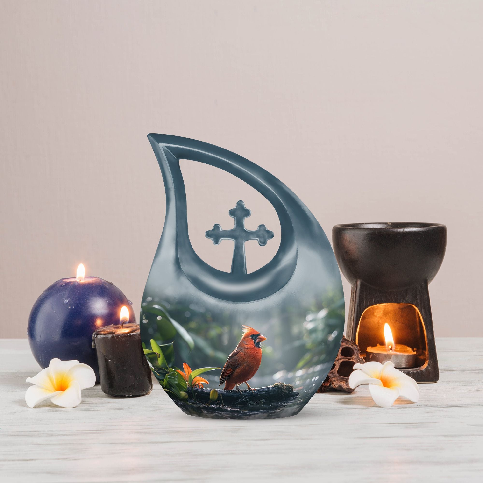 Handcrafted from durable aluminium, this urn blends lasting strength with elegant artistry. The vivid cardinal bird design gives it a timeless presence, suitable as one of the keepsake urns human ashes families choose for remembrance. Designed to function both as a keepsake and a burial option, it serves beautifully as an ash urns for humans keepsake, an urn ashes keepsake, or part of a thoughtfully arranged keepsake urn set or urn keepsake set. The secure screw-top lid ensures peace of mind for long-term memorial use.