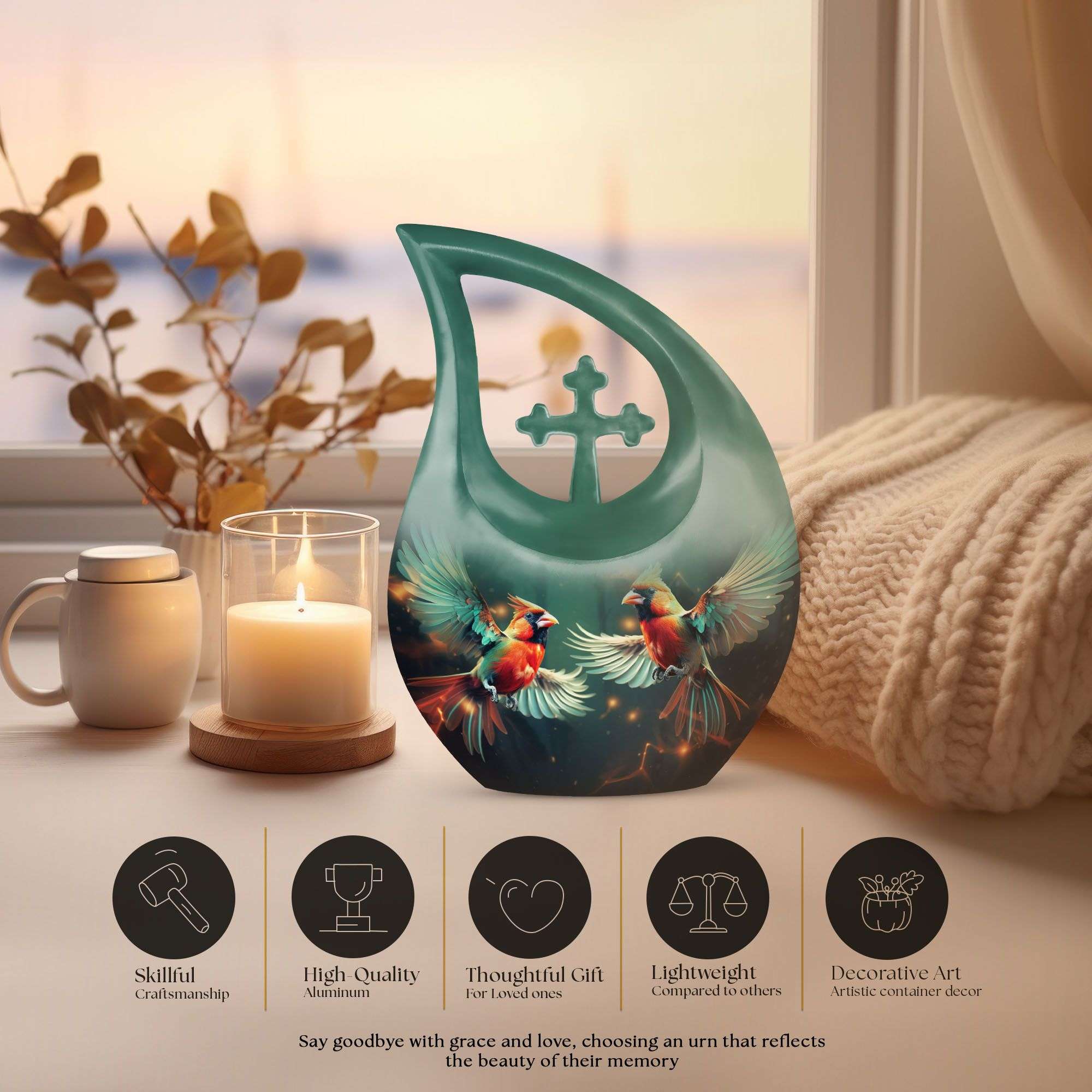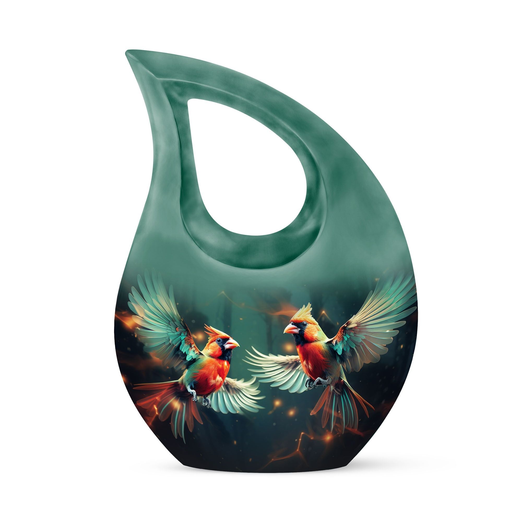 Celebrate a life beautifully remembered with the Cardinal Birds Cremation Keepsake Urn, a touching tribute that captures the eternal message of love and presence. The red cardinal is believed to be a heavenly visitor, symbolizing that our loved ones remain near. Perfect for families seeking a cremation memorial or cremation urn for human ashes, this urn offers both beauty and comfort in remembrance.