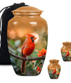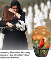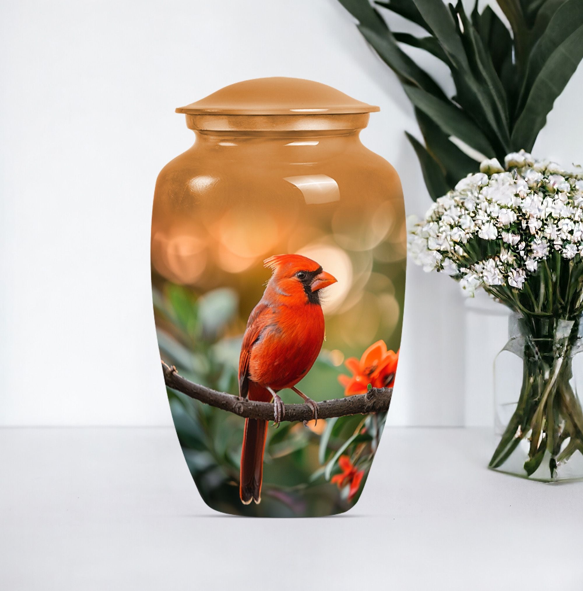 Celebrate and remember the life of your loved ones with our Cardinal bird urn, a dignified final resting place to honor their memory. This large urn is meticulously crafted from superior aluminium featuring a unique wolf howling theme that adds a touch of solemnity and tranquility. Measuring 10 inches in height and weighing a solid 3.3 pounds, this memorial urn can hold up to 200 cubic inches of ashes. For your convenience, this urn comes with a velvet pouch, providing a respectful containment for the ashes. Further, you can personalize it with engraved names, making it a one-of-a-kind tribute to your loved one. This memorial adult urn is perfect for burial in ground or can simply be placed on your mantle as a constant reminder of the cherished moments. It seamlessly marries functionality and sentiment, ensuring your loved one's memory stands the test of time. Please note: this product doesn't feature any specific design.