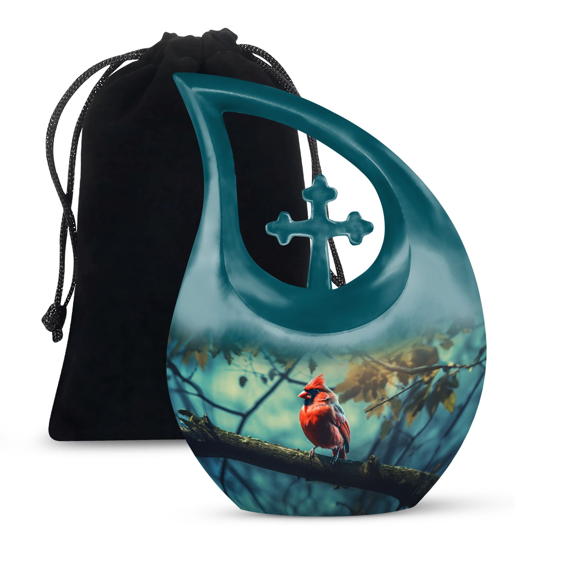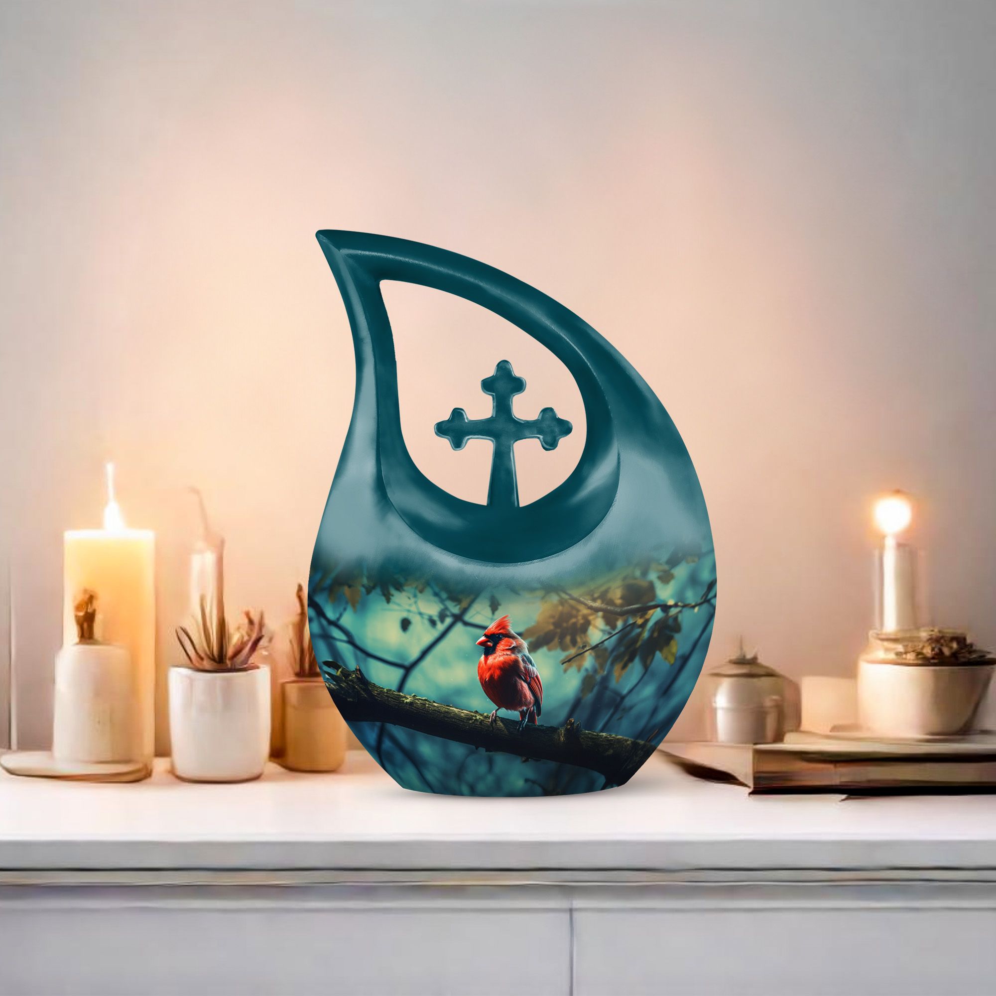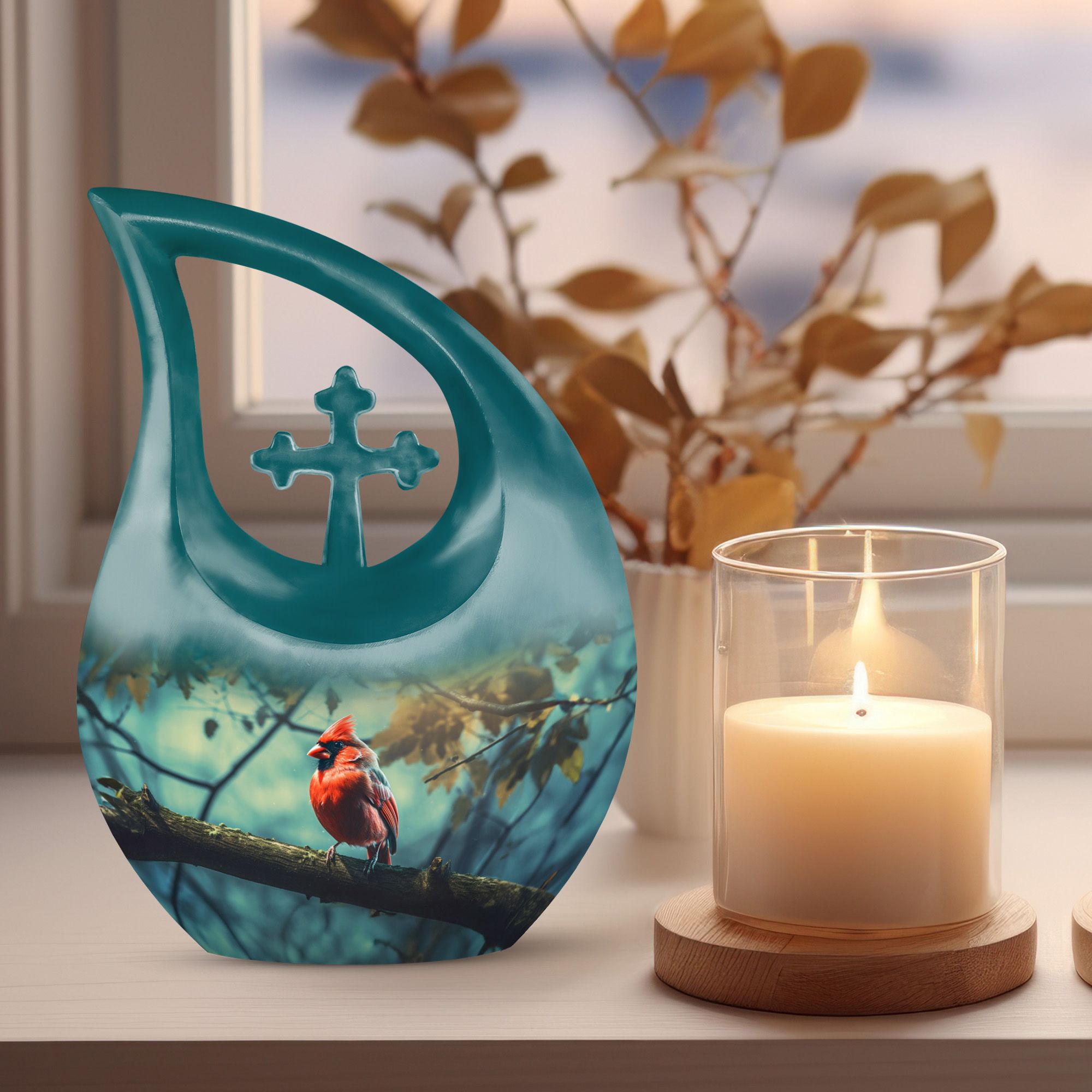 The Red Cardinal Bird Urn for Men & Women offers a serene and meaningful way to honor a cherished life. With its calming green finish and symbolic red cardinal artwork, this cremation urn represents hope, love, and eternal presence—bringing comfort to families seeking a large cremation urn or a unisex tribute suitable for both men and women.