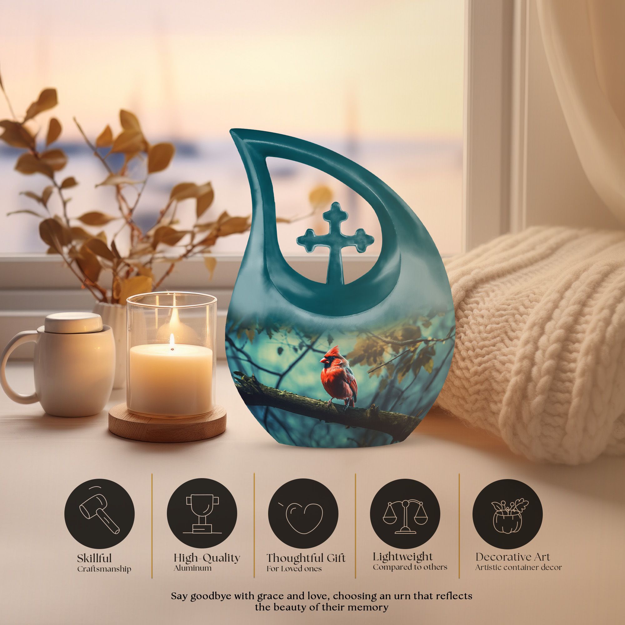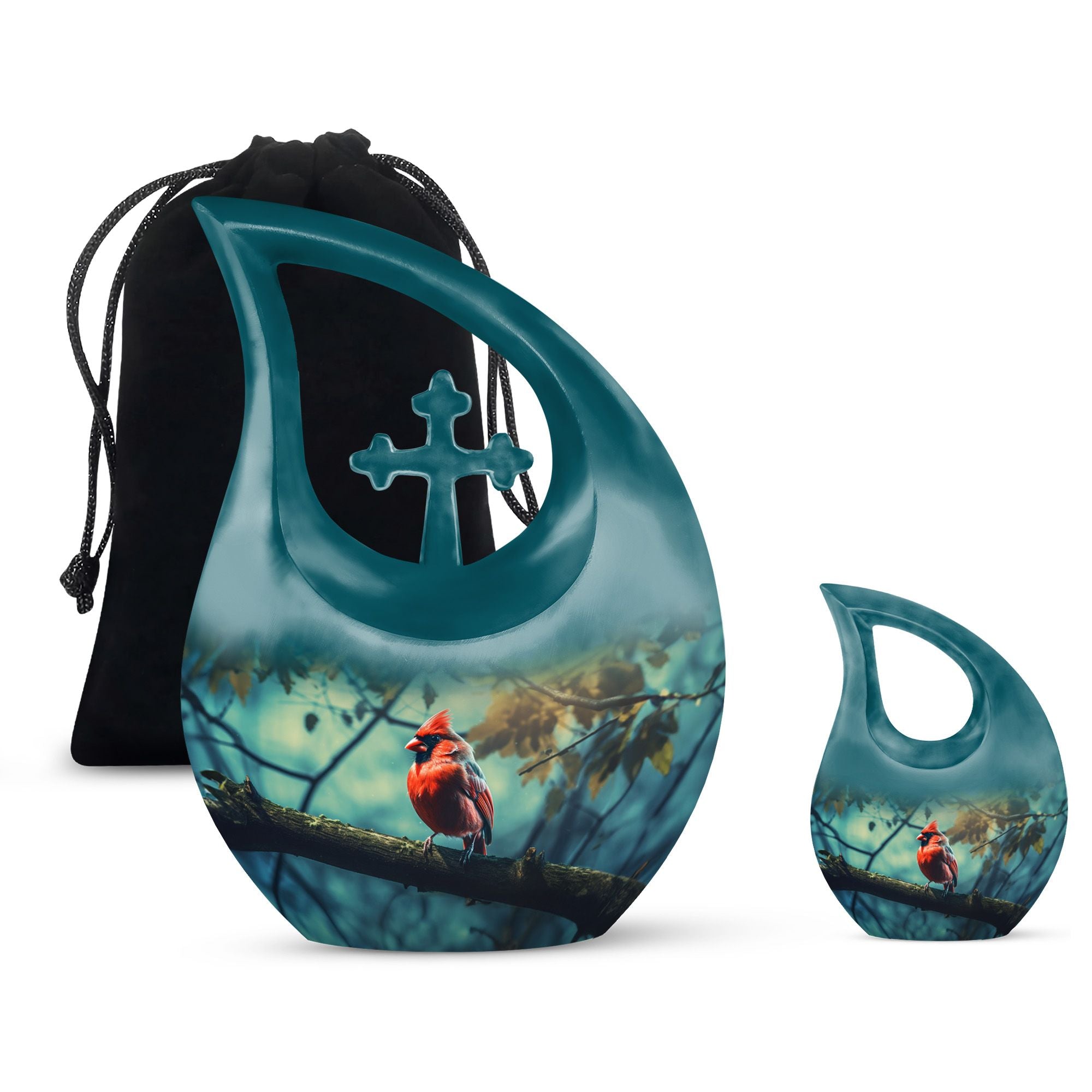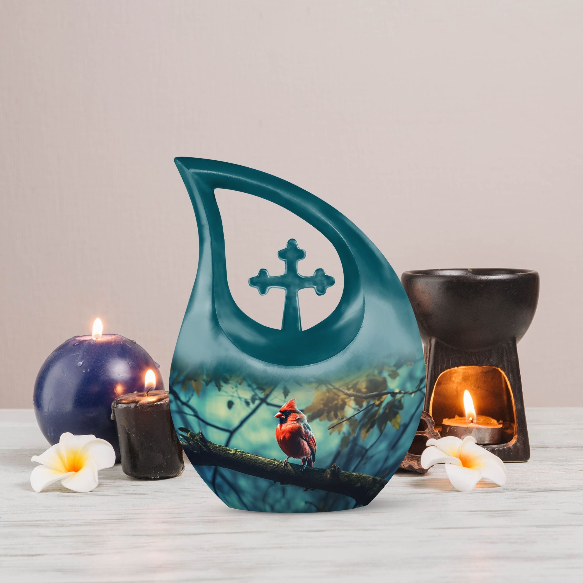 The Red Cardinal Bird Urn for Men & Women offers a serene and meaningful way to honor a cherished life. With its calming green finish and symbolic red cardinal artwork, this cremation urn represents hope, love, and eternal presence—bringing comfort to families seeking a large cremation urn or a unisex tribute suitable for both men and women.