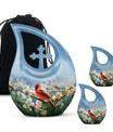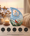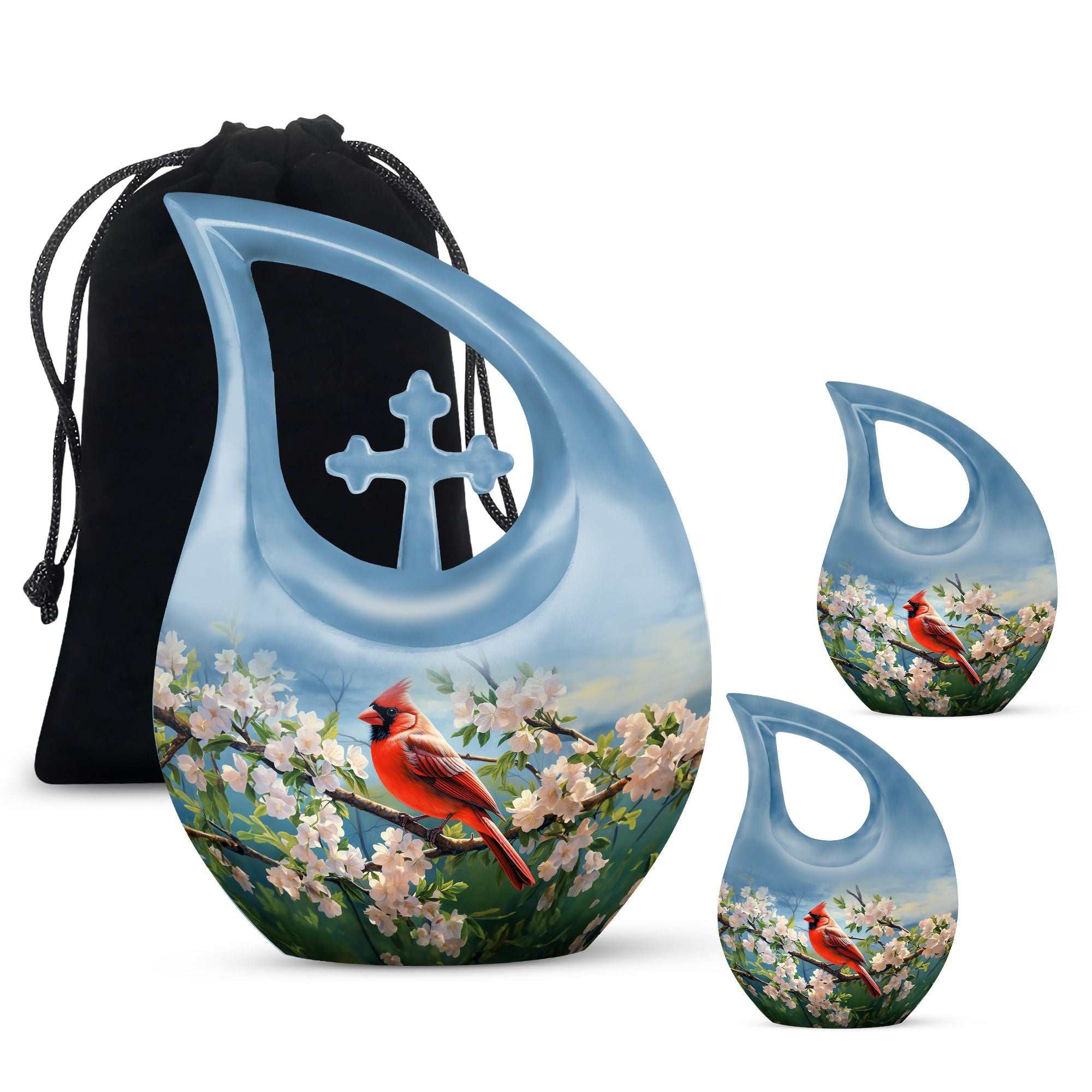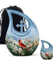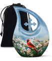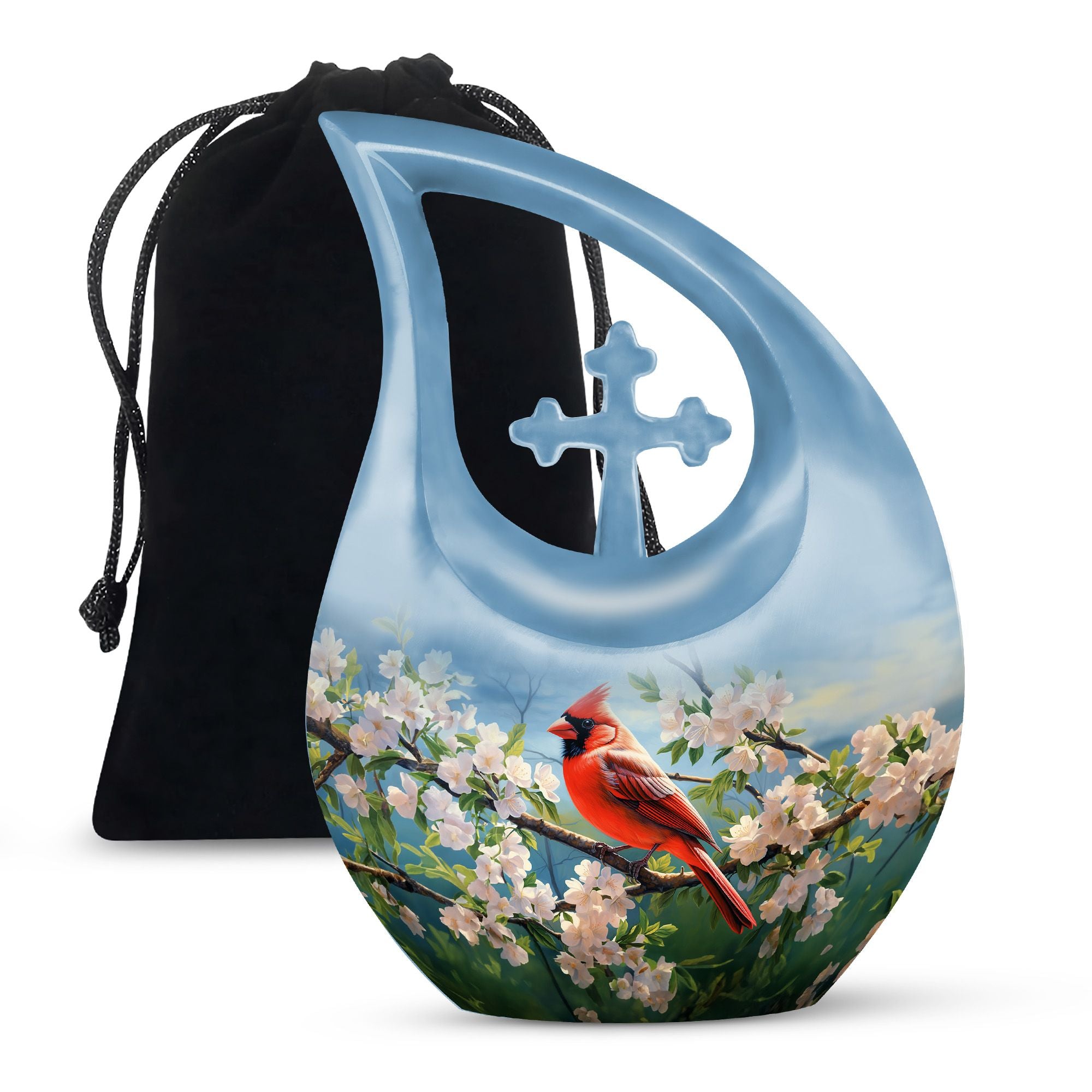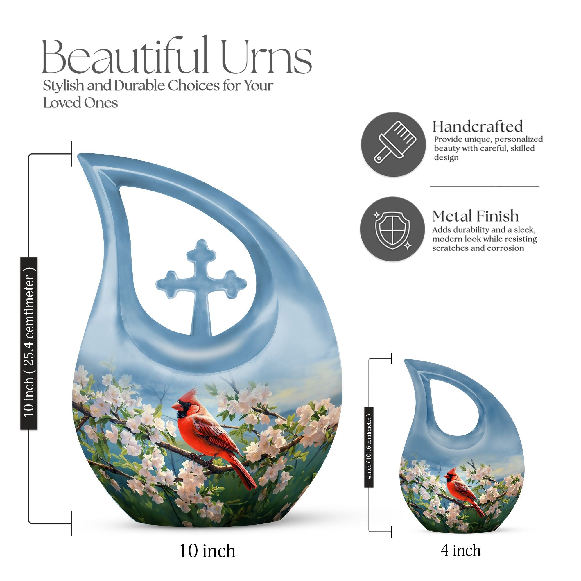 Meticulously crafted from premium aluminum, this urn showcases a serene red cardinal perched on a tree—an enduring symbol of love, hope, and spiritual presence. The smooth finish and thoughtful detailing create a refined look suitable for both home memorials and quiet remembrance spaces. Ideal for families seeking small urns for human ashes adult male, urns for human ashes adult female small size, or even a special urn for ashes adult male dad, it provides secure, lasting protection for your loved one’s ashes.