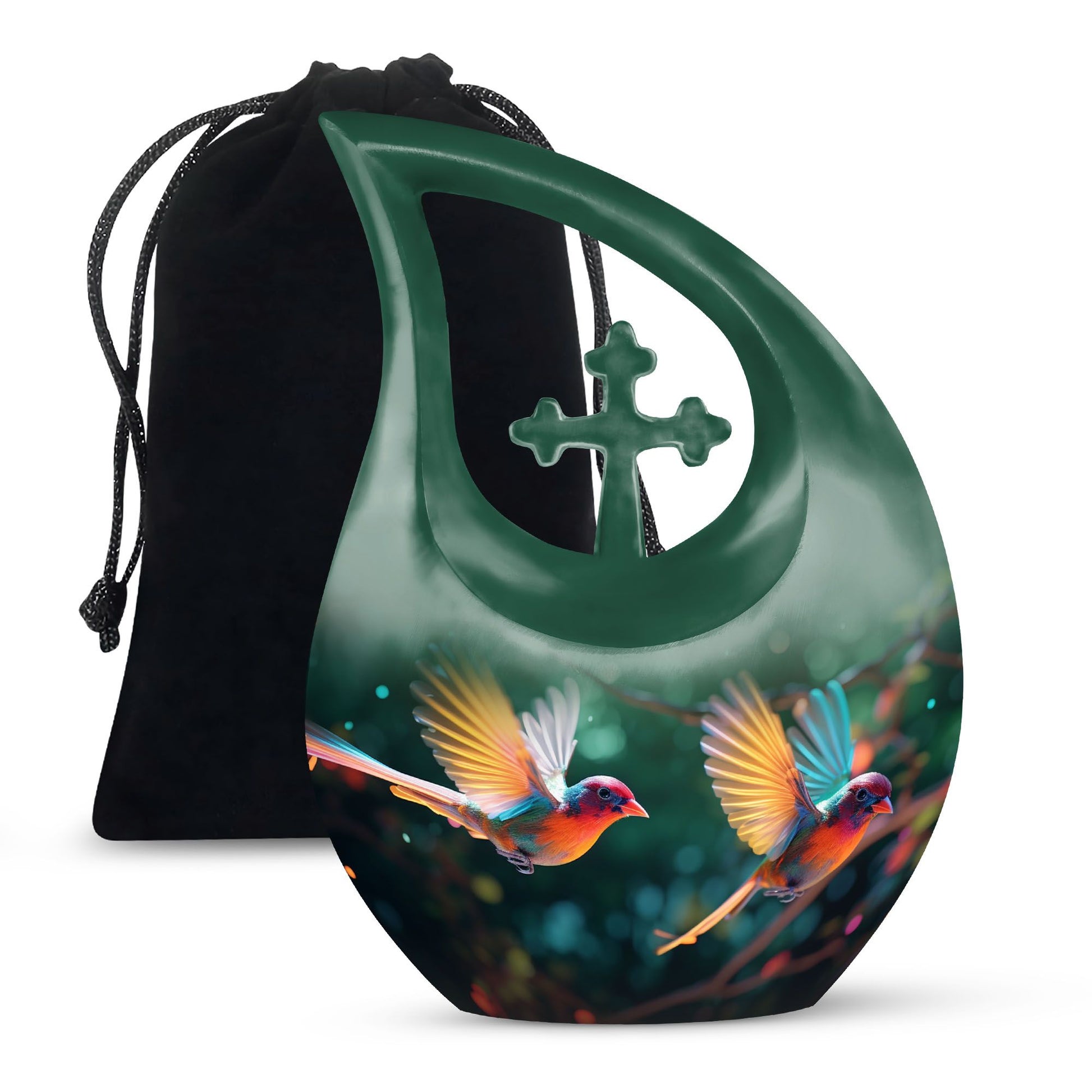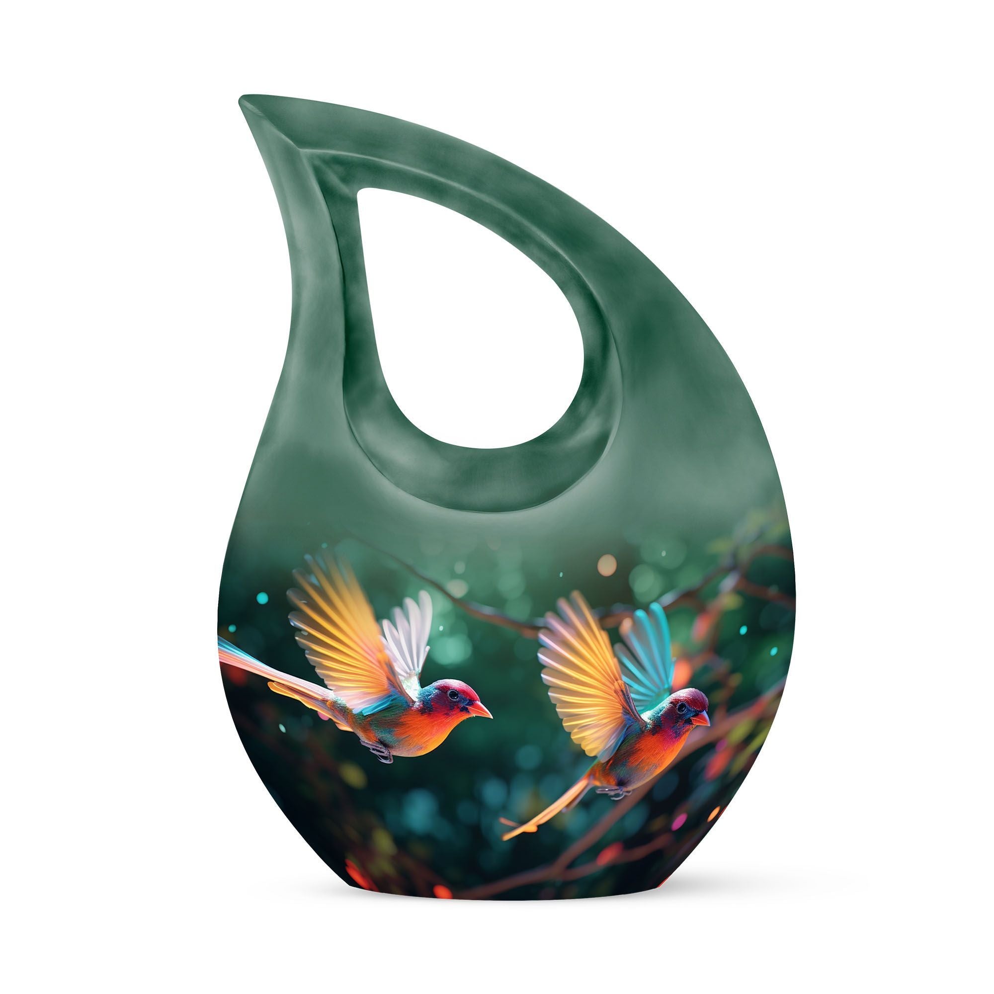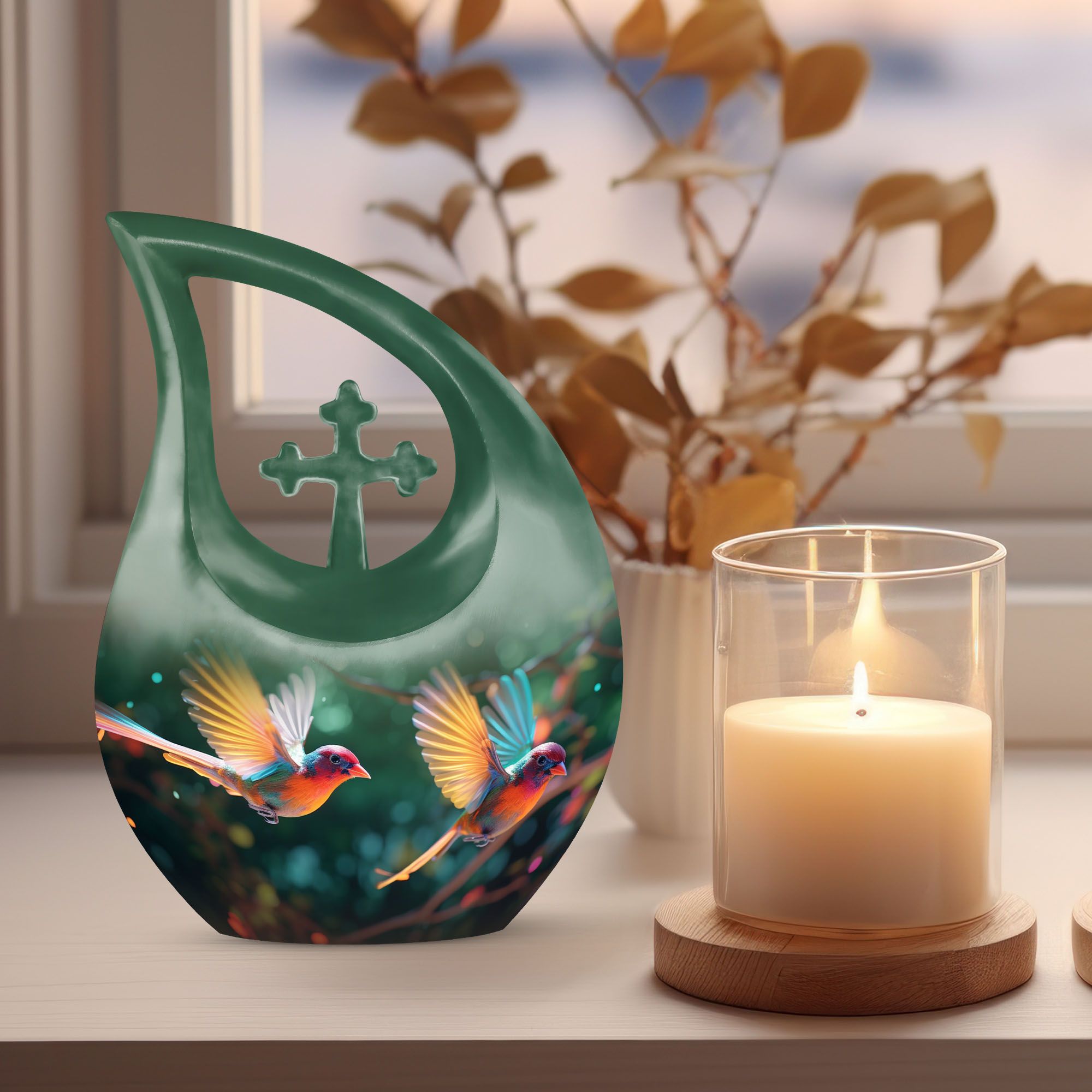 Honor the memory of your loved one with this Colorful Birds Urn for Women, a touching symbol of peace, love, and freedom. Designed for those who brought joy and color to life, this urn offers a heartfelt way to cherish their spirit. Ideal for families seeking cremation urns for women that express beauty and individuality, it serves as a graceful tribute to everlasting memories.