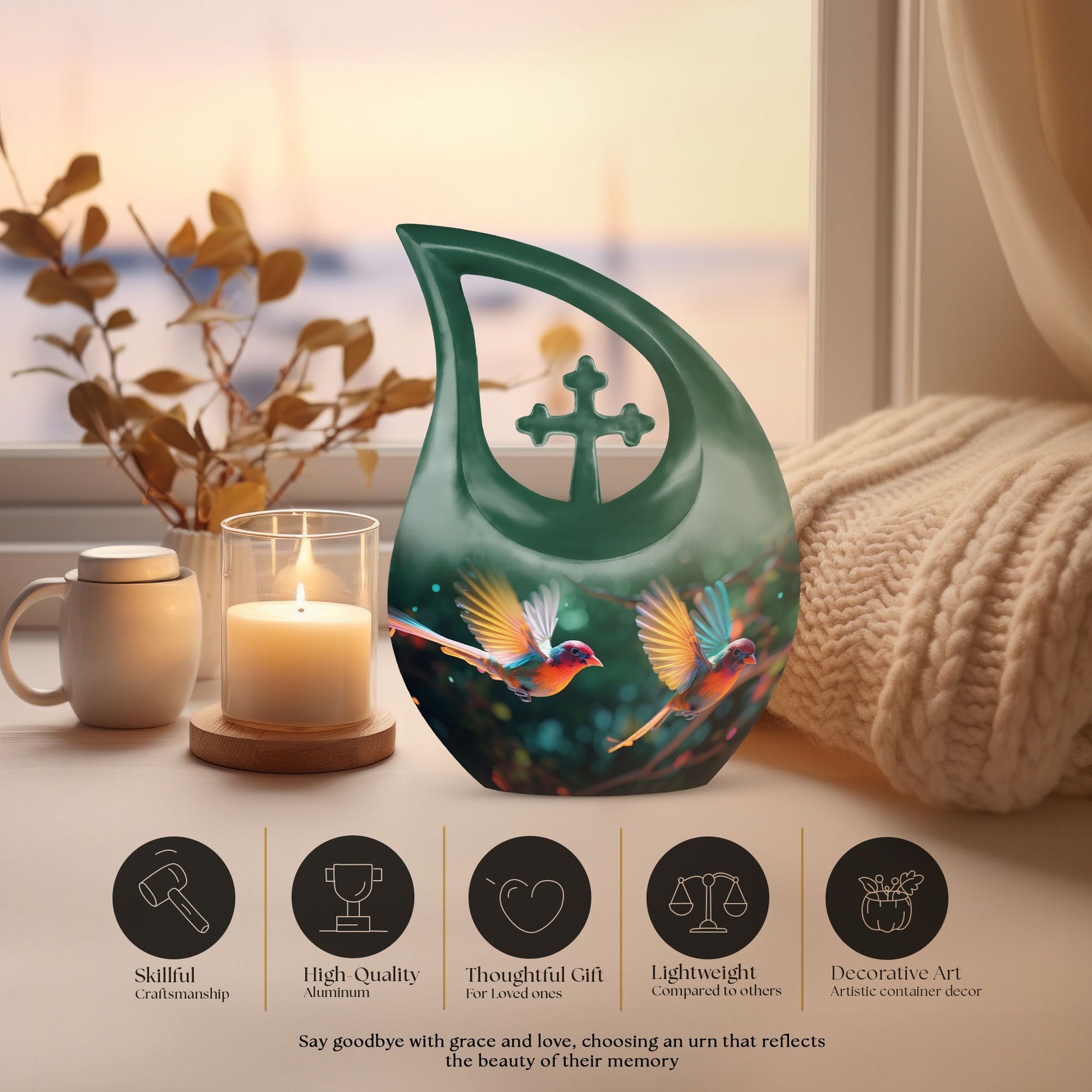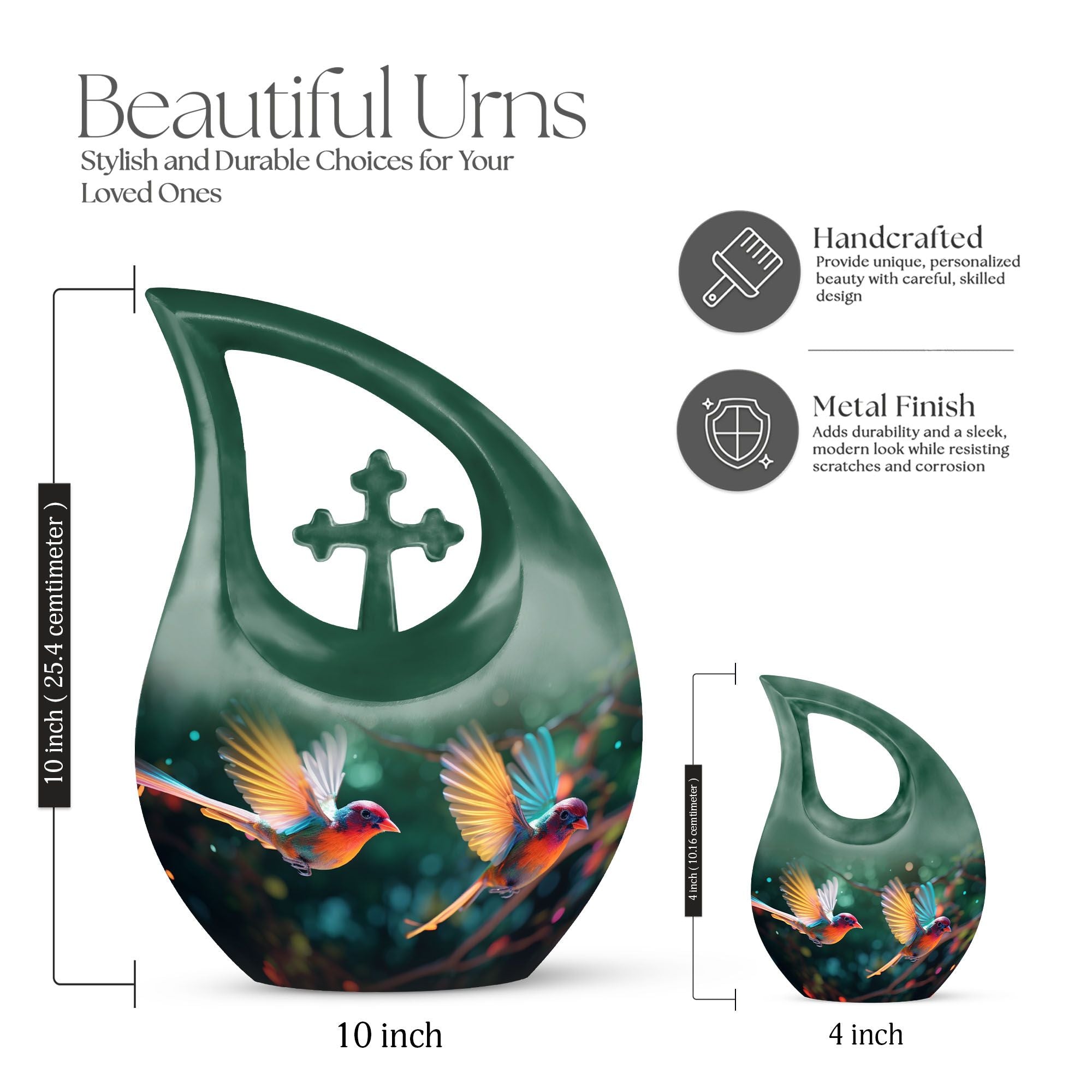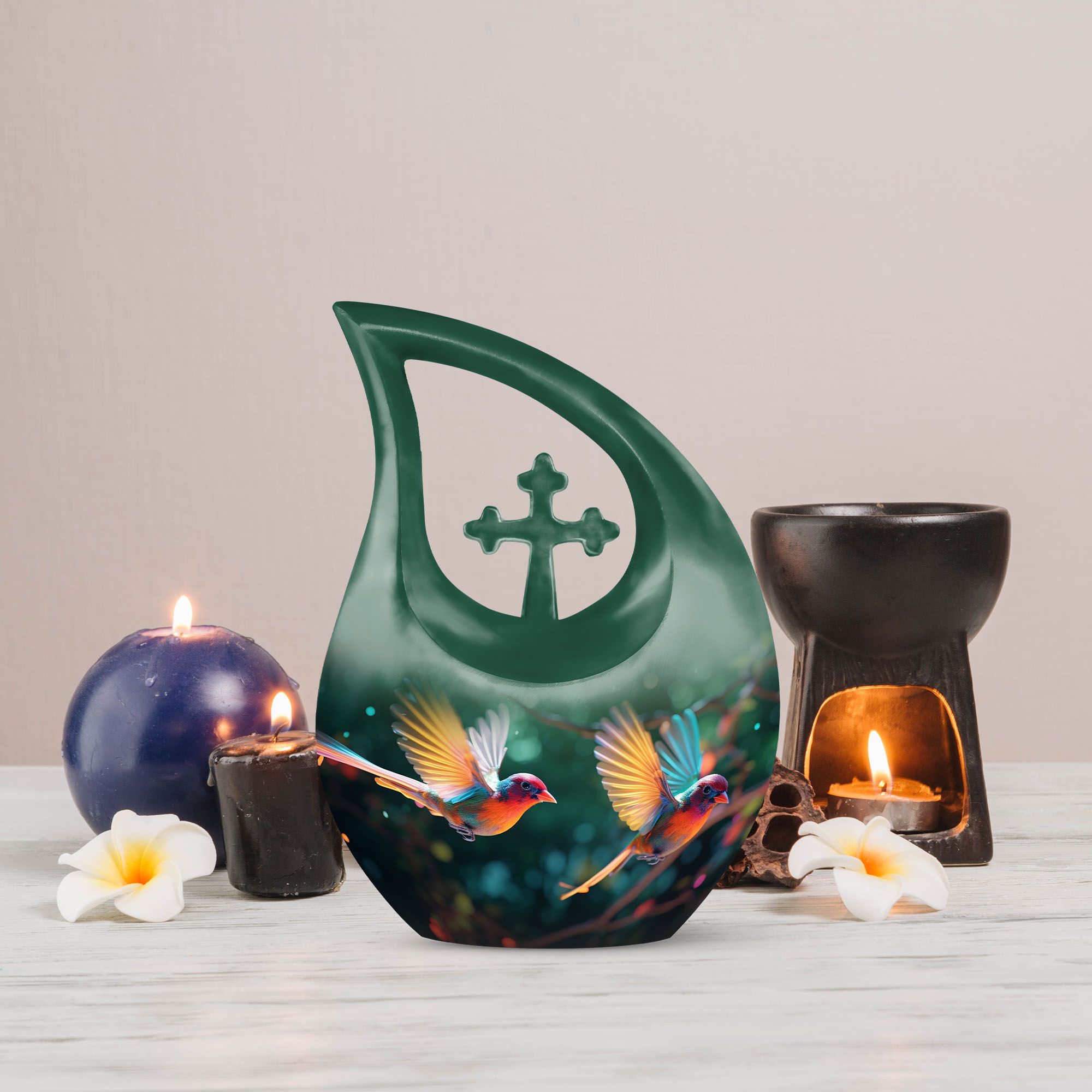 Honor the memory of your loved one with this Colorful Birds Urn for Women, a touching symbol of peace, love, and freedom. Designed for those who brought joy and color to life, this urn offers a heartfelt way to cherish their spirit. Ideal for families seeking cremation urns for women that express beauty and individuality, it serves as a graceful tribute to everlasting memories.