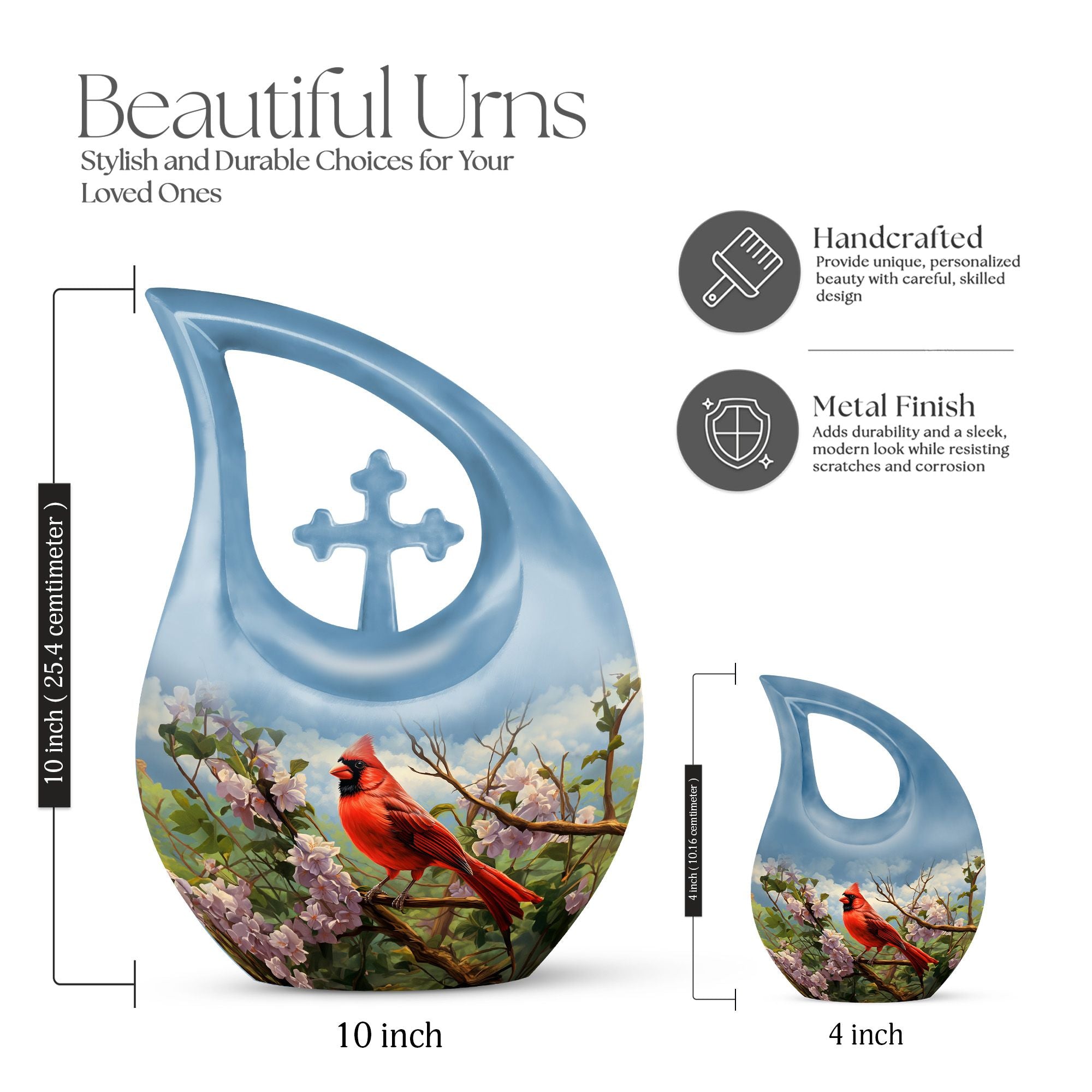 Crafted with care and made to last, this urn combines elegance and durability. The vibrant red cardinal artwork stands out beautifully, symbolizing hope and eternal presence. Its high-quality aluminum construction ensures strength, while the secure screw-top lid keeps the contents protected. Suitable as an urn for human ashes adult male or as an urn for ashes adult male small keepsake, this piece is both functional and visually meaningful—ideal for display, burial, or remembrance. It also serves families looking for urns for human ashes adult male burial or urns for adult male ashes with refined craftsmanship.