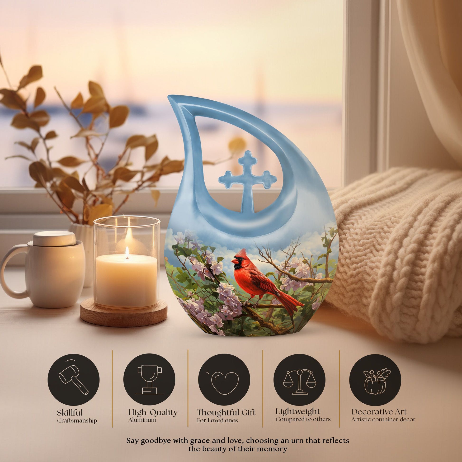 A red cardinal is often believed to be a sign that a loved one is near, making this urn a meaningful piece of remembrance. Thoughtfully created for those searching for urns for human ashes adult male, it brings emotional comfort while honoring a life lived with love and strength.