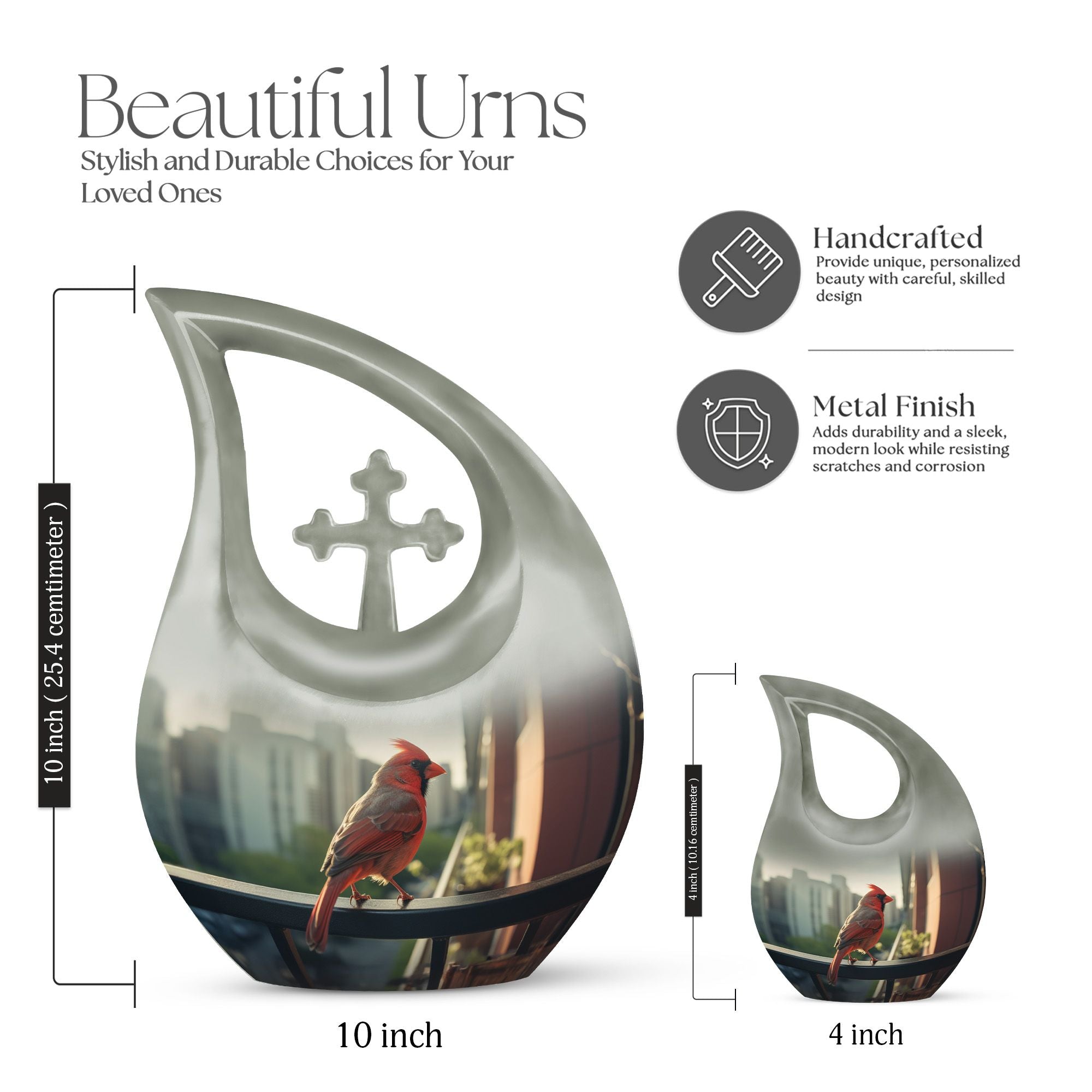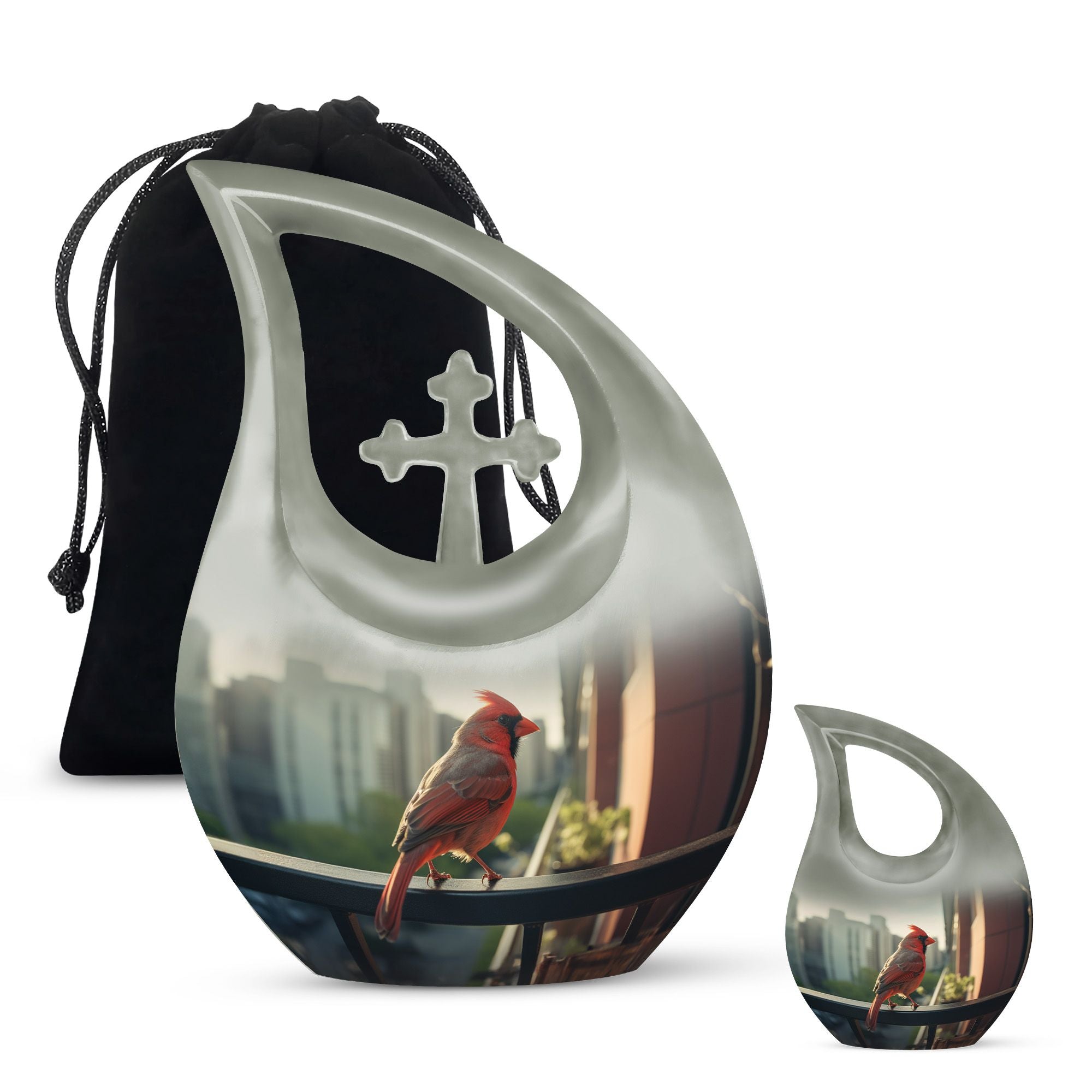 Beautifully crafted from durable aluminum, this urn features a serene cardinal design that stands as a symbol of guidance and spiritual connection. Whether you need a classic funeral urn, adult funeral urn, or funeral urns for human ashes small for companion displays, its craftsmanship ensures long-lasting dignity. The secure screw-top lid provides peace of mind, while the polished finish enhances its elegance, making it suitable for home display, burial, or memorial services.