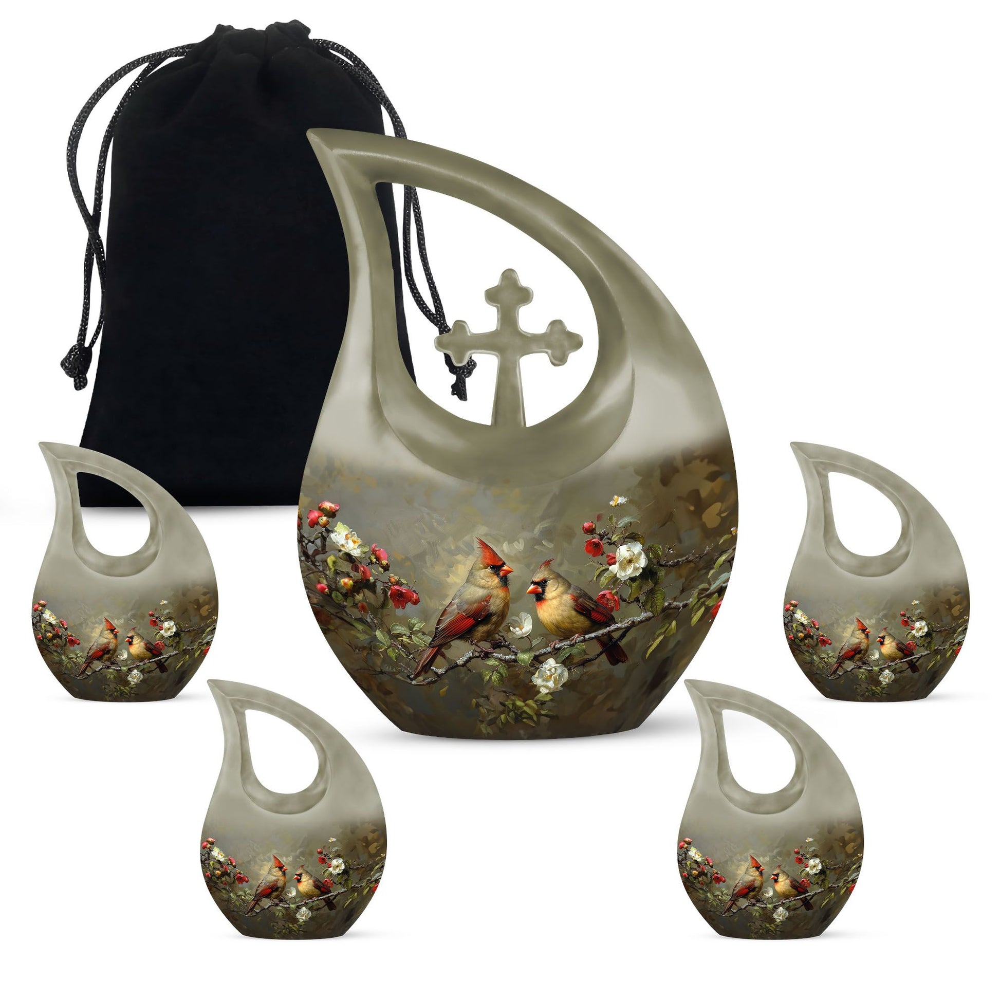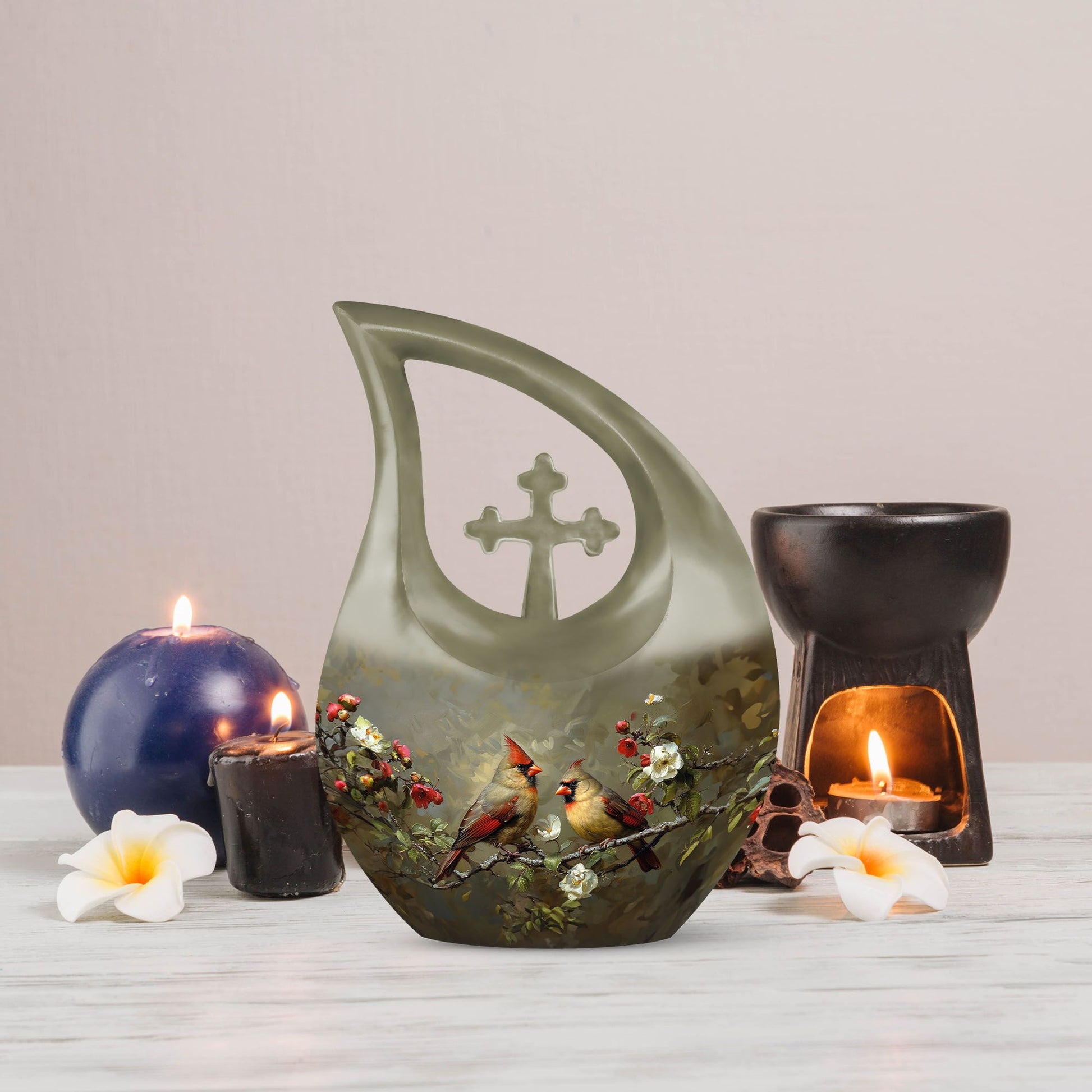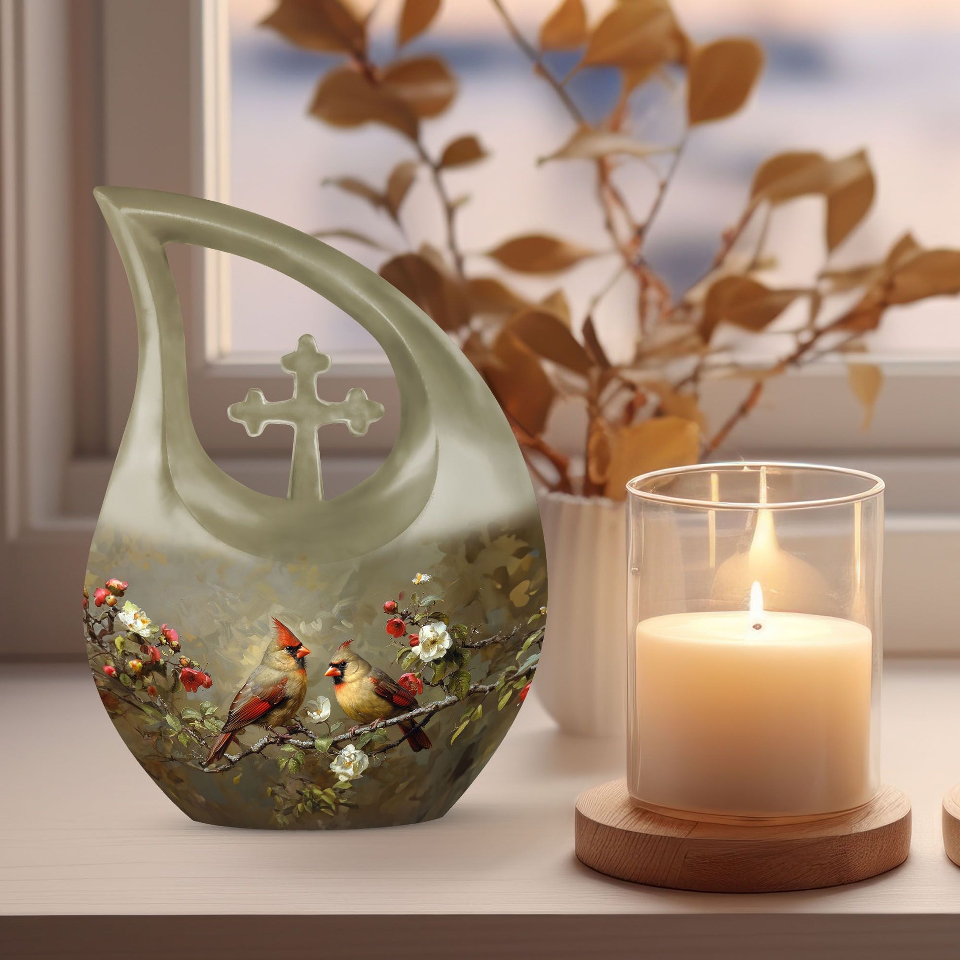 Crafted from durable aluminum, this 10 inch urn features a beautiful red cardinal motif symbolizing guidance, hope, and spiritual presence. Its secure screw-top lid ensures reliable protection whether used as a home display or selected as one of the adult urns women, urns women human ashes, or a memorial piece that reflects both strength and tenderness. Its artistry and craftsmanship also make it ideal for families seeking ashes keepsake women or simply wishing to honor a loved one with one of the most beautiful urns women.