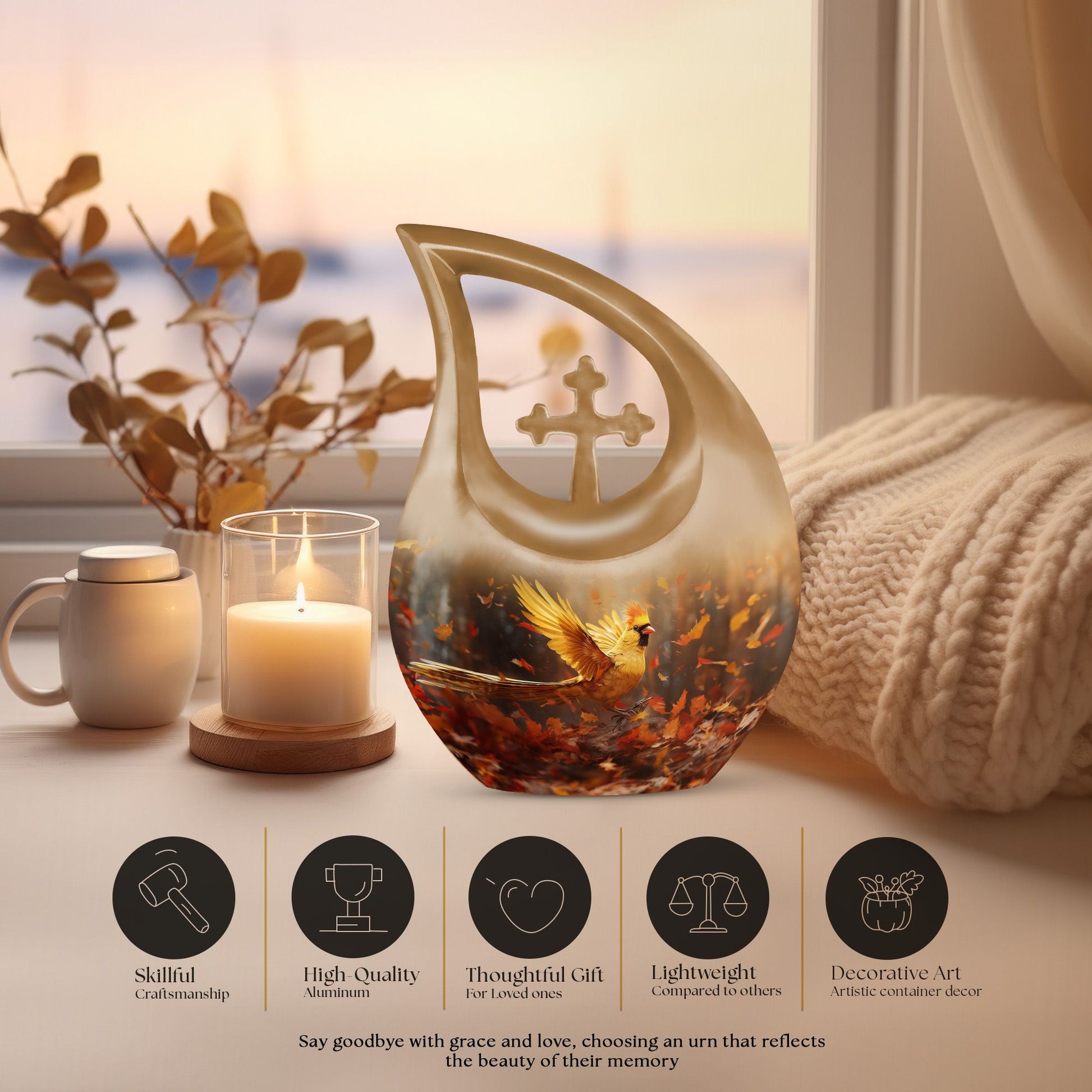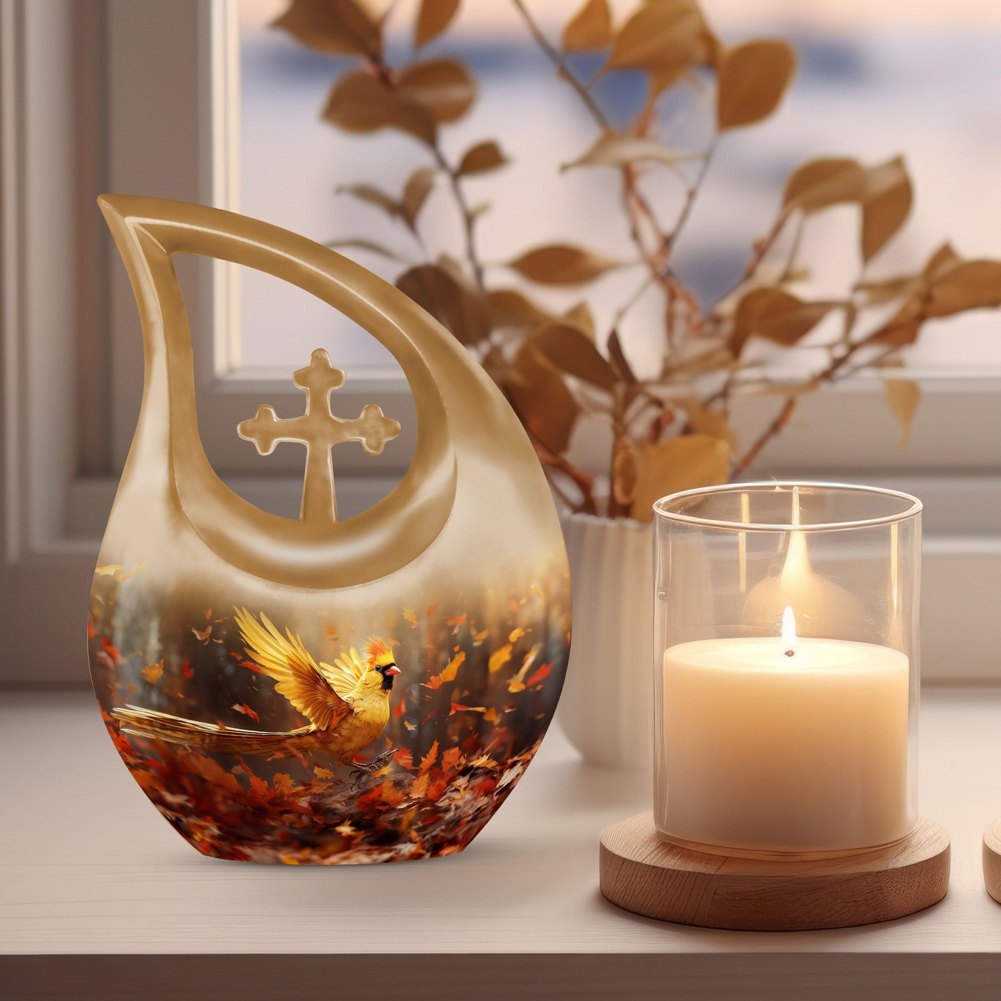 The cardinal, a timeless symbol of love and spiritual presence, brings emotional comfort, making this a beautiful large human urn choice for honoring a parent or cherished companion. Its design serves as a lasting reminder that love remains close, offering peace with every glance at this exquisite urn large adult.
