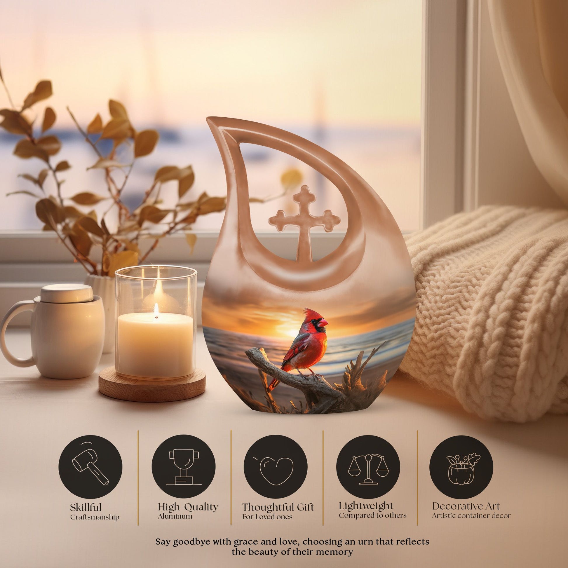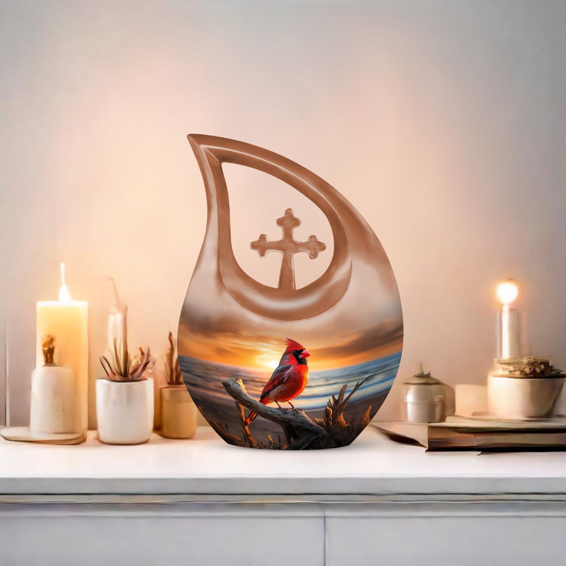 Crafted with precision and care, this urn for adult male and small urn for human ashes adult female features a smooth, durable aluminum body adorned with a stunning red cardinal bird motif—representing hope, devotion, and eternal connection. Ideal for both men and women, these urns for ashes adult female or urns for human ashes adult male are designed for durability and beauty, offering both strength and grace in every detail. The fine craftsmanship ensures a lasting keepsake worthy of your loved one’s legacy.