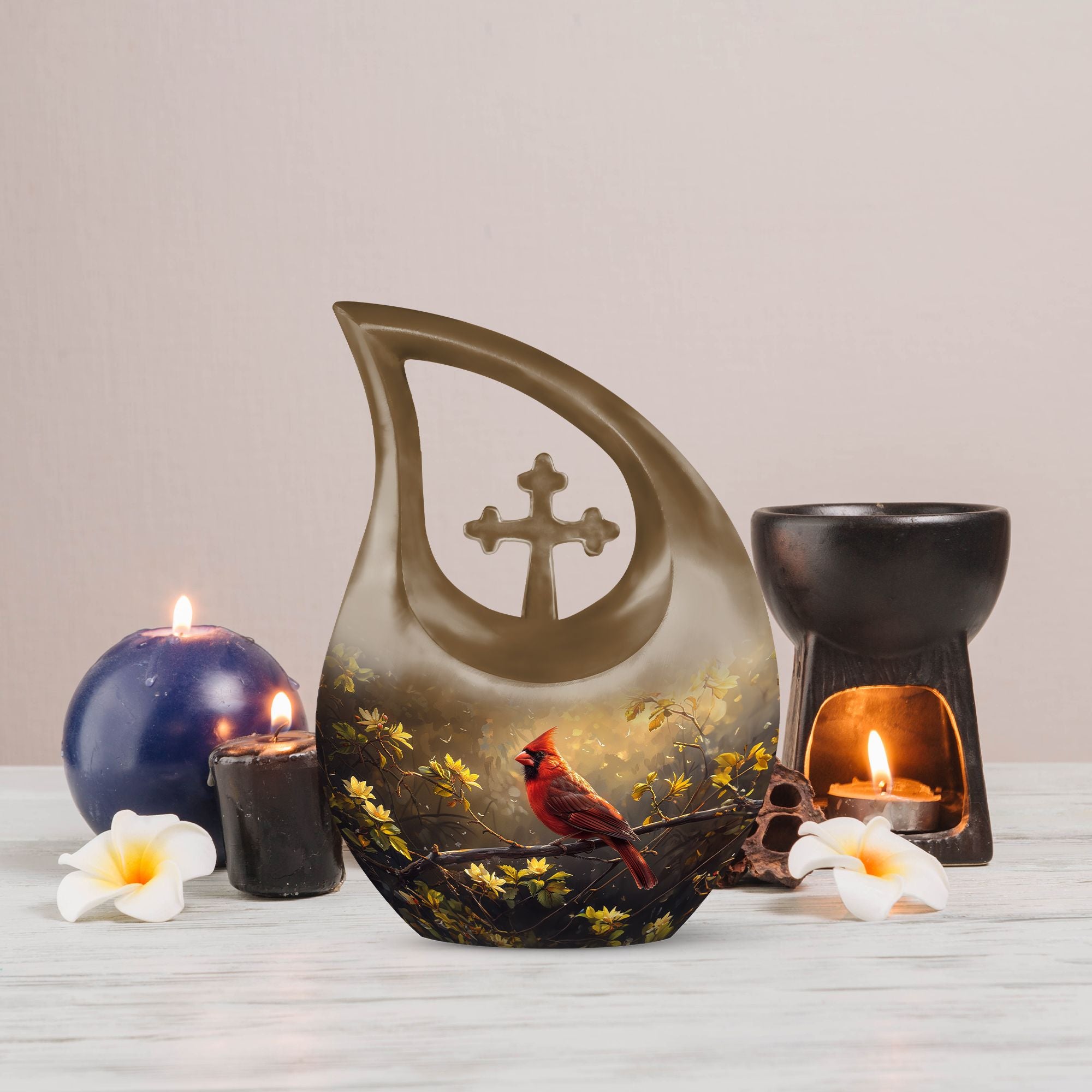 This Cardinal Cremation Urn offers a peaceful and symbolic resting place to honor a beloved mother. Thoughtfully crafted, it serves beautifully as one of the most meaningful urns for ashes adult female, while still offering the dignity and strength needed when selecting an urn for human ashes adult male for families wanting a matching or unifying design.