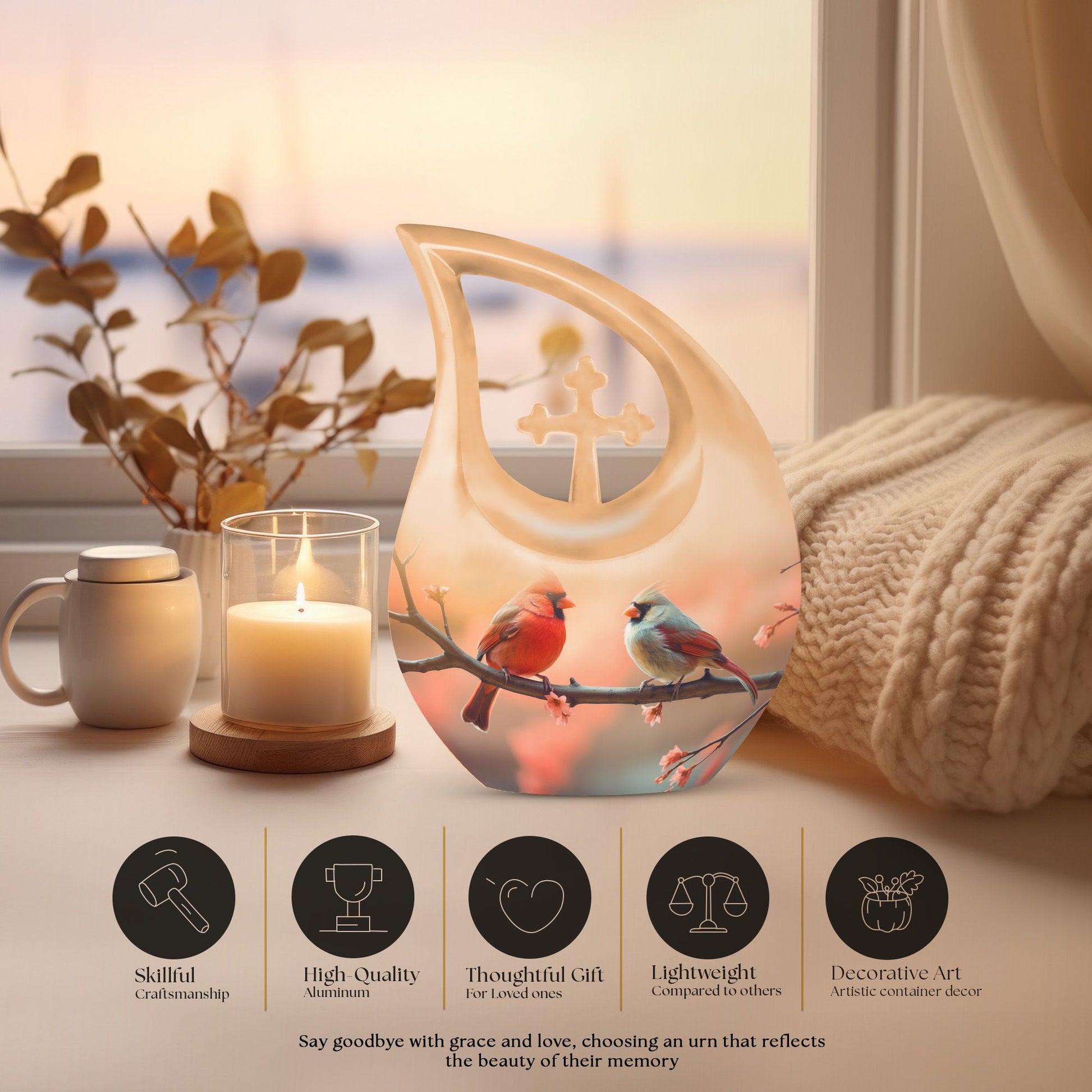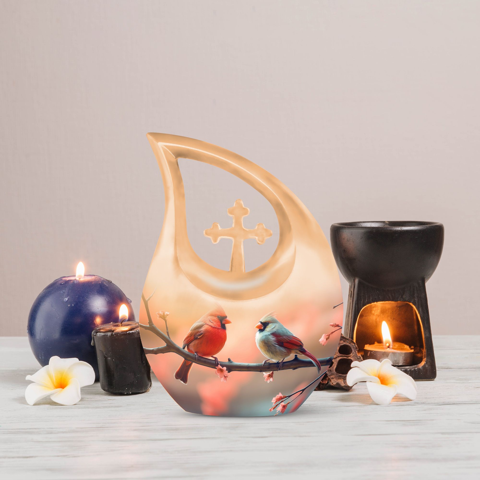 A symbol of hope and spiritual presence, the cardinal design brings comfort during difficult times. This large urn for human ashes serves as a touching reminder of eternal love, keeping memories close in a dignified and meaningful way.