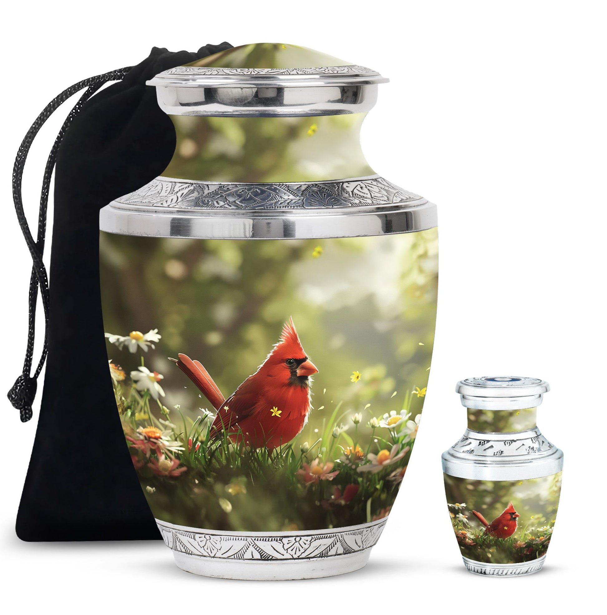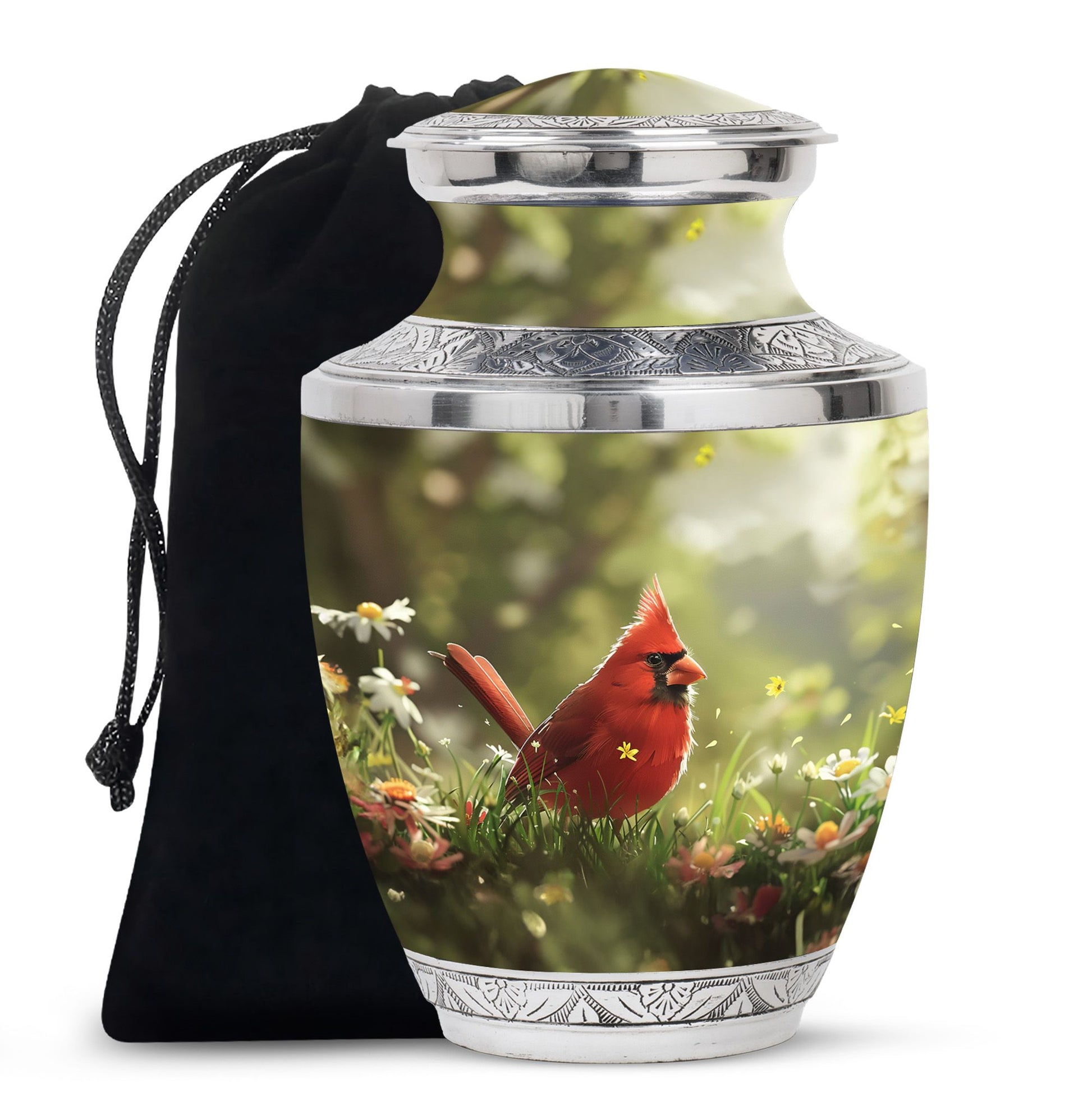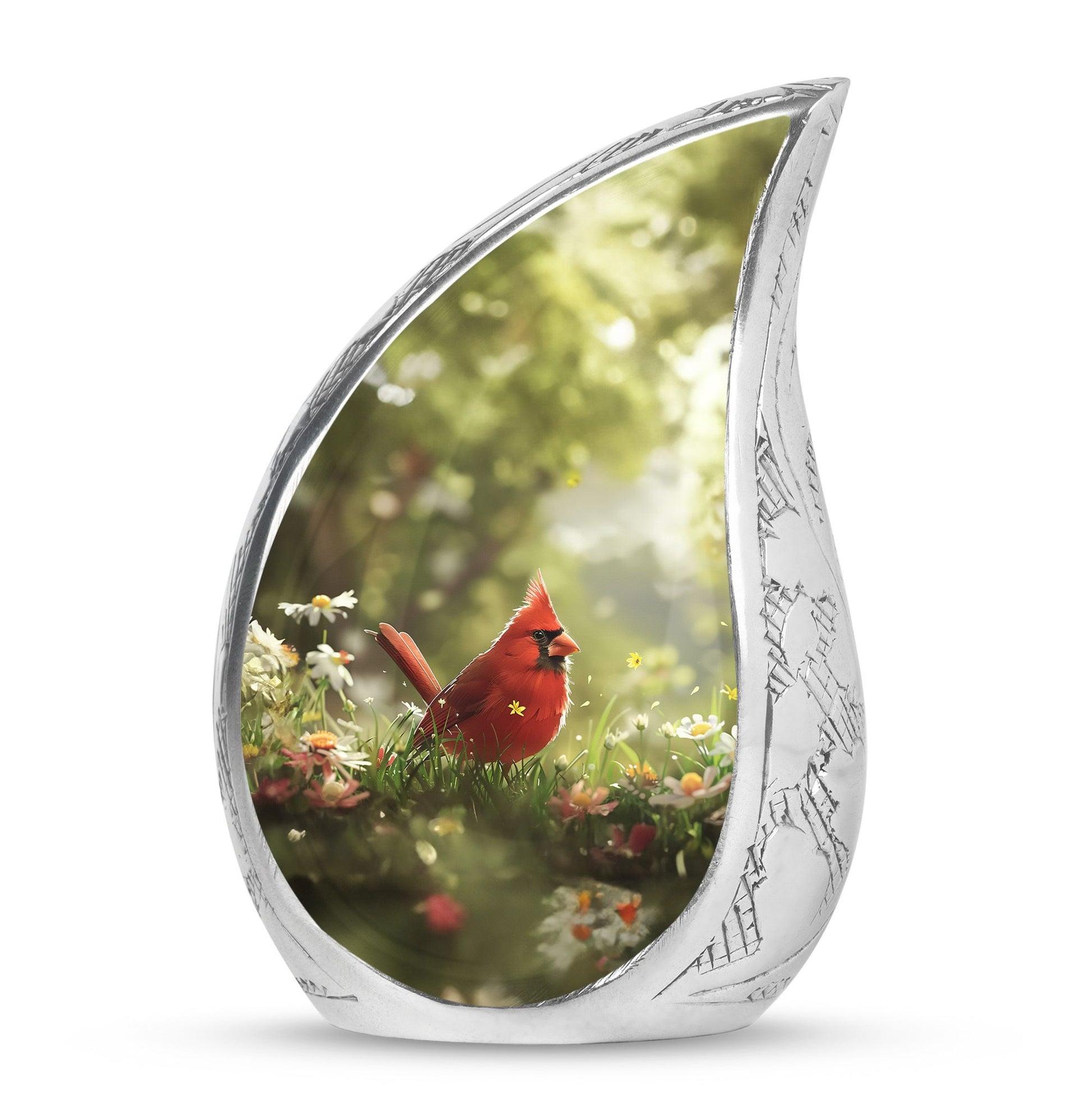 The Green Nature Cardinal Bird Urn symbolizes life, renewal, and remembrance, offering a peaceful and comforting memorial for loved ones.