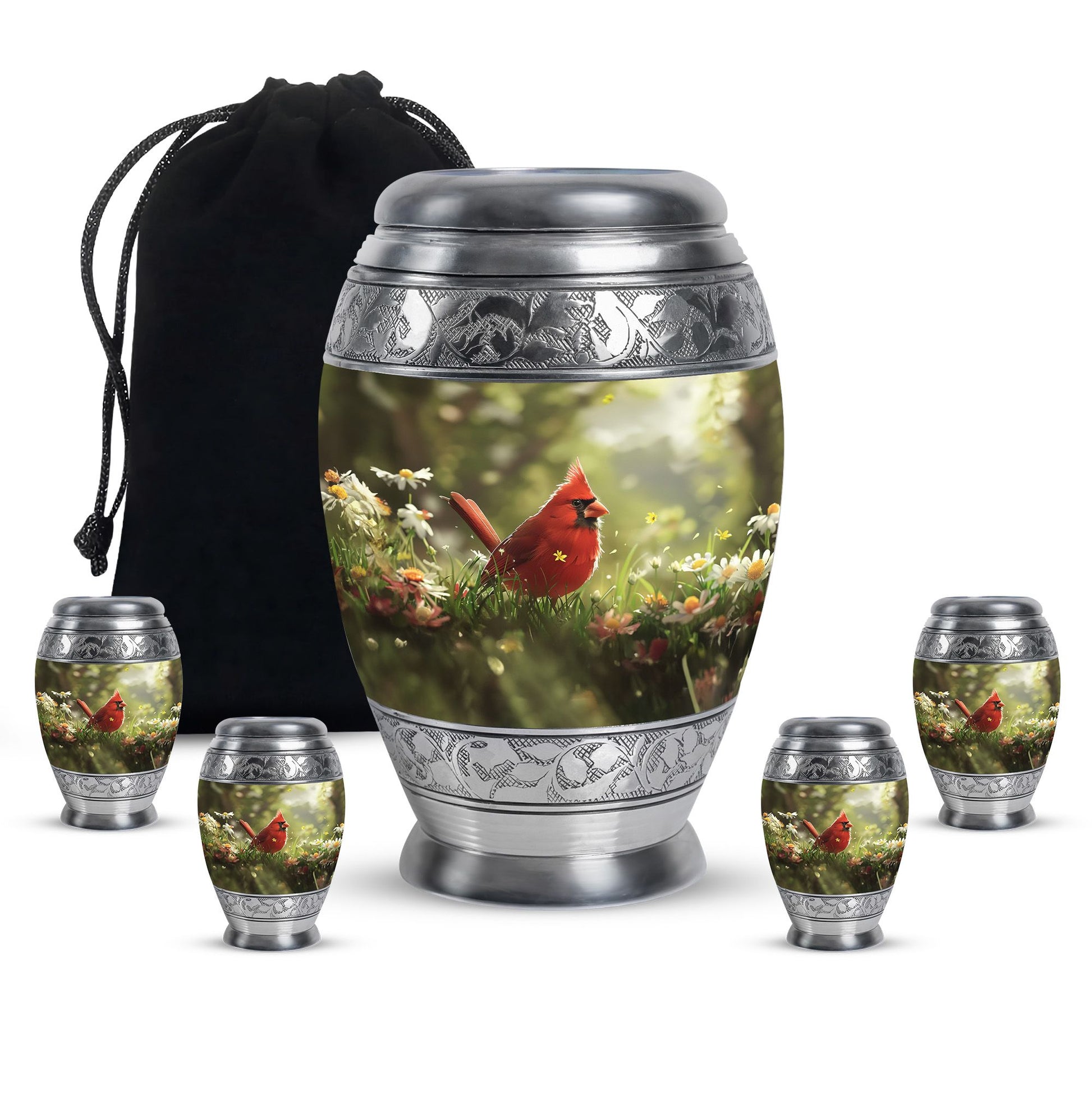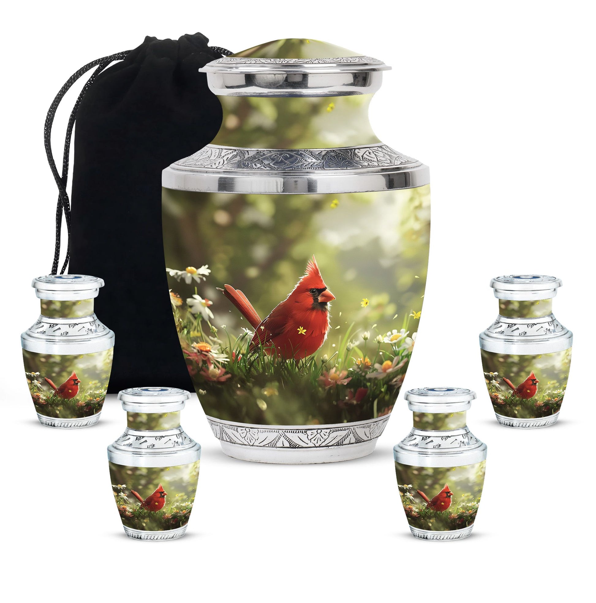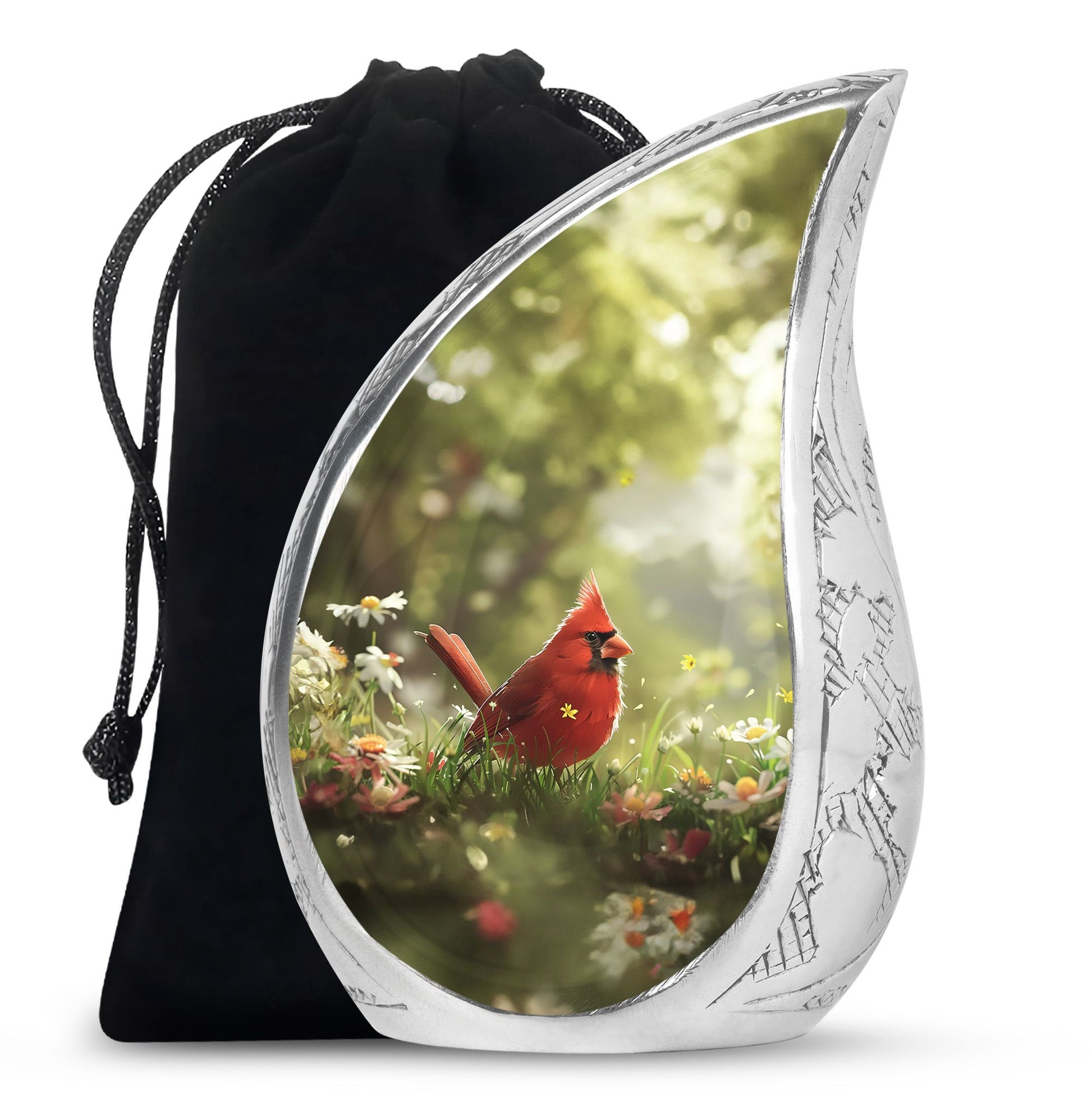 The Green Nature Cardinal Bird Urn symbolizes life, renewal, and remembrance, offering a peaceful and comforting memorial for loved ones.