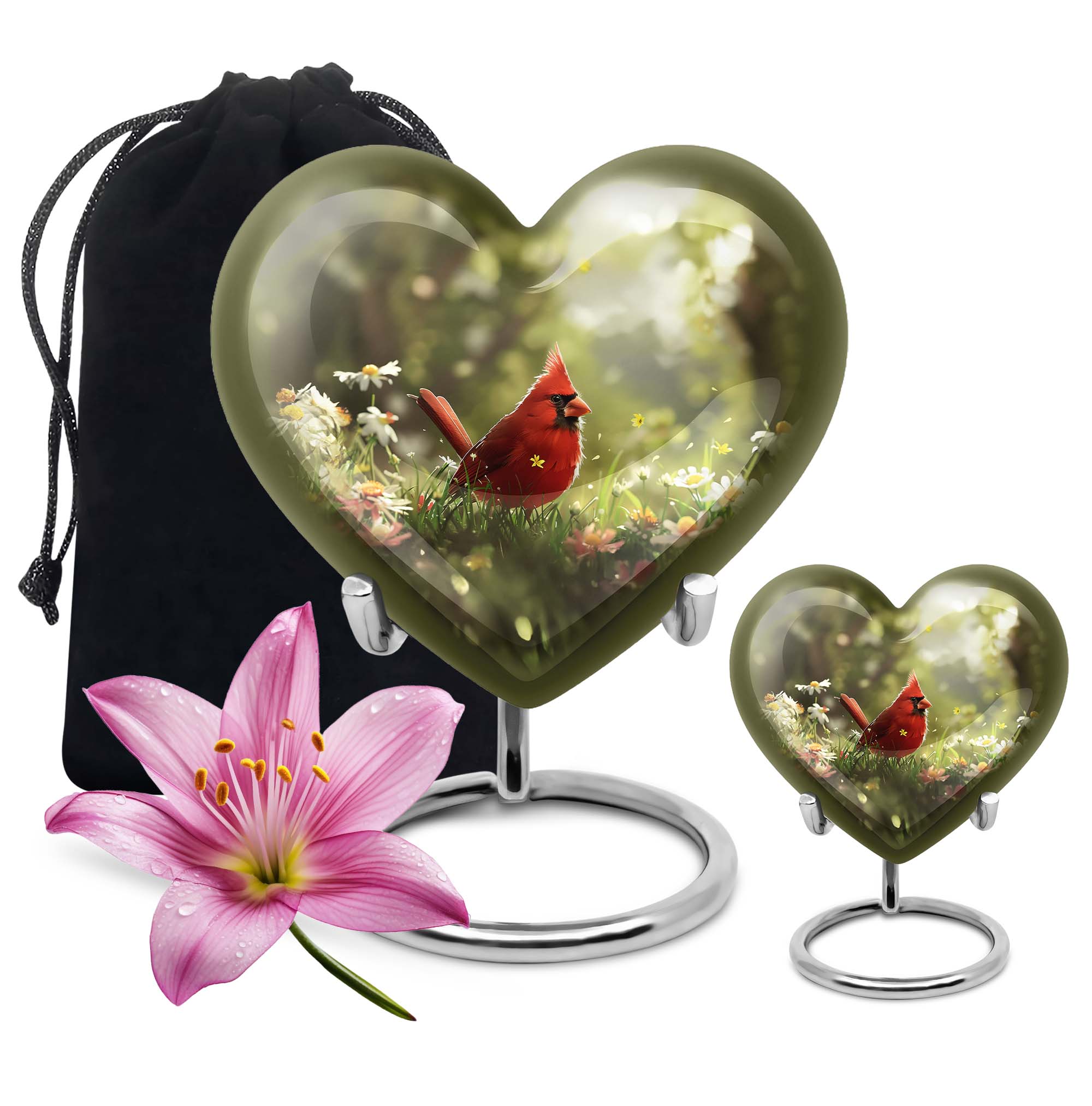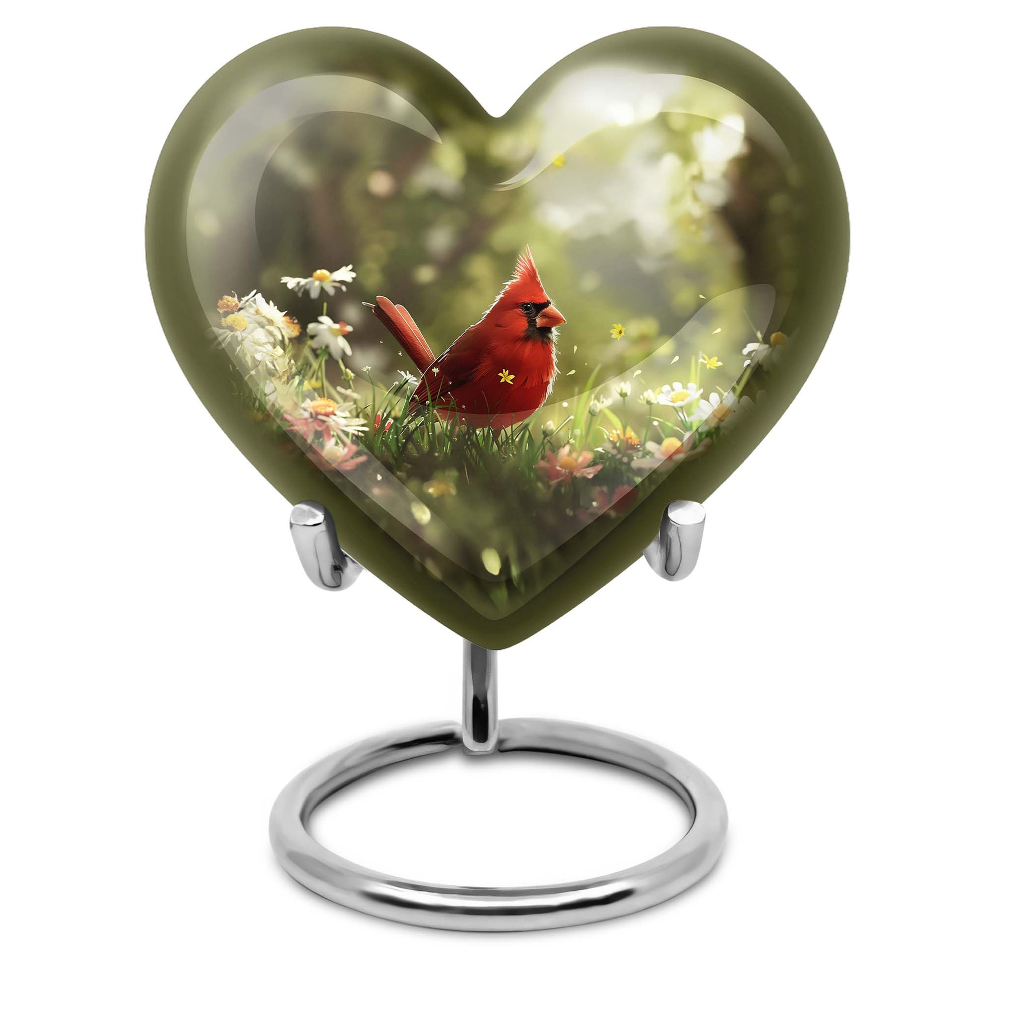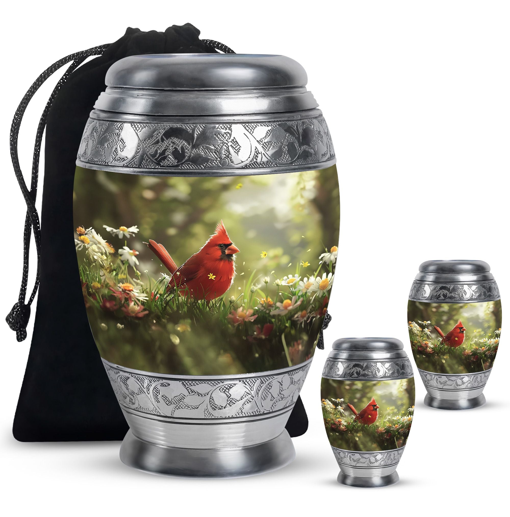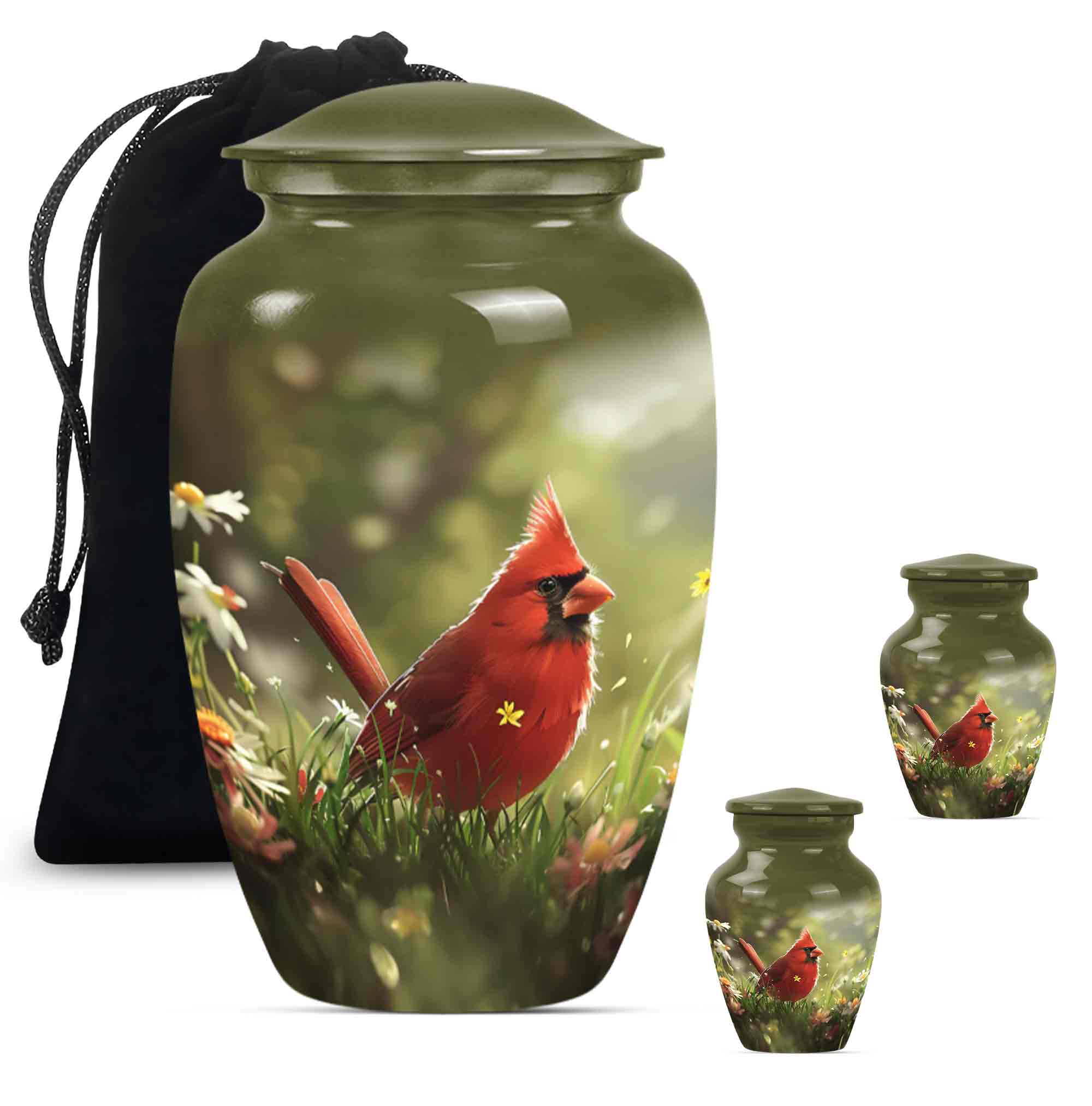 The Green Nature Cardinal Bird Urn symbolizes life, renewal, and remembrance, offering a peaceful and comforting memorial for loved ones.