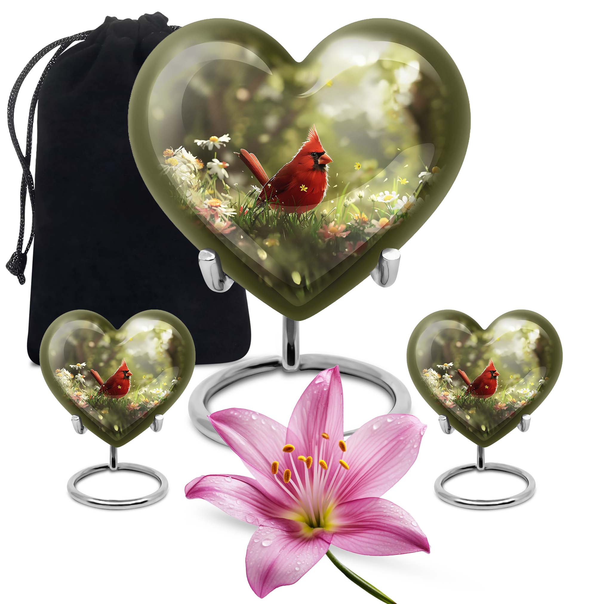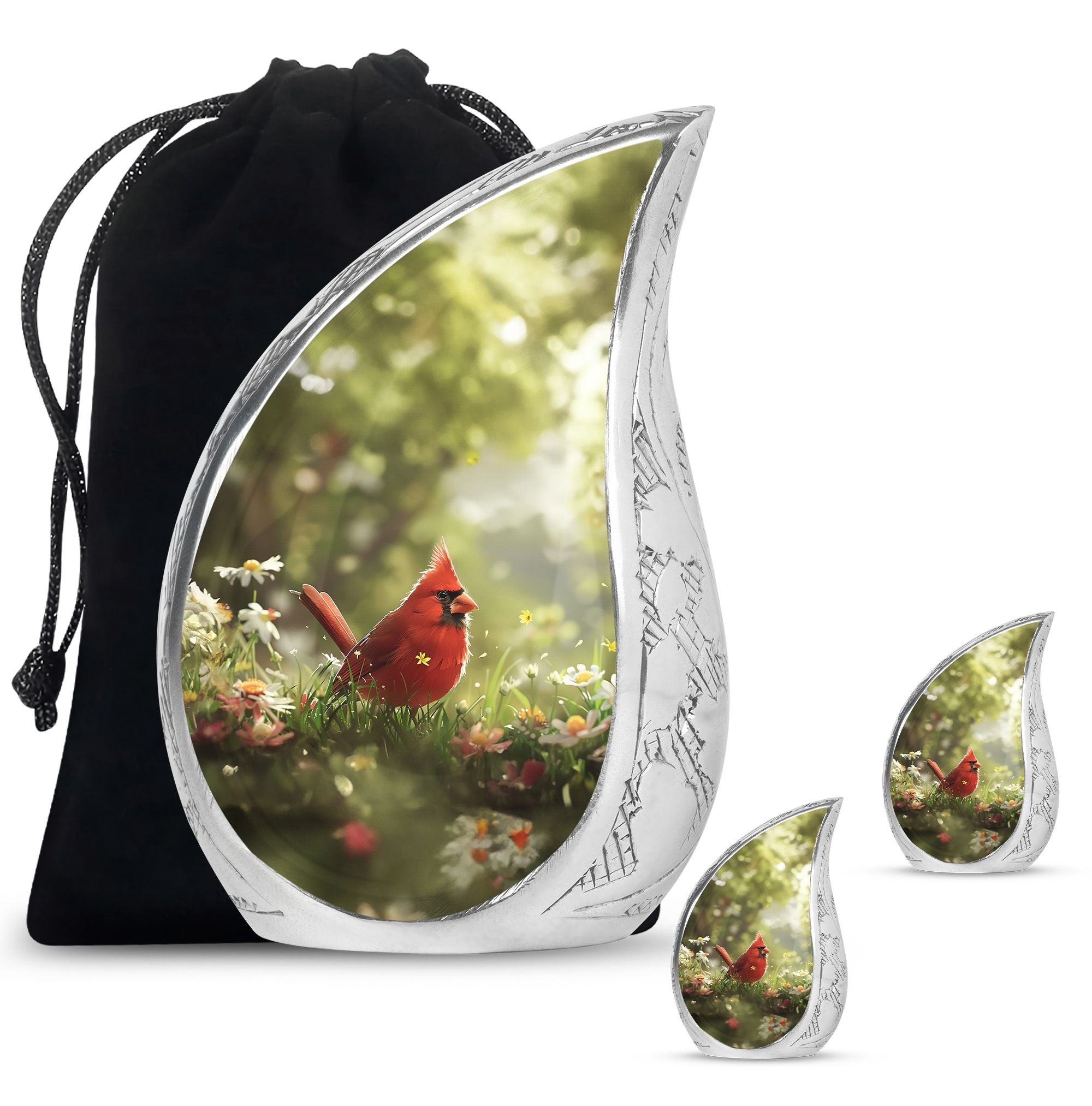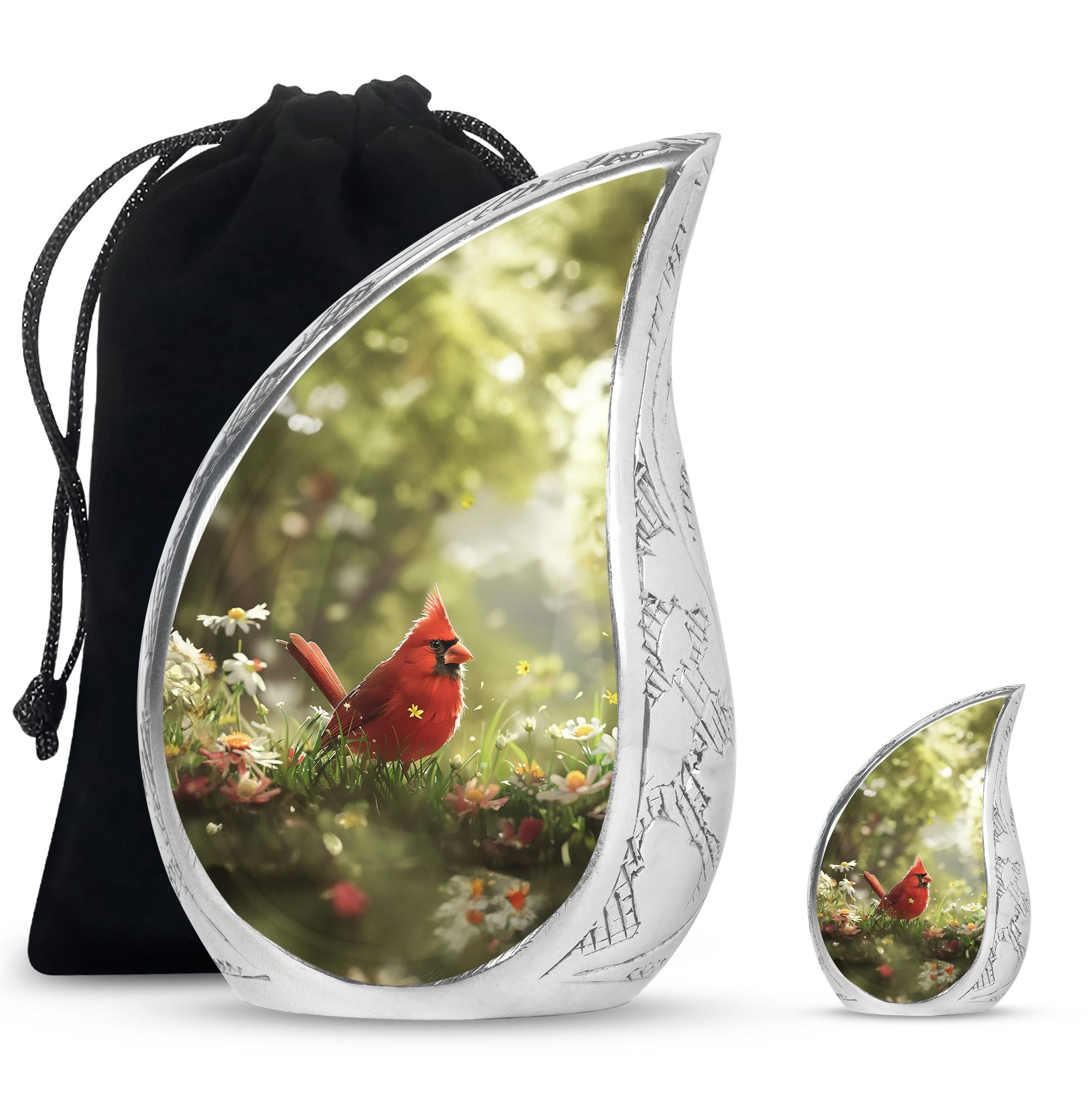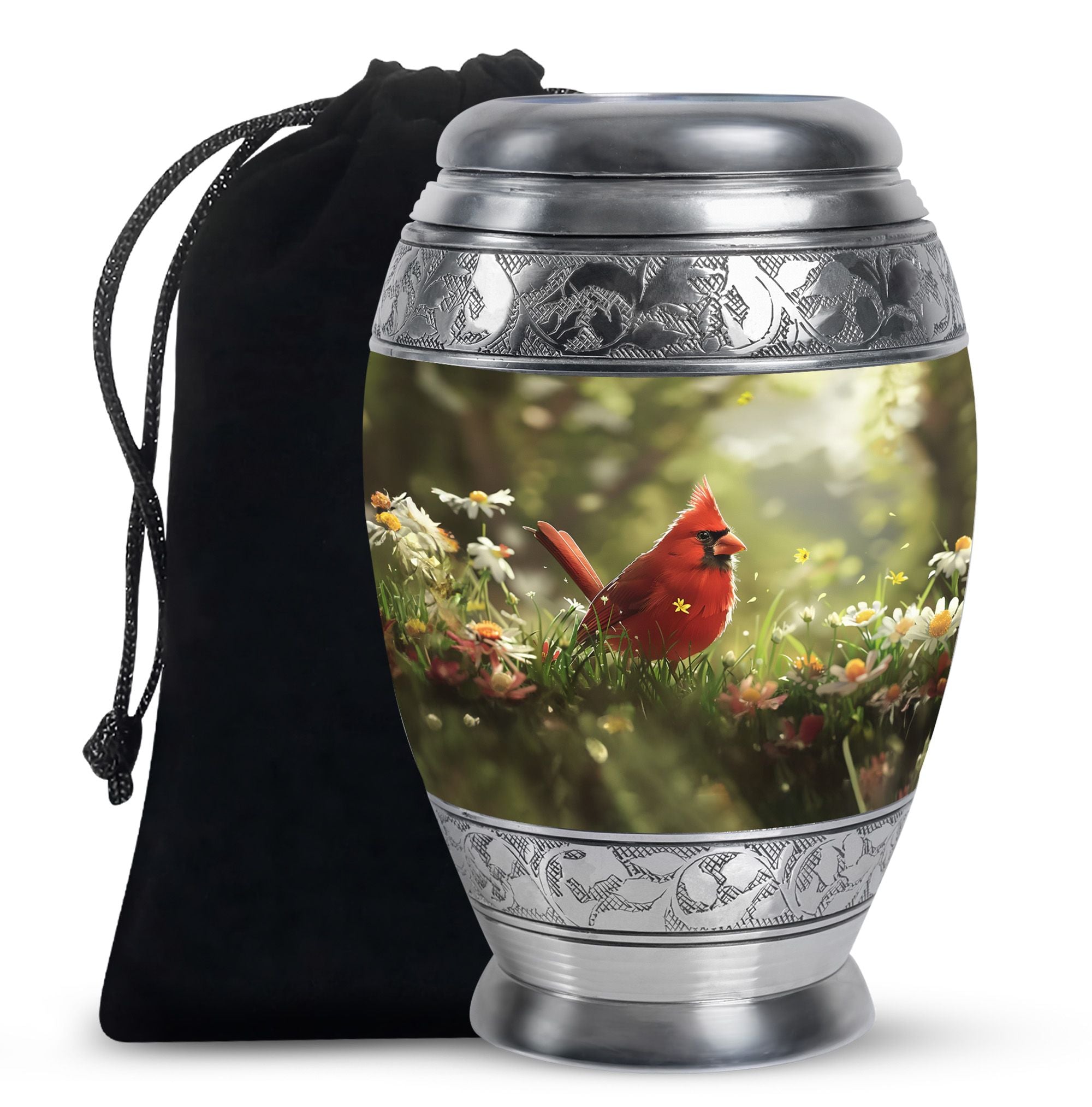 The Green Nature Cardinal Bird Urn symbolizes life, renewal, and remembrance, offering a peaceful and comforting memorial for loved ones.