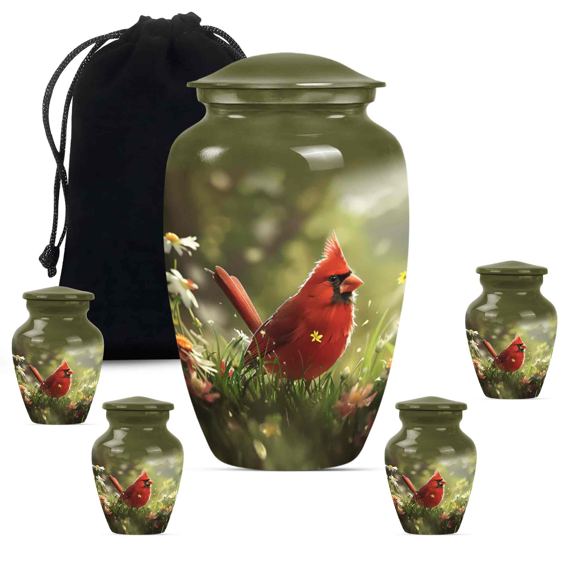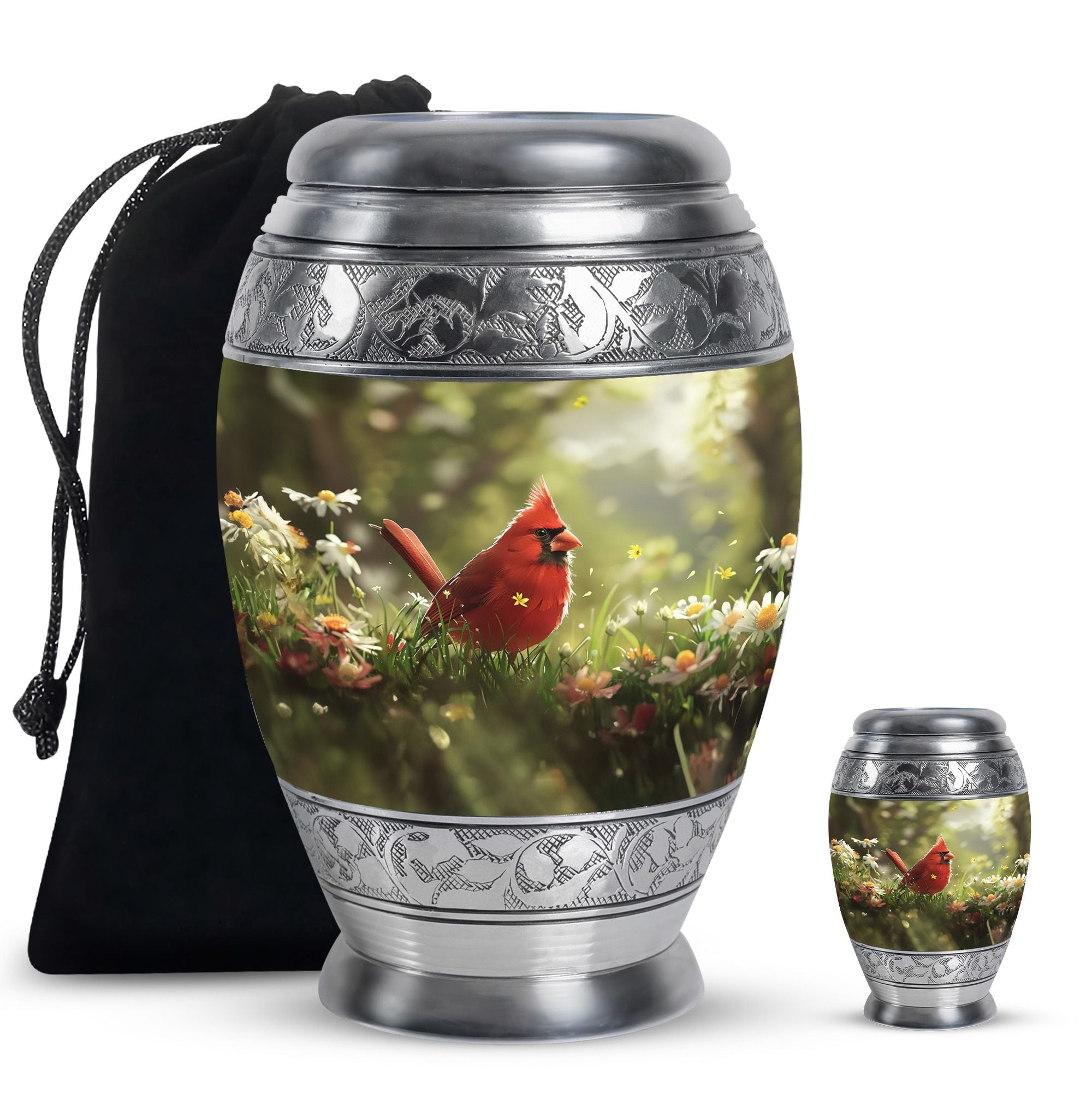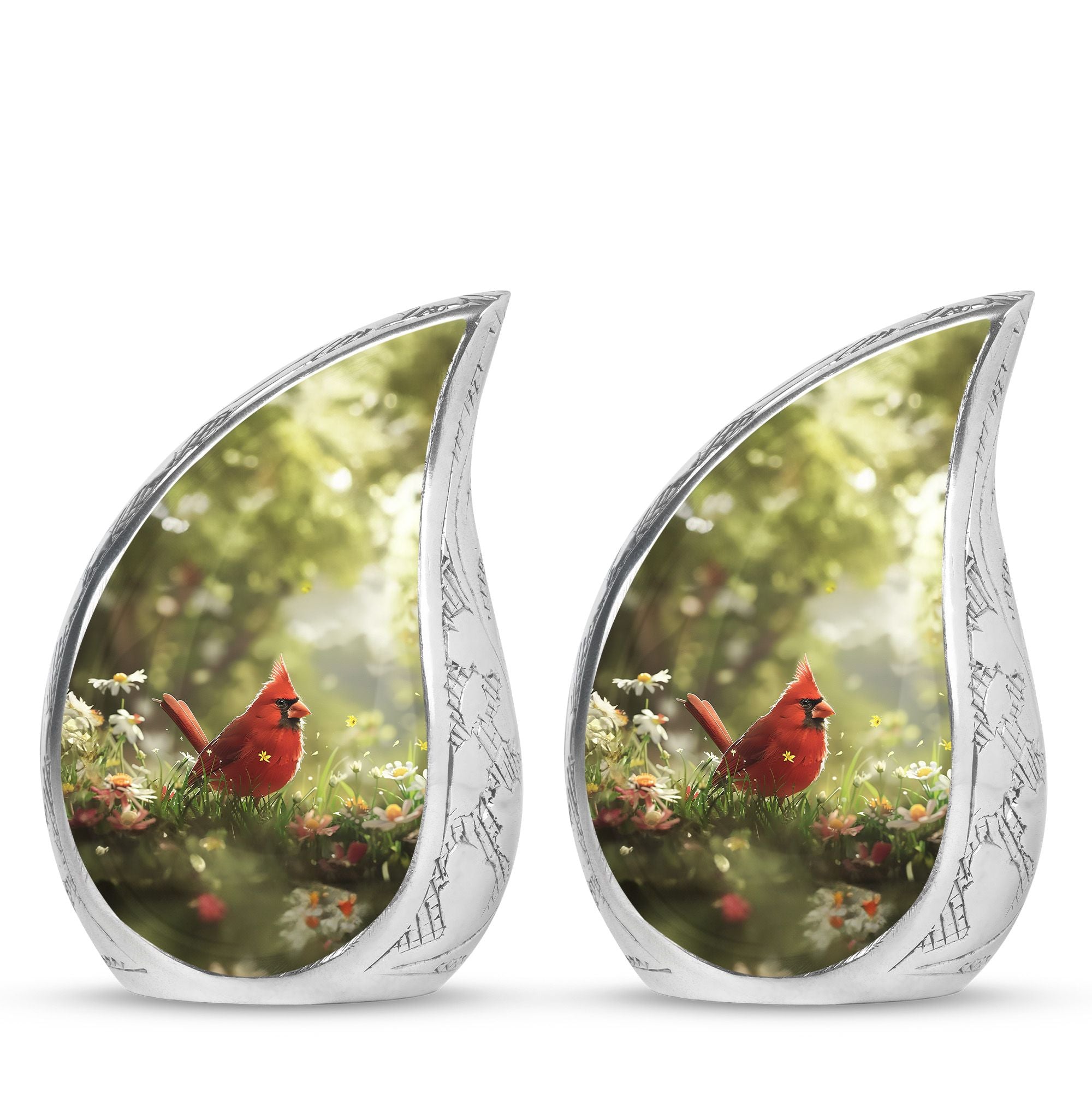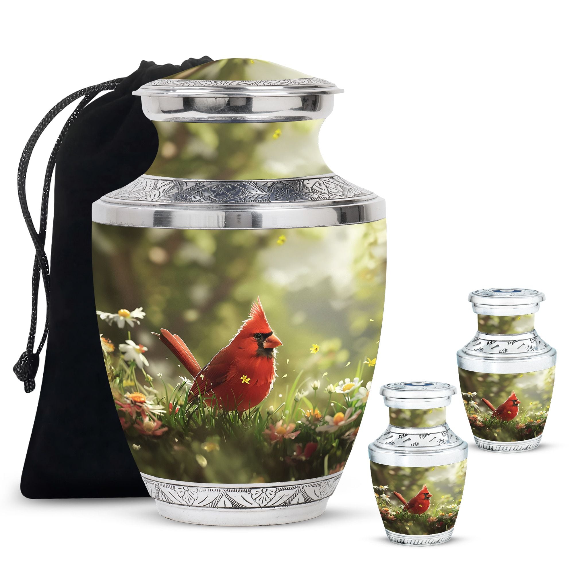 The Green Nature Cardinal Bird Urn symbolizes life, renewal, and remembrance, offering a peaceful and comforting memorial for loved ones.