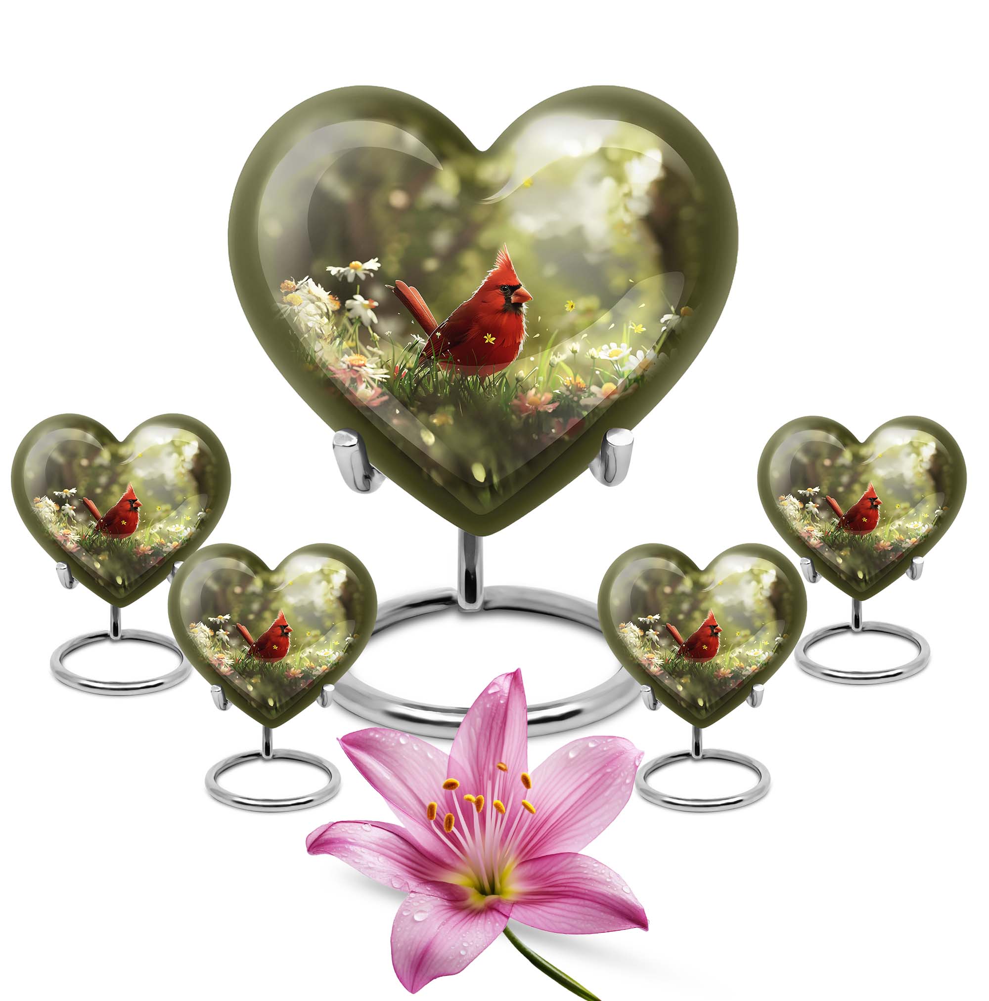 Celebrate the memory of your loved one with the Green Nature Cardinal Bird Urn. This urn cremation keepsake and cremation ashes keepsake offers a meaningful and elegant tribute, perfect for families seeking to honor adult male or female ashes in a heartfelt way.