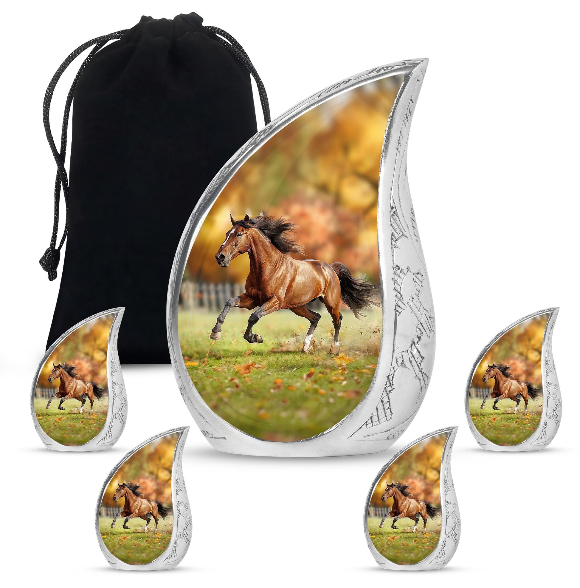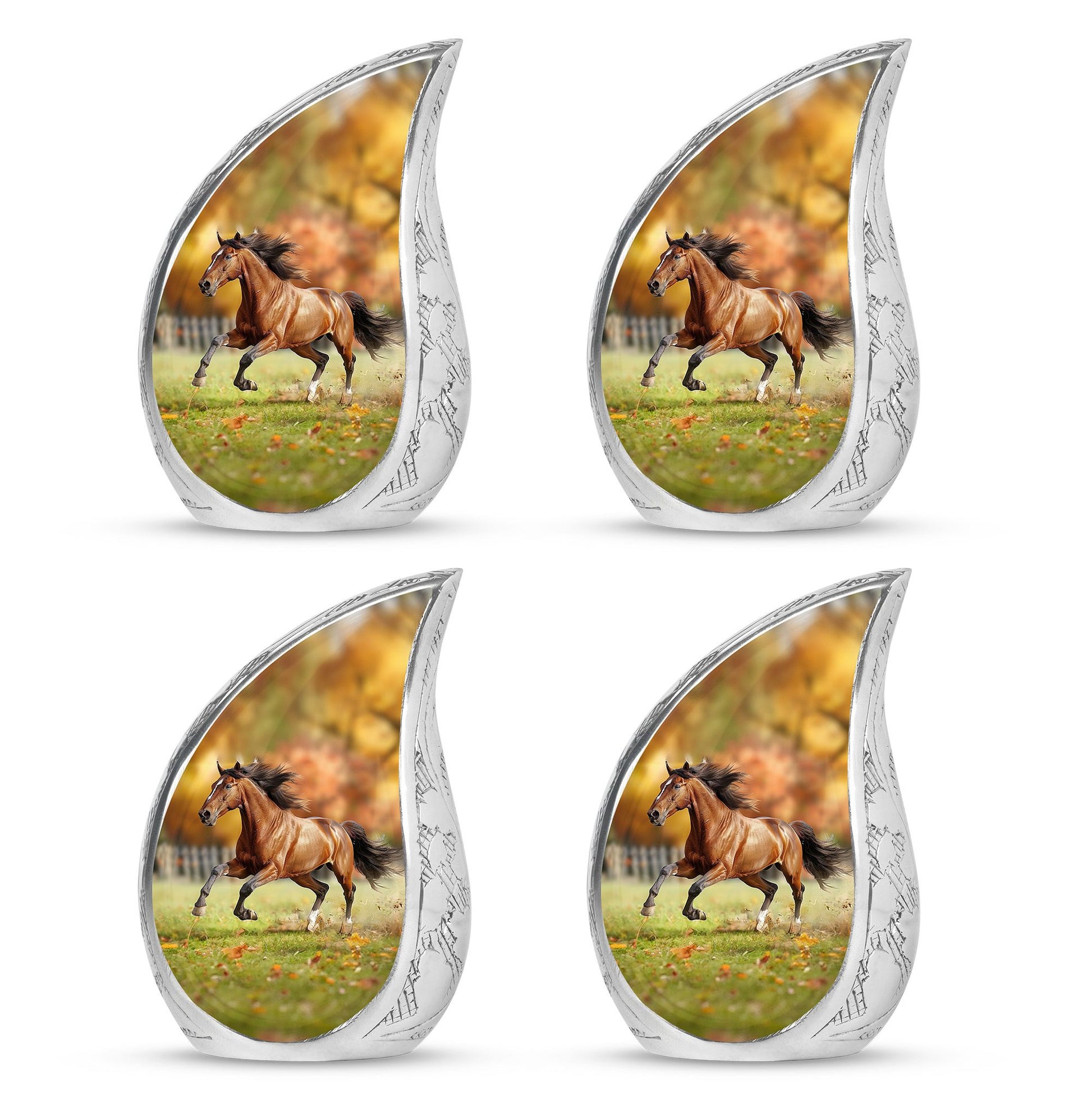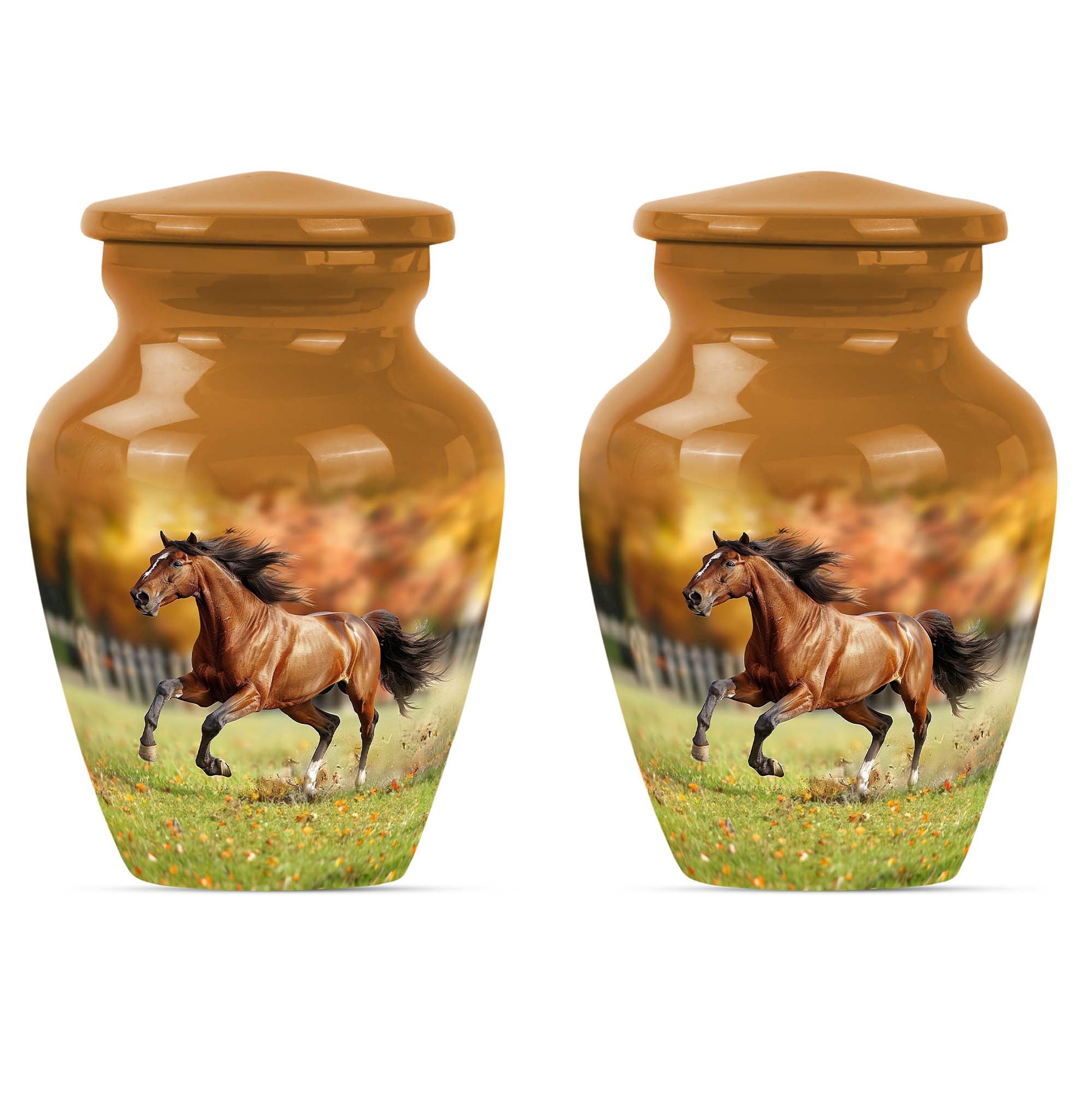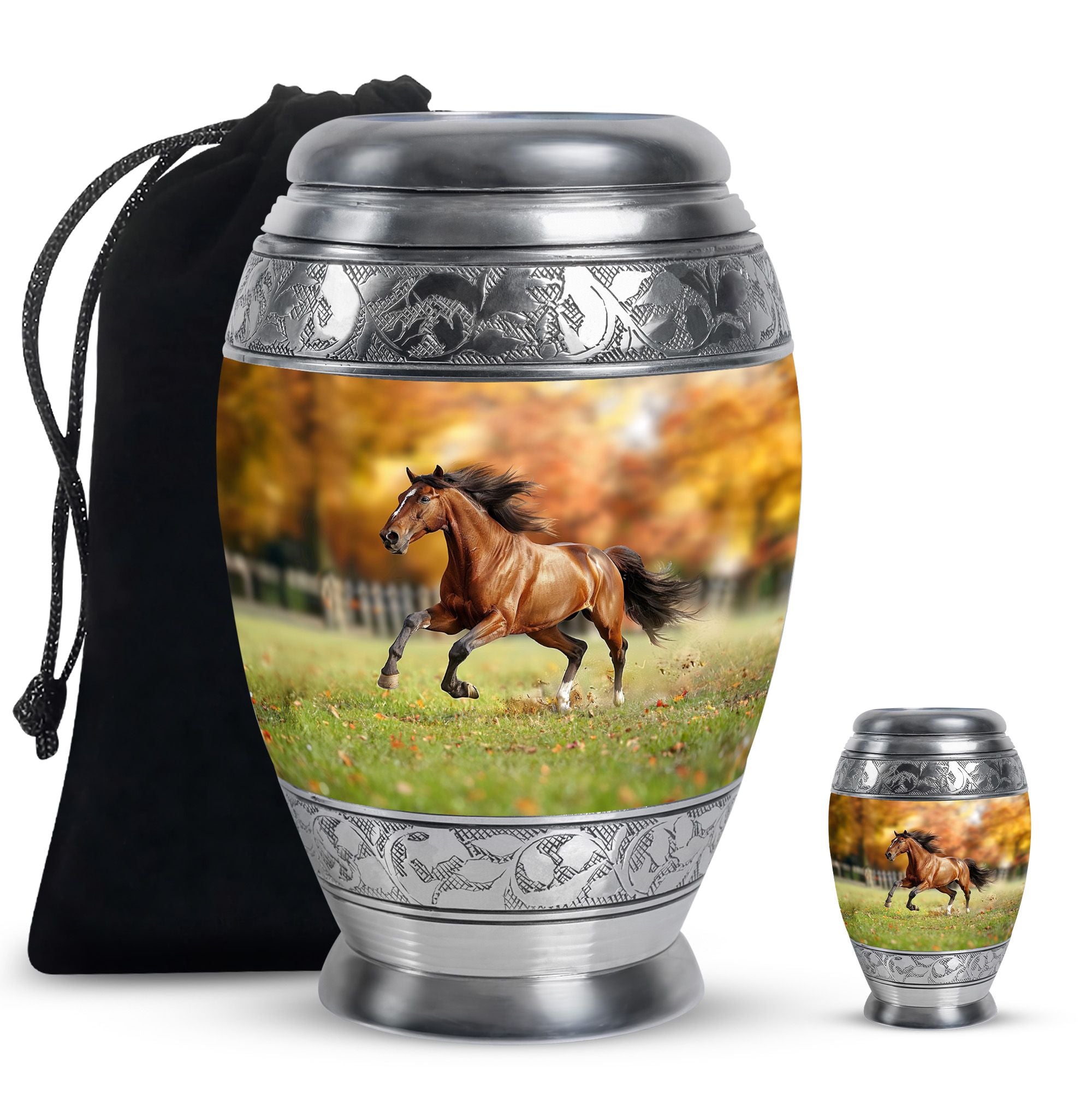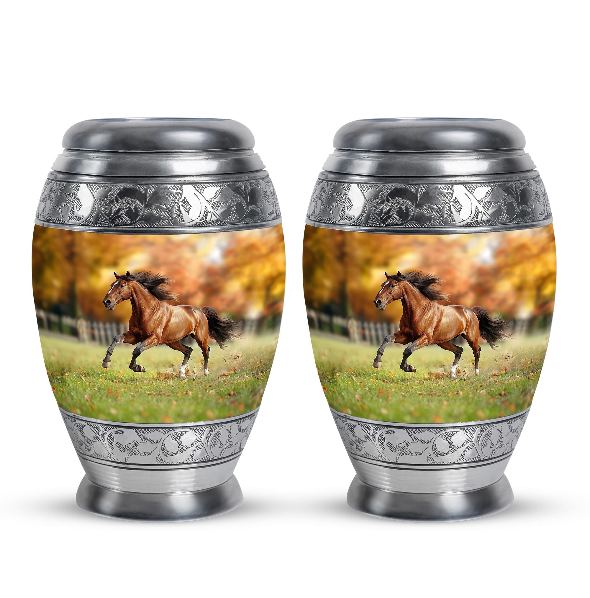 Expertly crafted from durable aluminum, this urn features a majestic horse design with a secure screw-top lid for safe storage. Suitable as large urns for female & male, urn human ash adult male, or adult female urn, it offers both elegance and functionality. Families may also choose it as funeral cremation urns for ashes, small funeral urns, or funeral keepsake urns, ensuring flexibility for remembrance and burial.