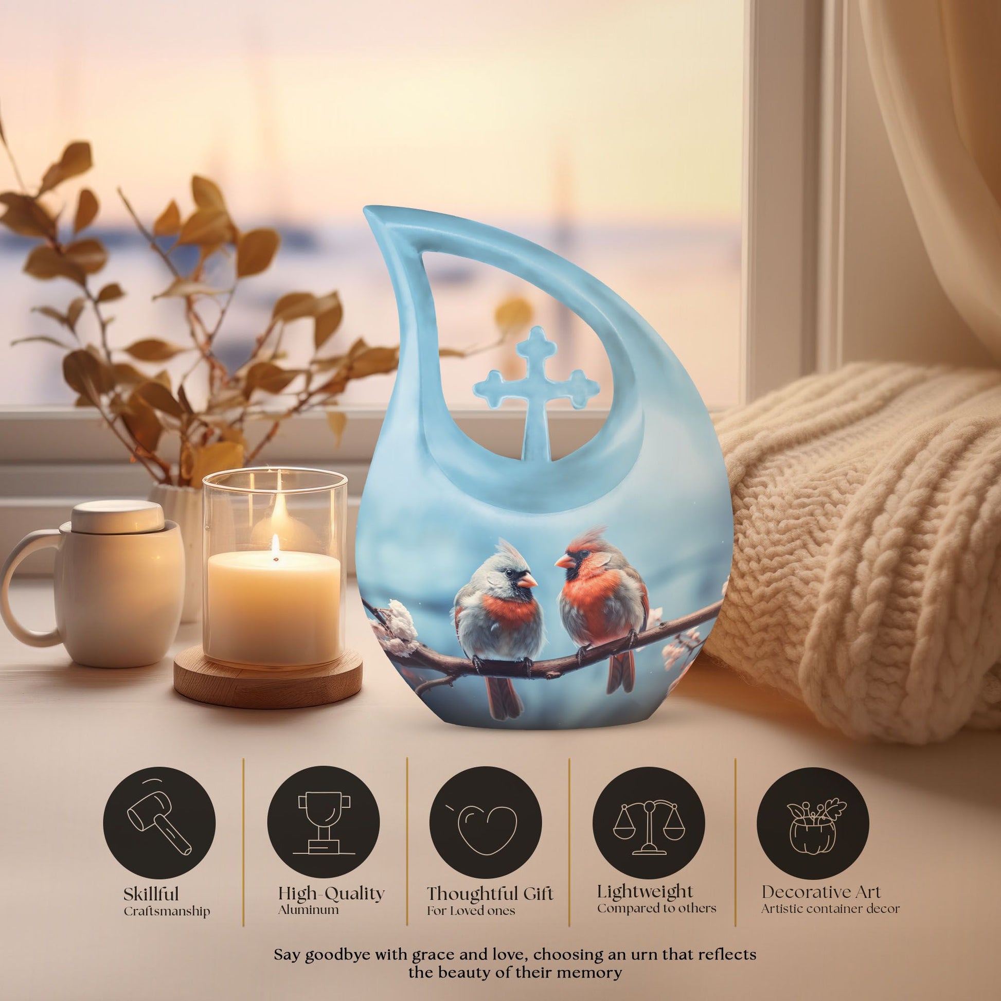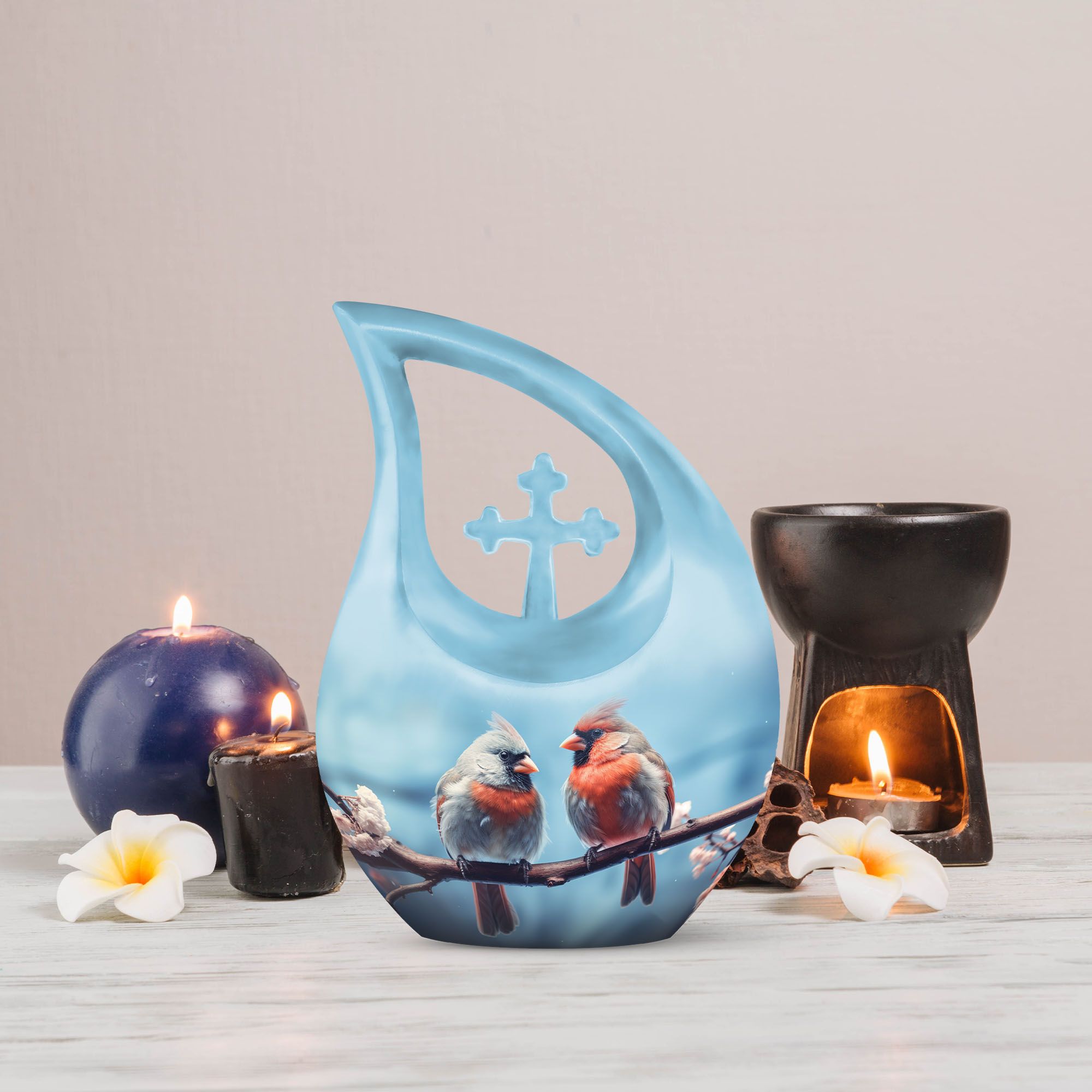The Love Birds Cardinal Urn serves as a timeless symbol of enduring affection — a large urn human ashes keepsake that beautifully honors the love shared between partners, family, or dear friends.