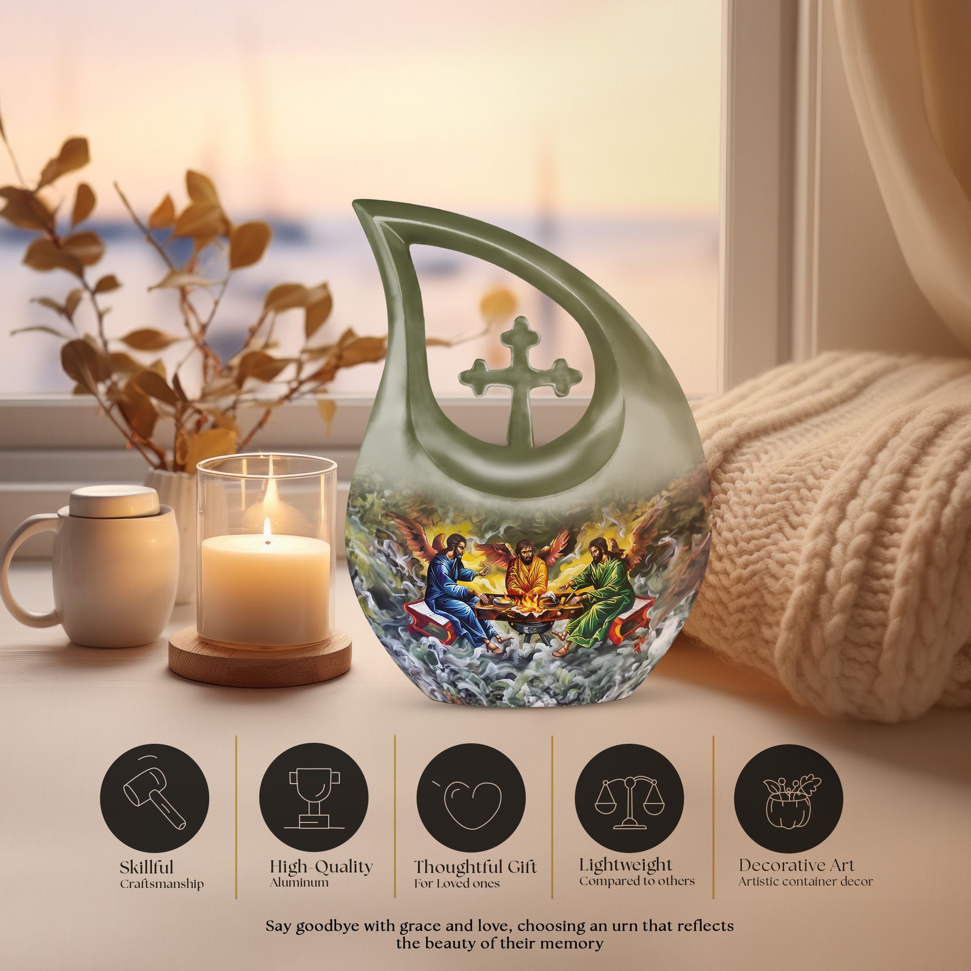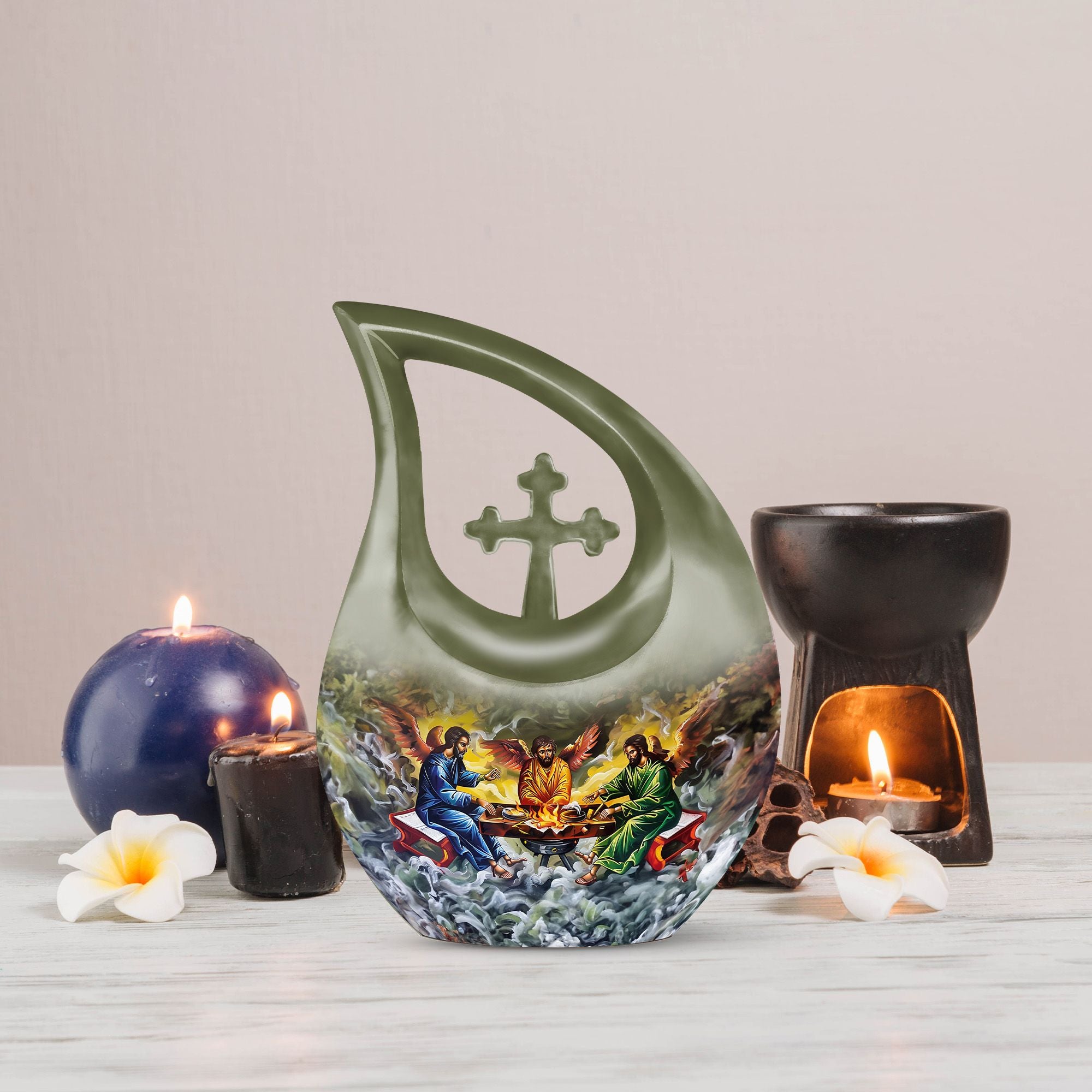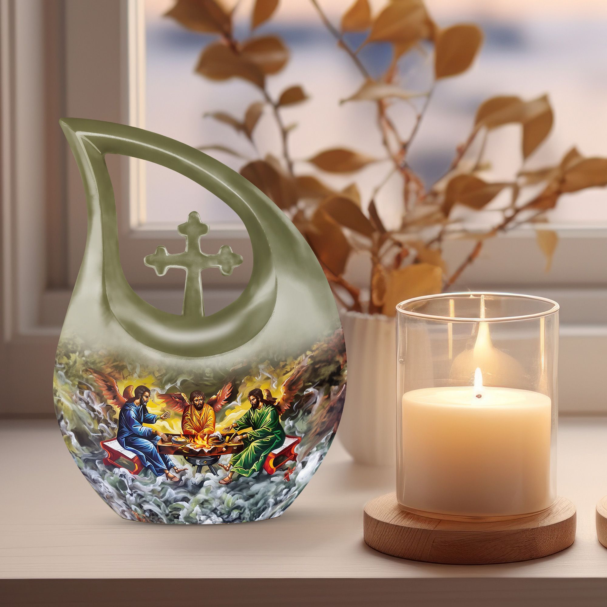 Honor a cherished life with this Holy Trinity Art Cremation Urn, thoughtfully crafted to bring comfort, faith, and dignity to moments of remembrance. Its symbolic artwork makes it ideal for families seeking a cremation urn human or a cremation ashes urn that reflects devotion, peace, and eternal love for men and women alike.