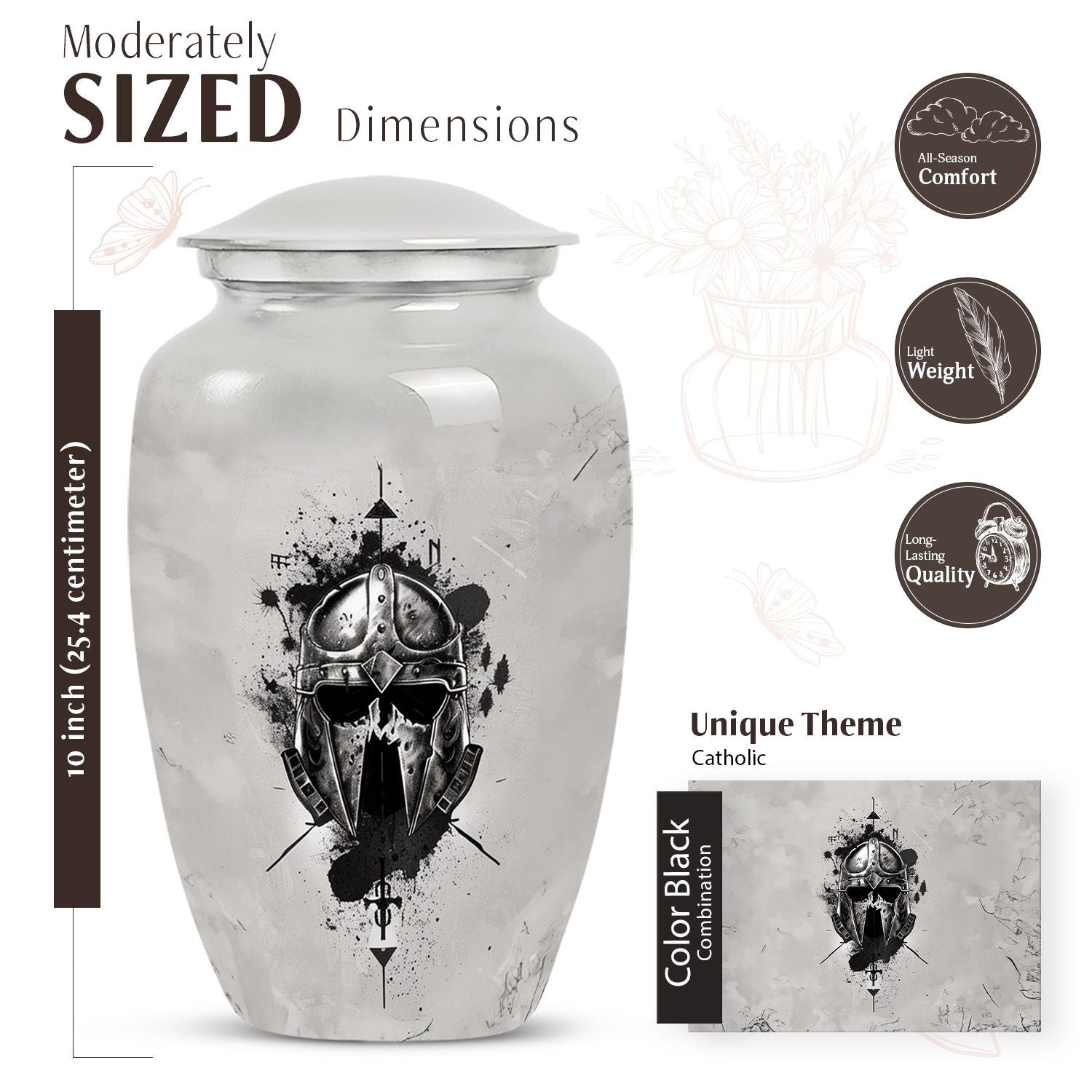 Embark upon a journey of solace and reflection with our first-rate Aluminium Catholic Urn. Built to last, this 10-inch burial large urn strikes a chord of reverence with its aesthetic embodied in its Abstract theme. At a comfortable weight of 3.3 pounds, it exhibits an impressive capacity of 200 cubic inches that can honorably house the ashes of your loved ones. Each urn comes complete with a respectful velvet pouch, simplifying the containment of ashes with dignity and ease. Customize your memorial to your liking, with space to engrave names of your choosing, adding that personalized touch. This large urn echoes the timeless sentiment of your cherished memories. It caters perfectly to keywords such as 'cremation urns for adult ashes women' and 'funeral extra large urn', ensuring its testament is widespread. With this urn, we commemorate a life well-lived and celebrate the imprints left behind.