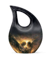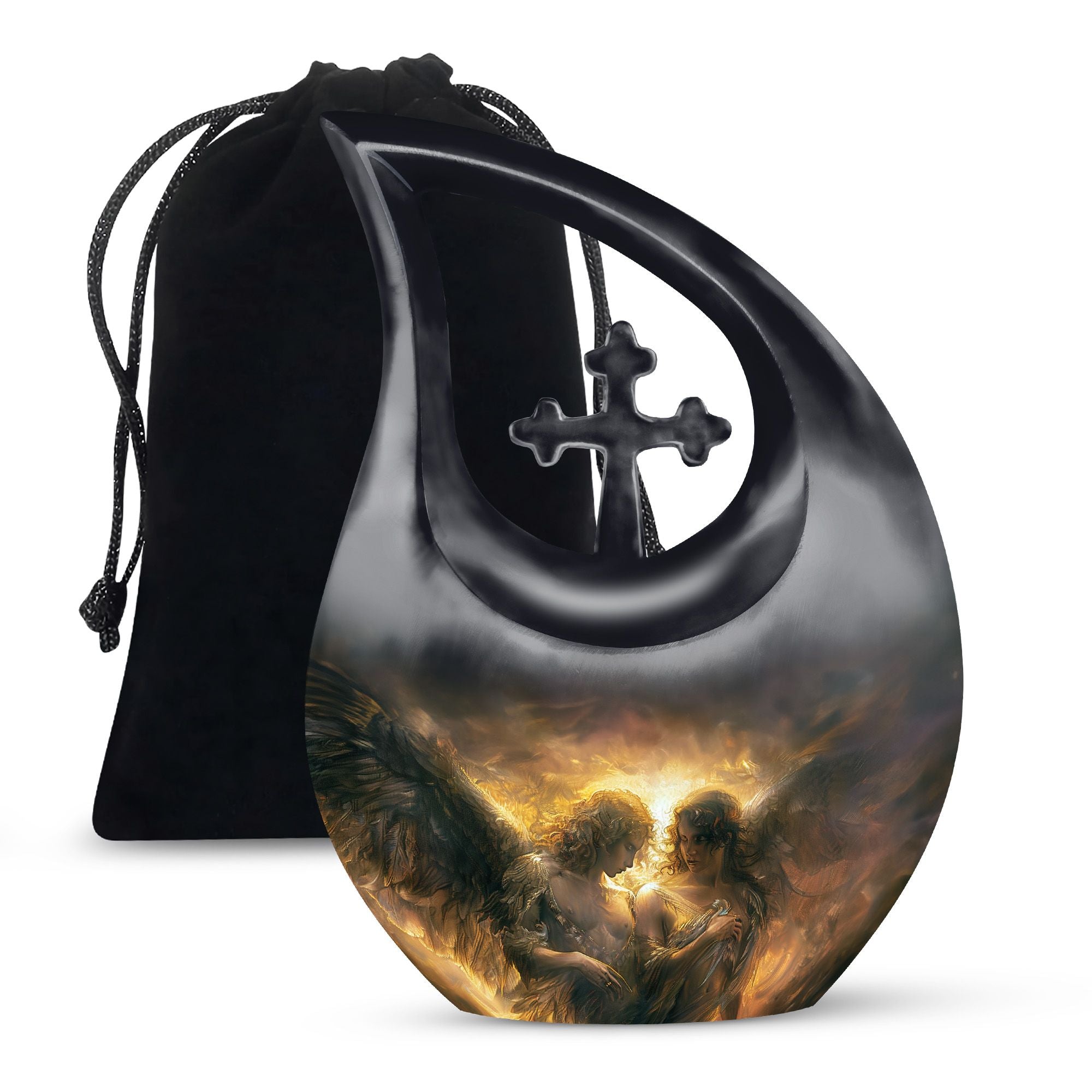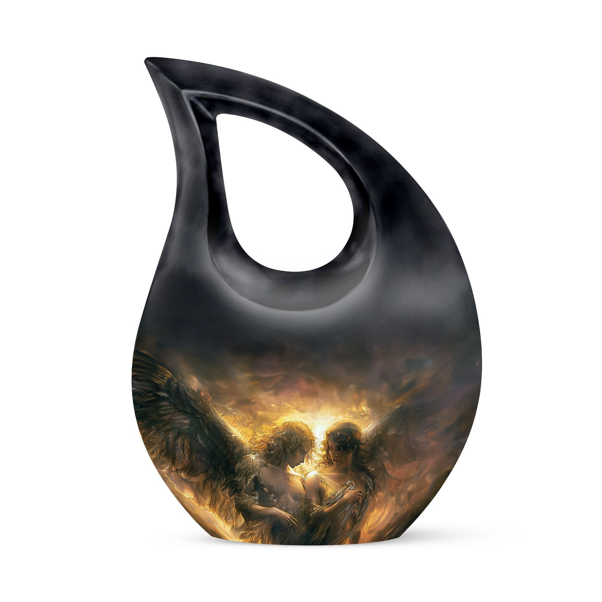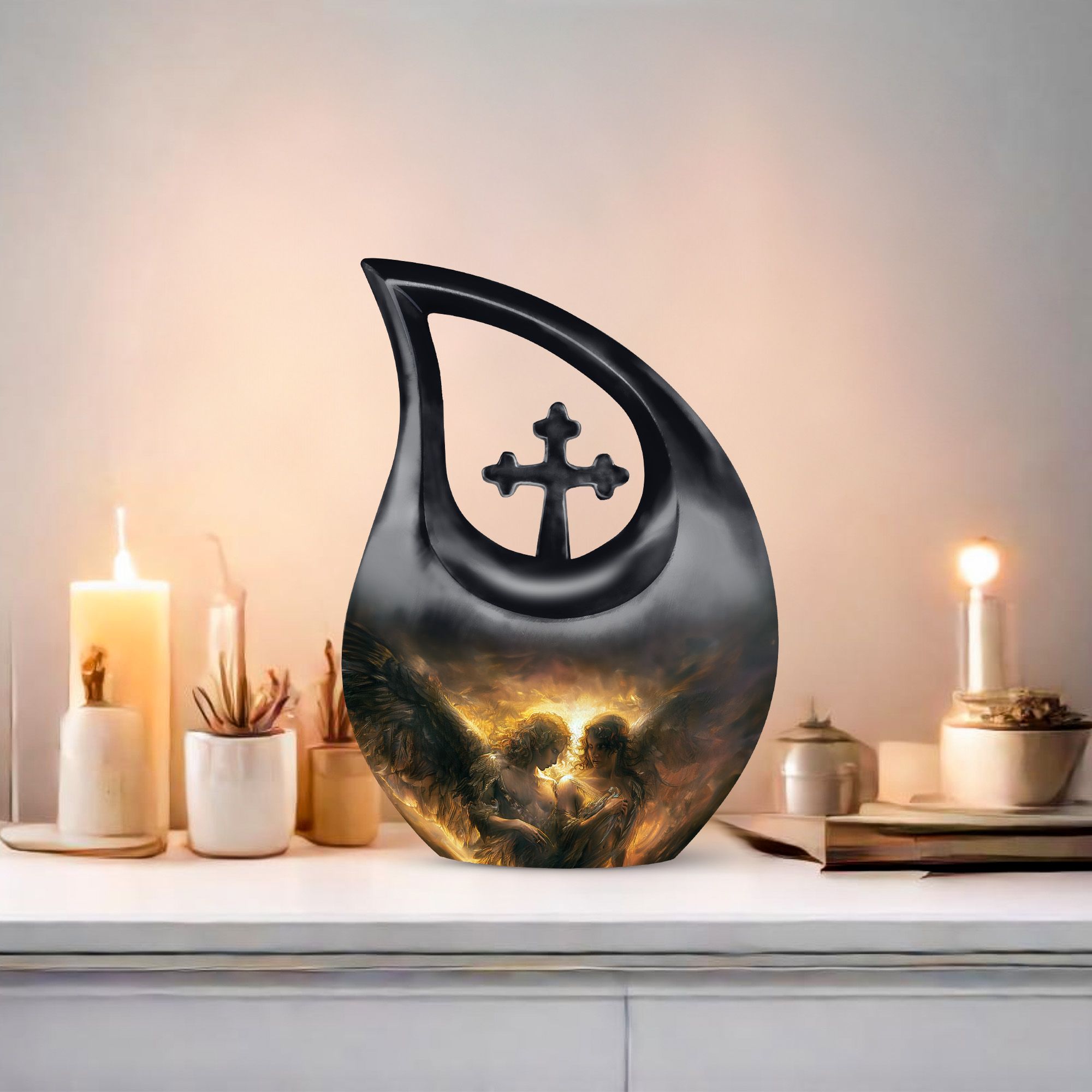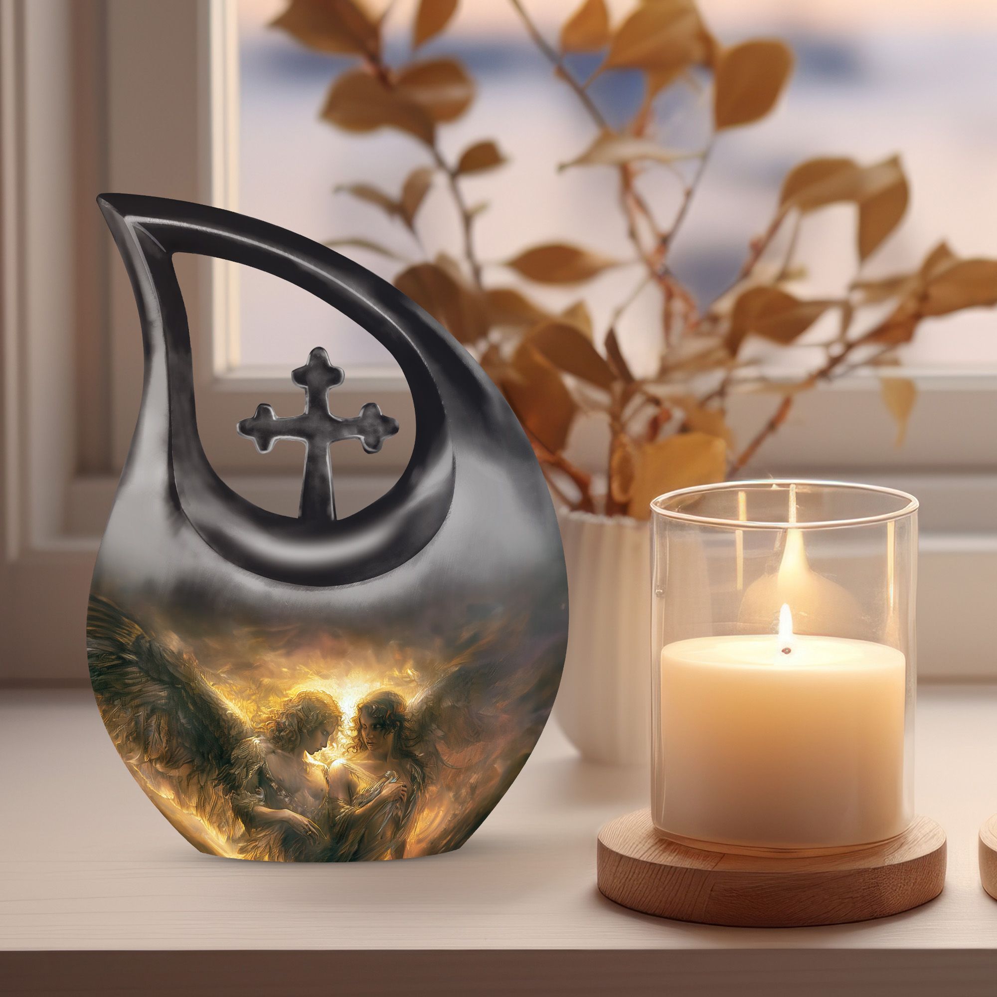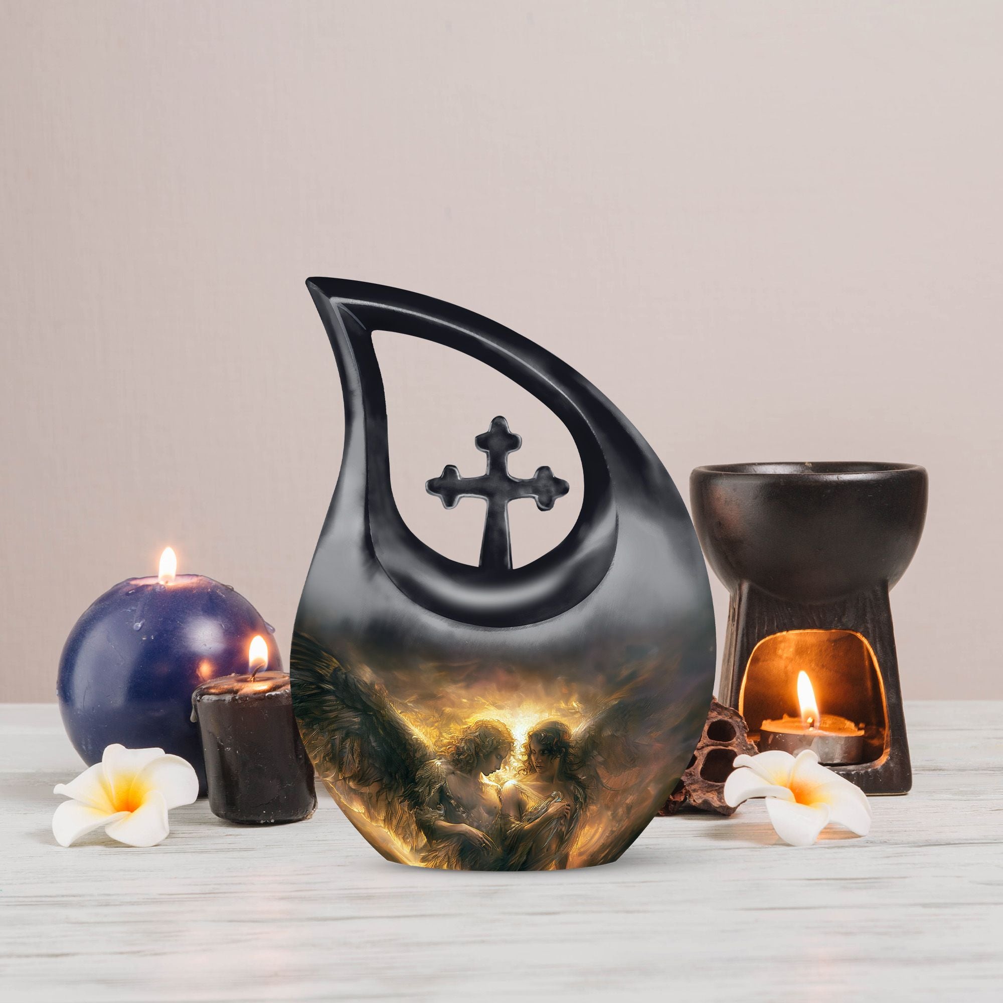 This Angels Cremation Urn offers a peaceful, spiritual, and dignified way to honor a cherished life. Designed with radiant golden angel artwork on a deep black background, it symbolizes guidance, protection, and eternal serenity—making it a meaningful funeral urn for families seeking comfort and remembrance. Whether used for a parent, partner, or loved one, this urn provides a heartfelt memorial that brings light during difficult moments.