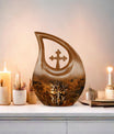 The Angel Cremation Urn offers a serene and spiritual way to honor a cherished life. With its golden brown finish and graceful angel artwork, it symbolizes peace, guidance, and eternal protection—making it a meaningful choice for families seeking burial urns for human ashes or adult burial urns for sacred remembrance.