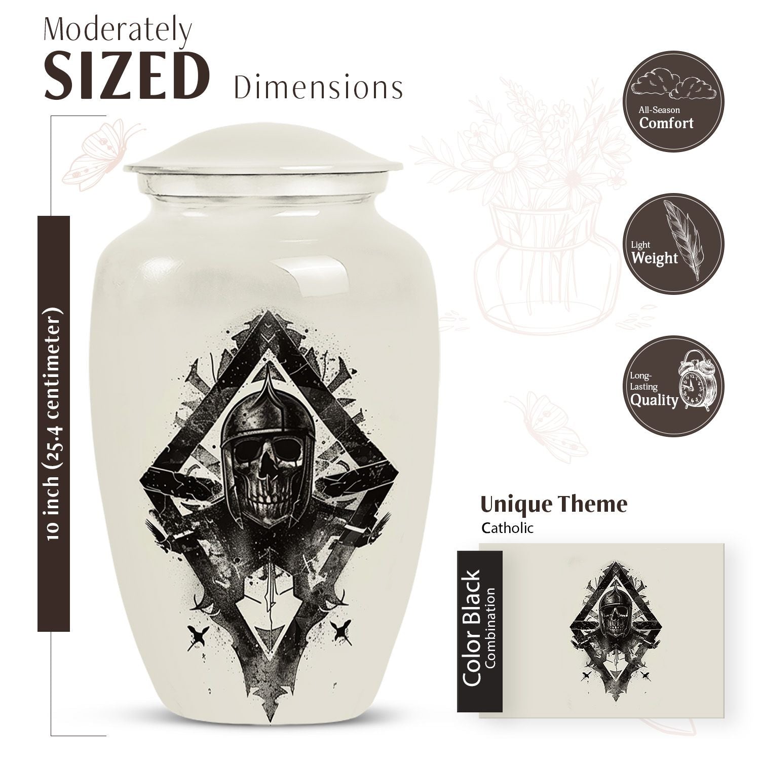 Elevate your cherished memories with our Large Abstract Classic Urn, a Catholic urn designed to hold adult ashes. Created with precision and excellence, it stands 10 inches tall and operates with the capacity to hold up to 200 cubic inches of ashes. Beautifully crafted with premium aluminium, the urn has a substantial weight of 3.3 pounds, showcasing its robustness and durability. The urn's abstract theme bestows an artistic touch that emphasizes respect and remembrance. To enhance its personal value, we offer the option to personalize it with engraved names. Each purchase includes a velvet pouch for secure containment of ashes. The combination of our timeless design and the abstract theme creates an elegant and distinctive memorial ash urn. Whether you're looking for funeral urns for men's ashes or elegant memorial urns, this large urn brings strength and style to your remembrance.
