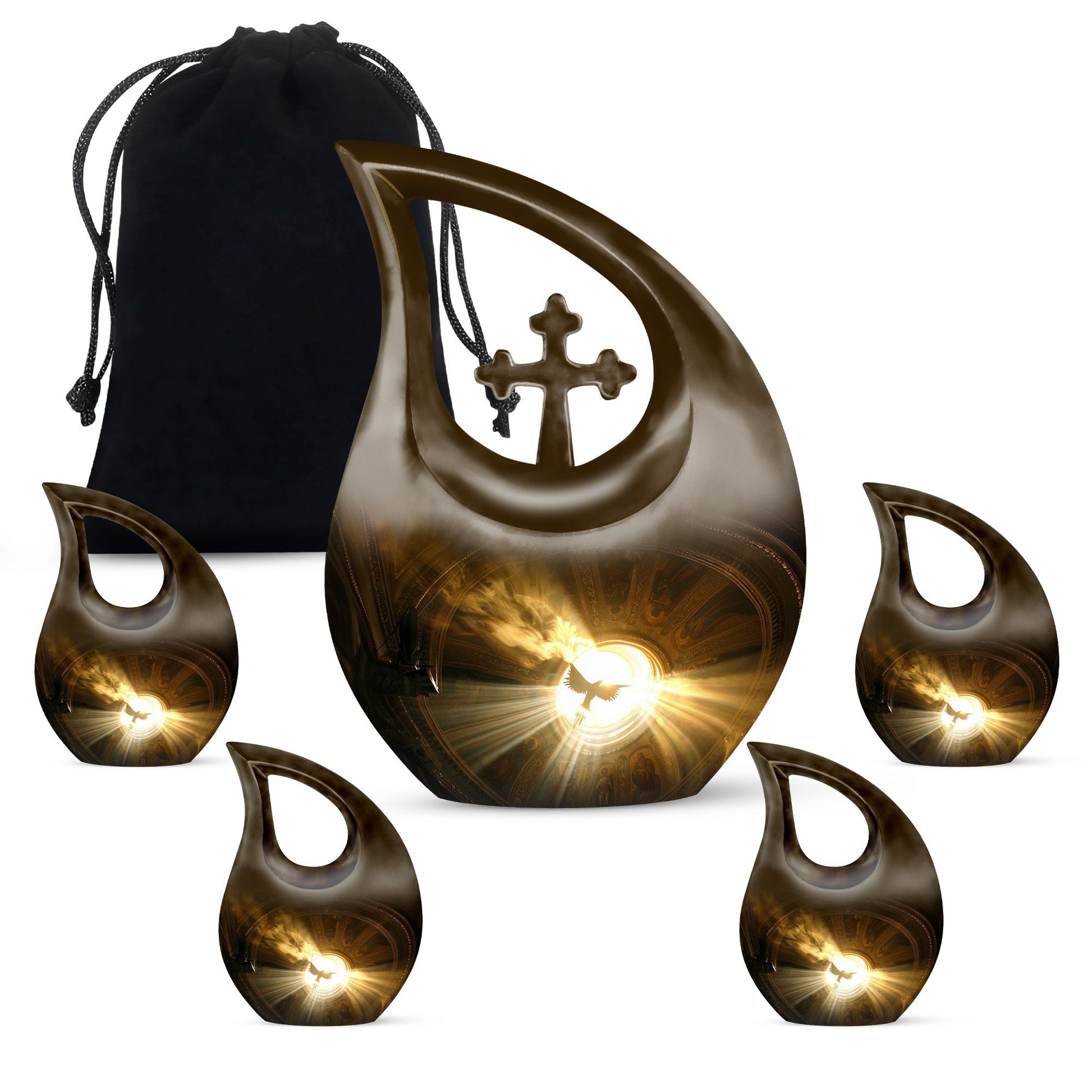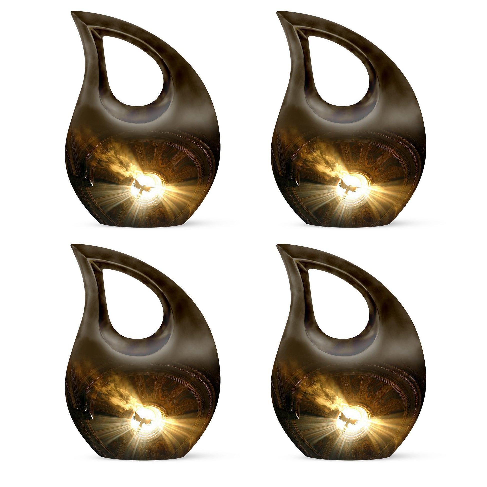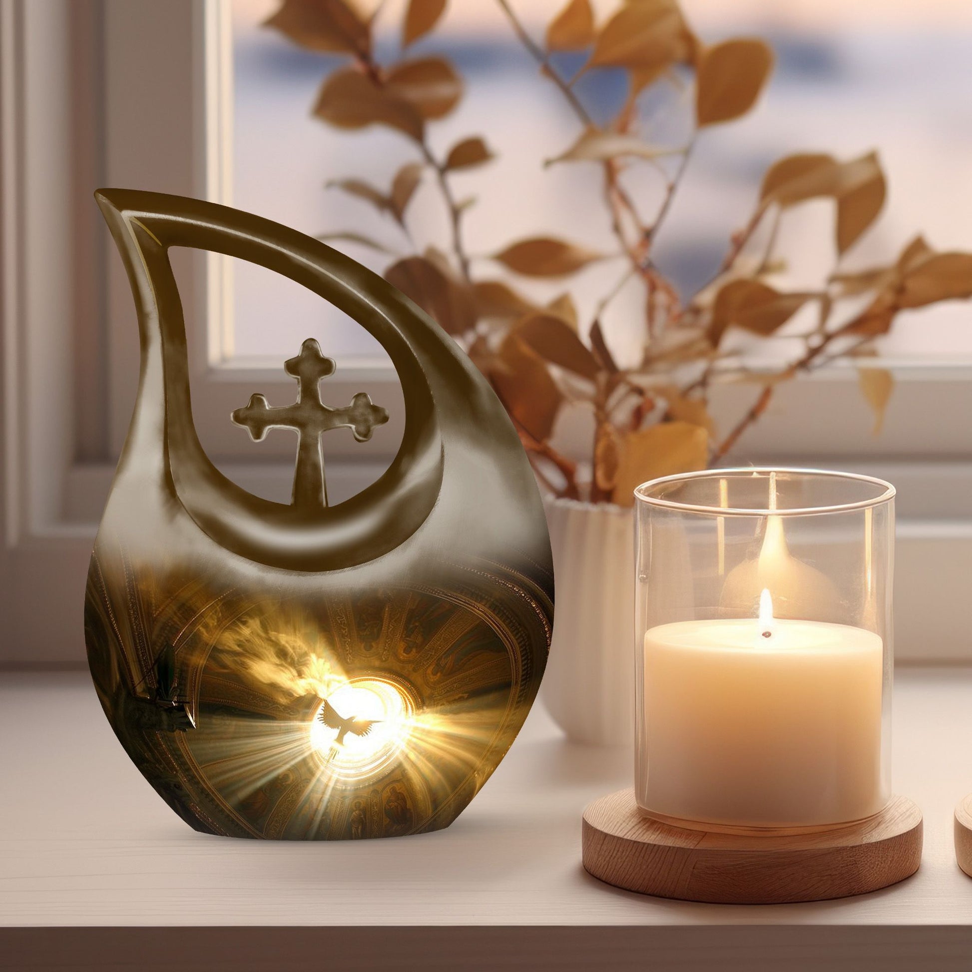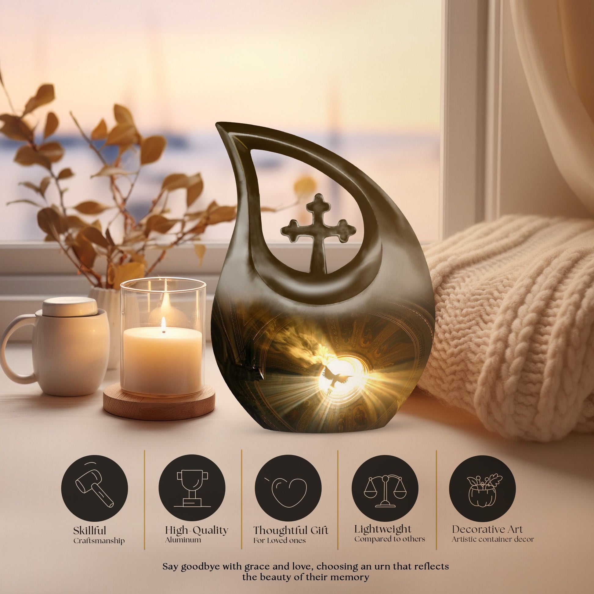 Crafted from durable aluminium, this 10 inch urn features intricate golden cathedral artwork with a radiant dove motif, making it a heartfelt choice for both men and women. Its secure screw-top lid protects the ashes, while the elegant design blends seamlessly into any memorial space. Whether you are searching for cremation urns adults, urn for cremations, or high-quality cremation urns small, this urn meets a wide range of needs with dignity and beauty. Families looking for small urns for human ashes keepsake, small keepsake urns for human ashes, or a single small keepsake urn will find this a serene and meaningful option.