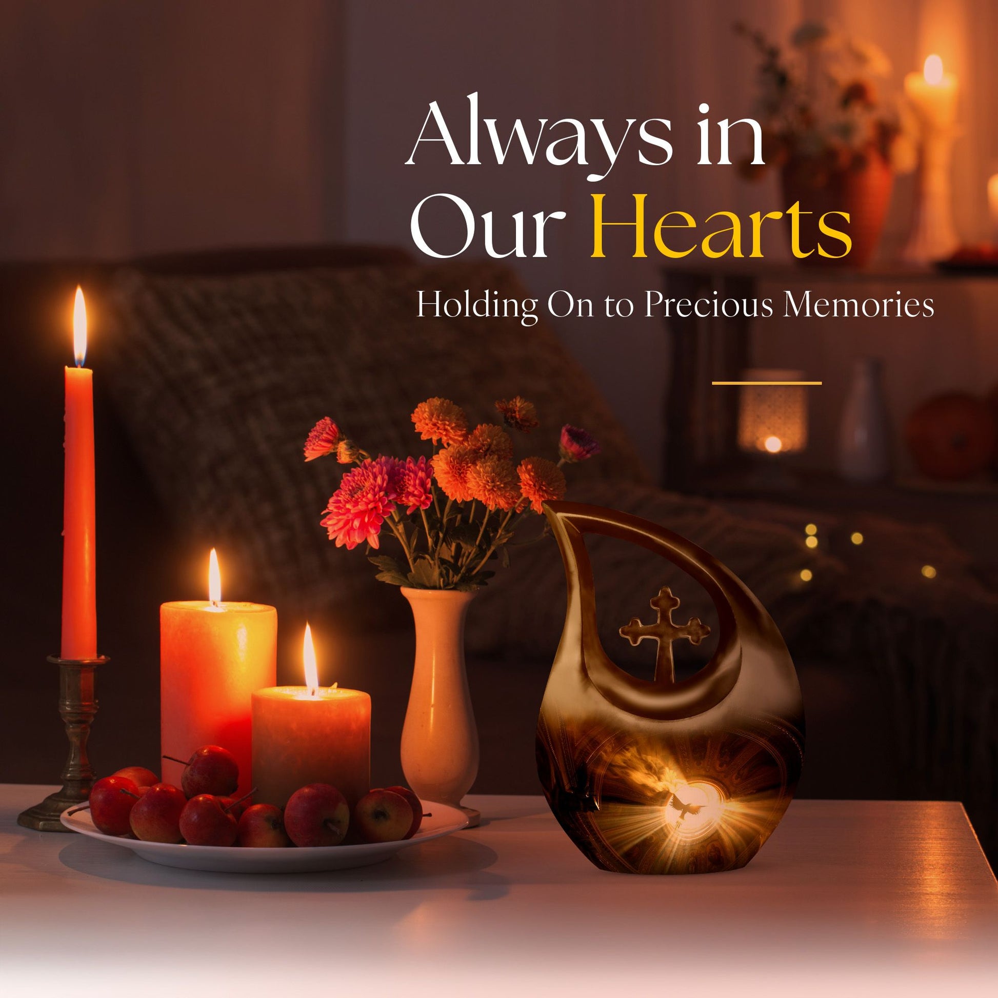This memorial urn provides a graceful way to keep your loved one close, offering spiritual symbolism, artistic beauty, and a sense of eternal peace. Whether used as a primary urn or a small urn for ashes keepsake, it brings warmth and comfort to every remembrance.
