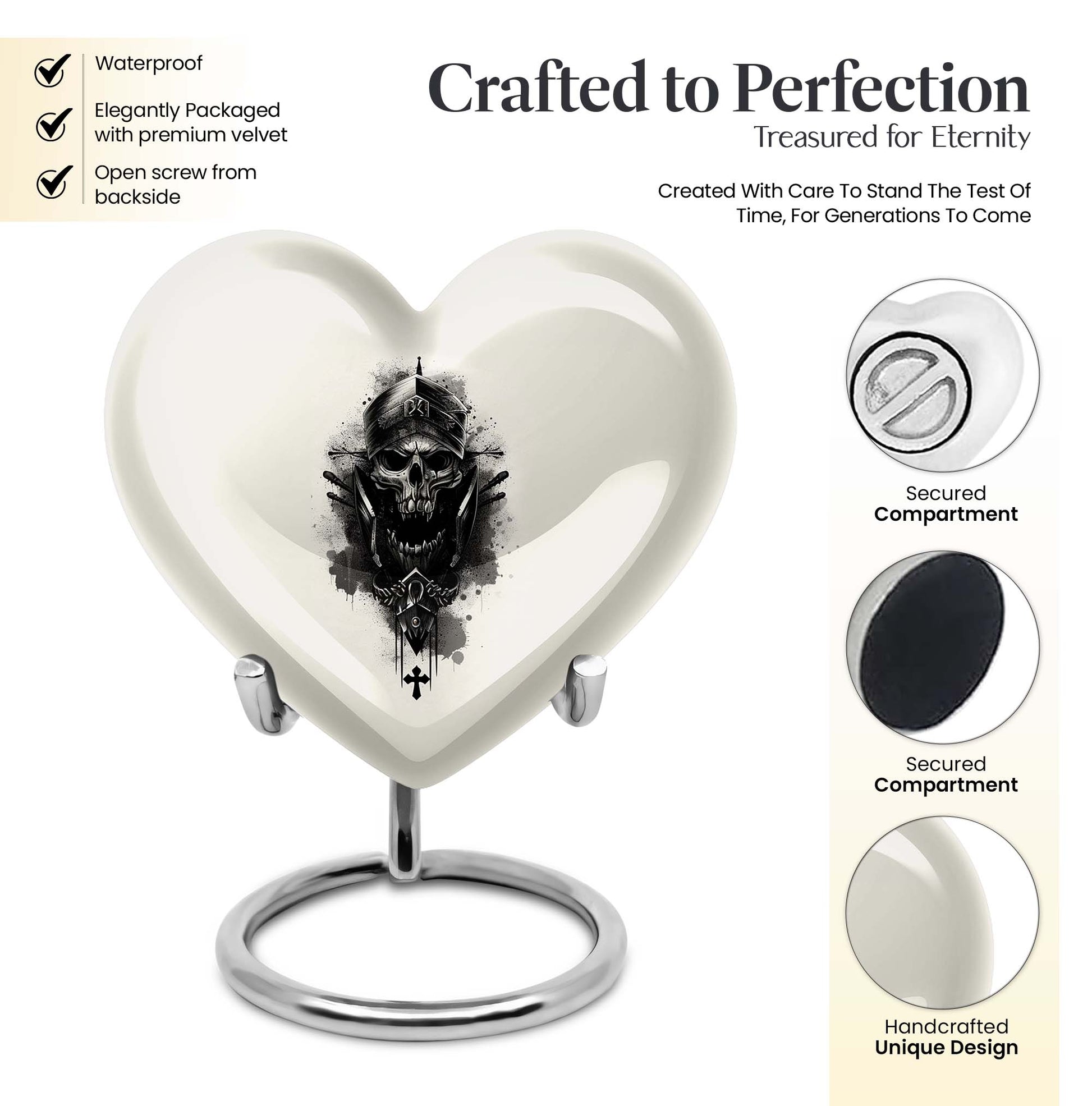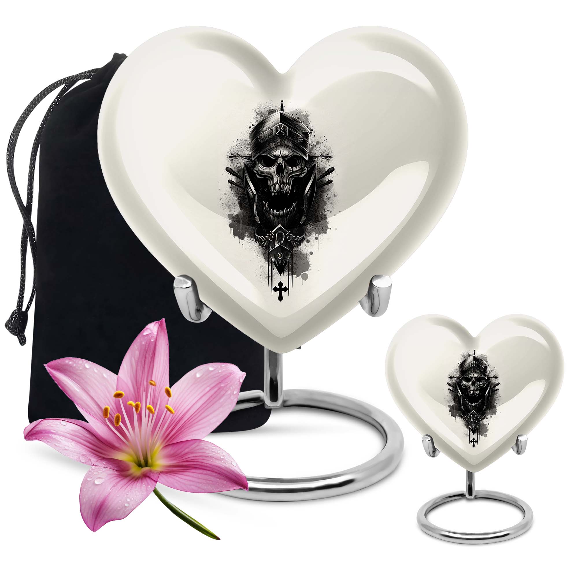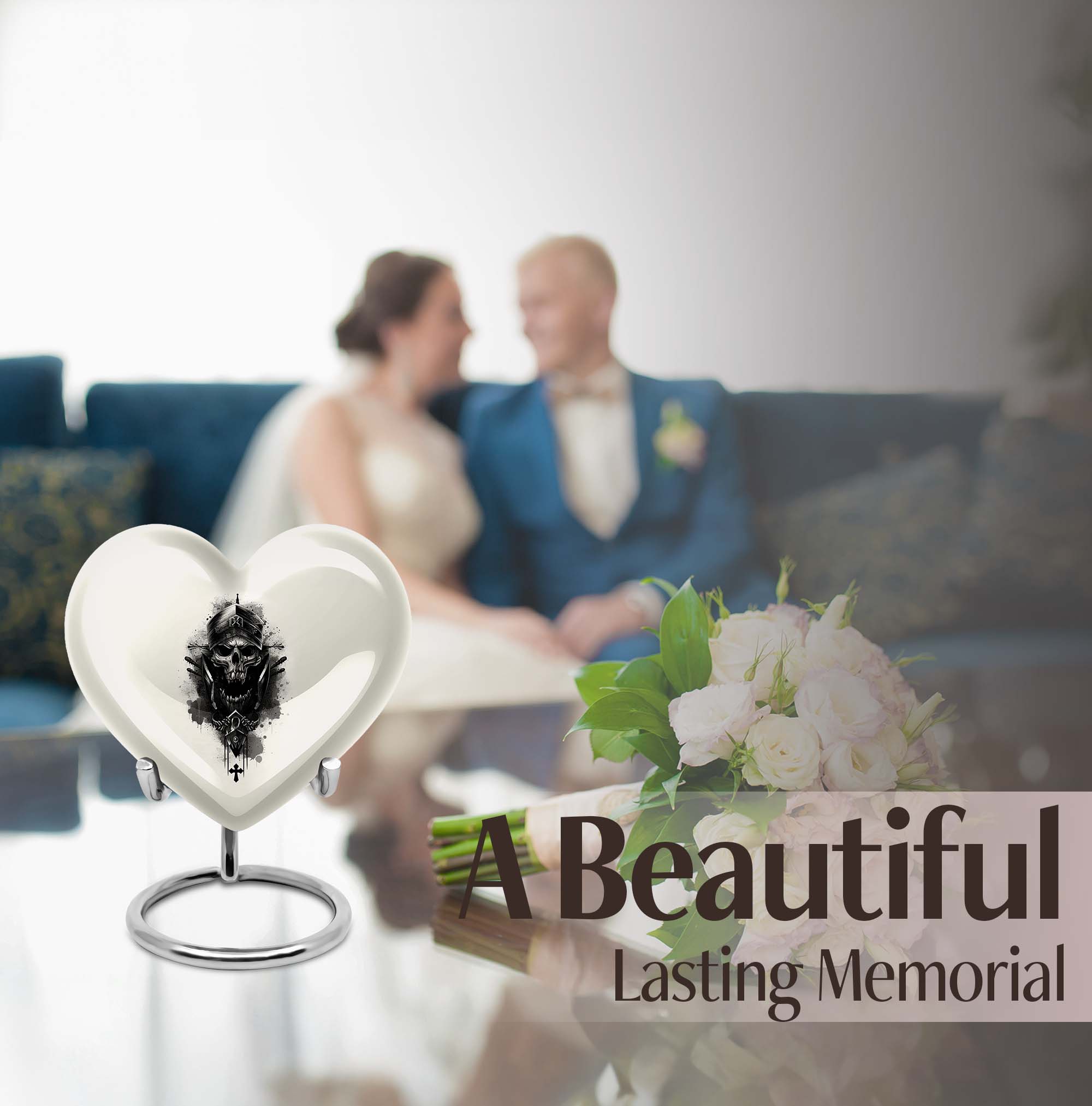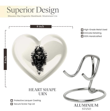 Preserve the memory of a loved one with the stylish and durable catholic urn, crafted meticulously for adult ashes. This 10-inch large urn for ashes, weighing 3.3 pounds, is designed with a capacity of 200 cubic inches, making it the perfect burial funeral urn for adults. Crafted with high-grade aluminium, its durability and strength are unquestionable. The standout heart theme provides an abstract yet beautiful aesthetic. This cremation urn comes with the added value of customization - you can choose to personalize it with engraved names. For your convenience, the package also includes a velvet pouch for containment of ashes. This cremation box is not only a place to hold ashes, but also a piece of art that could be placed anywhere in your home. Searching for the exact phrases 'catholic Urn' or 'burial funeral urns for adult ashes women' should lead you to this befitting final resting place for your beloved.