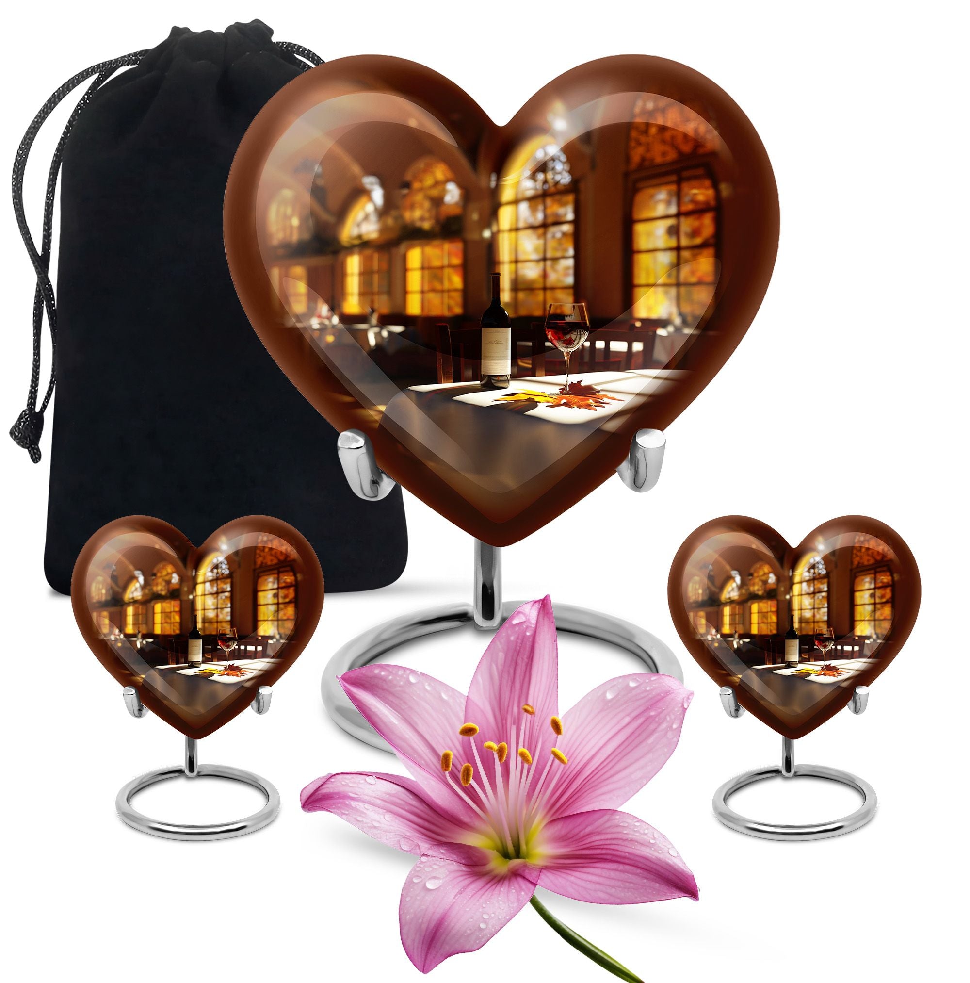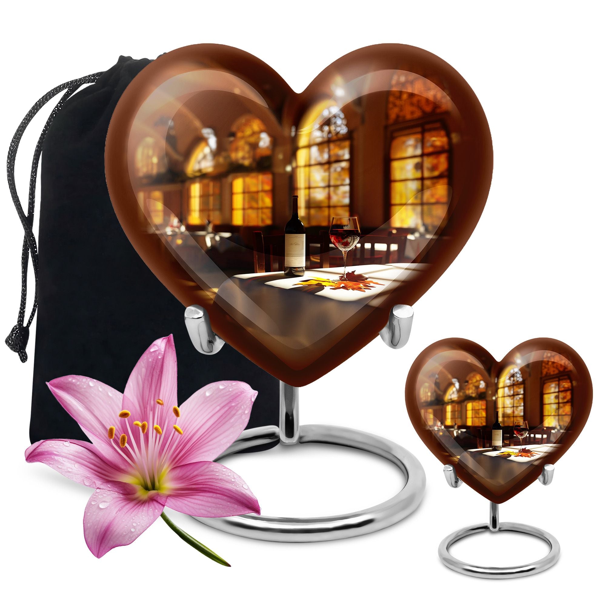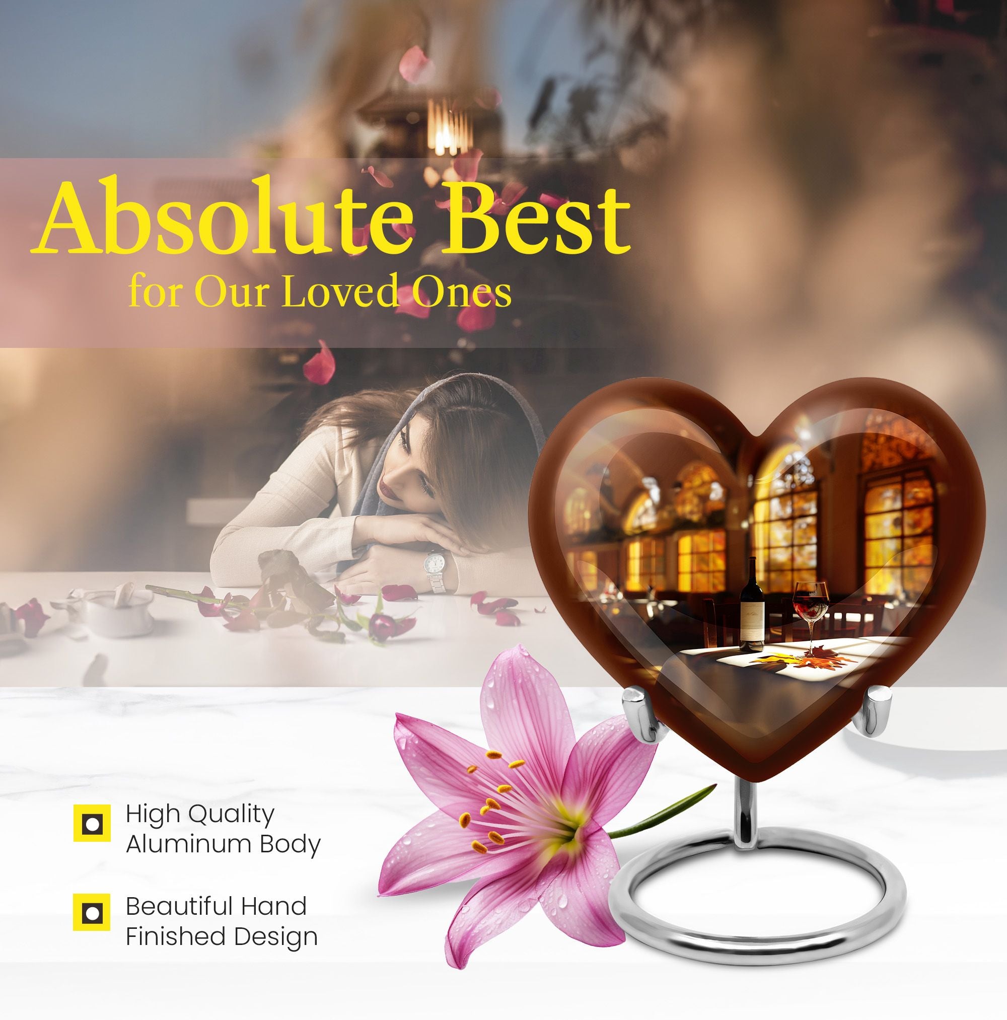 Discover the uniquely crafted 'Heart Urn,' a tasteful tribute to the departed. Symbolizing eternity and the continuity of life, this abstract-themed wine Urn has been exclusively designed as a place of peaceful rest. Measuring 10 inches in height and weighing 3.3 pounds, this Large Urn provides a stunning memorial, with a sizeable capacity of 200 cubic inches to securely hold the ashes. Made of high-quality aluminium, the urn strikes the perfect balance between immense strength and elegant design. Included in the package is a soft velvet pouch to aid the safe containment of ashes. Personalize your memorial adult urn with custom engraved names, making it not just a simple cremation urn, but a family heirloom with sentimental value. The urn captures keywords such as 'Memorial adult urns for human ashes women' and 'adult human'- offering the perfect reflection of memories and emotions.